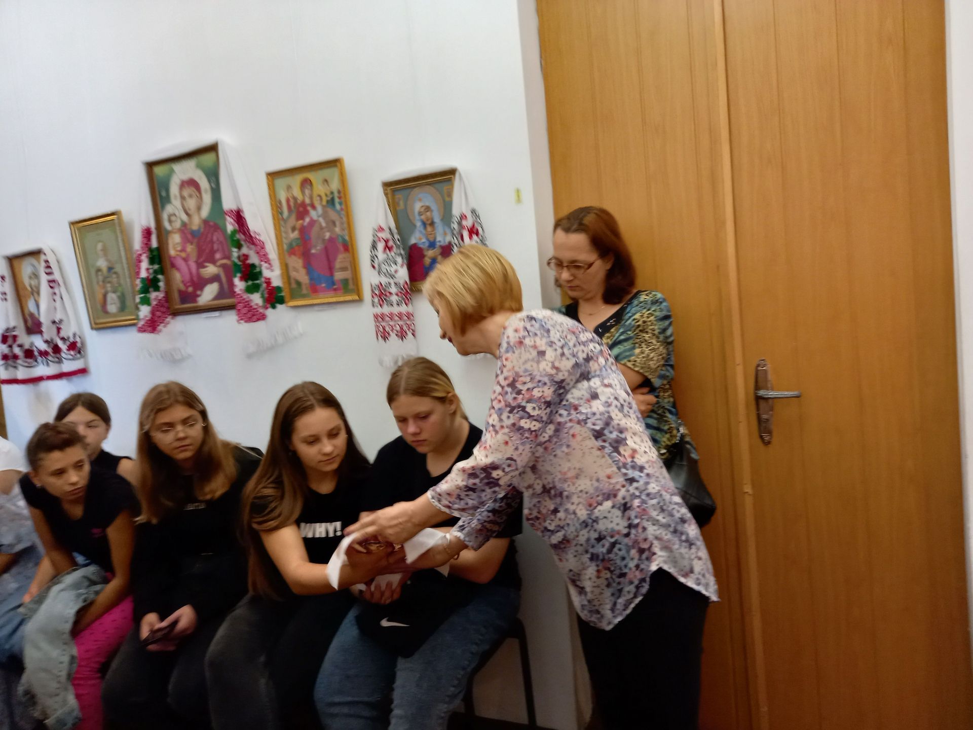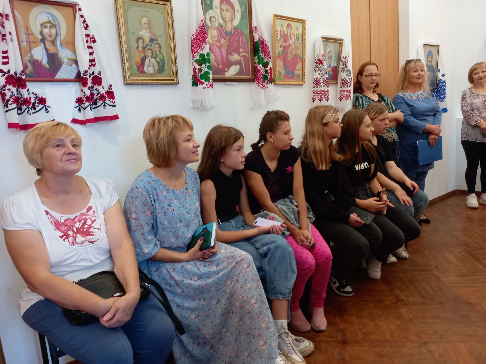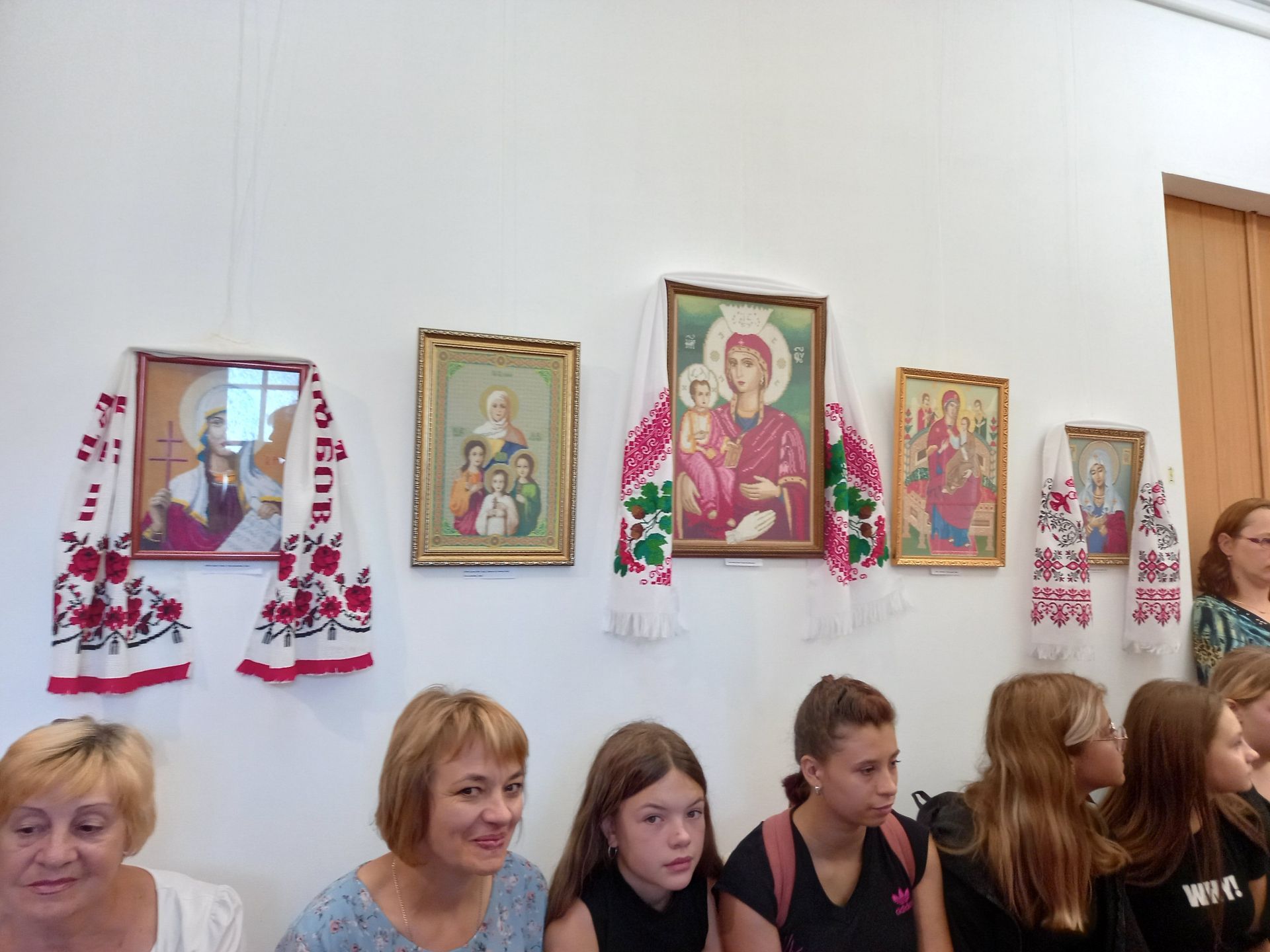 На відкриття виставки запросили учениць ліцею №2 разом із викладачем Світланою Чеканівською, майстриню вишивання Антоніну Головненко. Підтримати Наталію прийшли рідні — брат Олександр, тітка Ірина, сестра Тетяна з чоловіком Володимиром та онуком Матвієм.