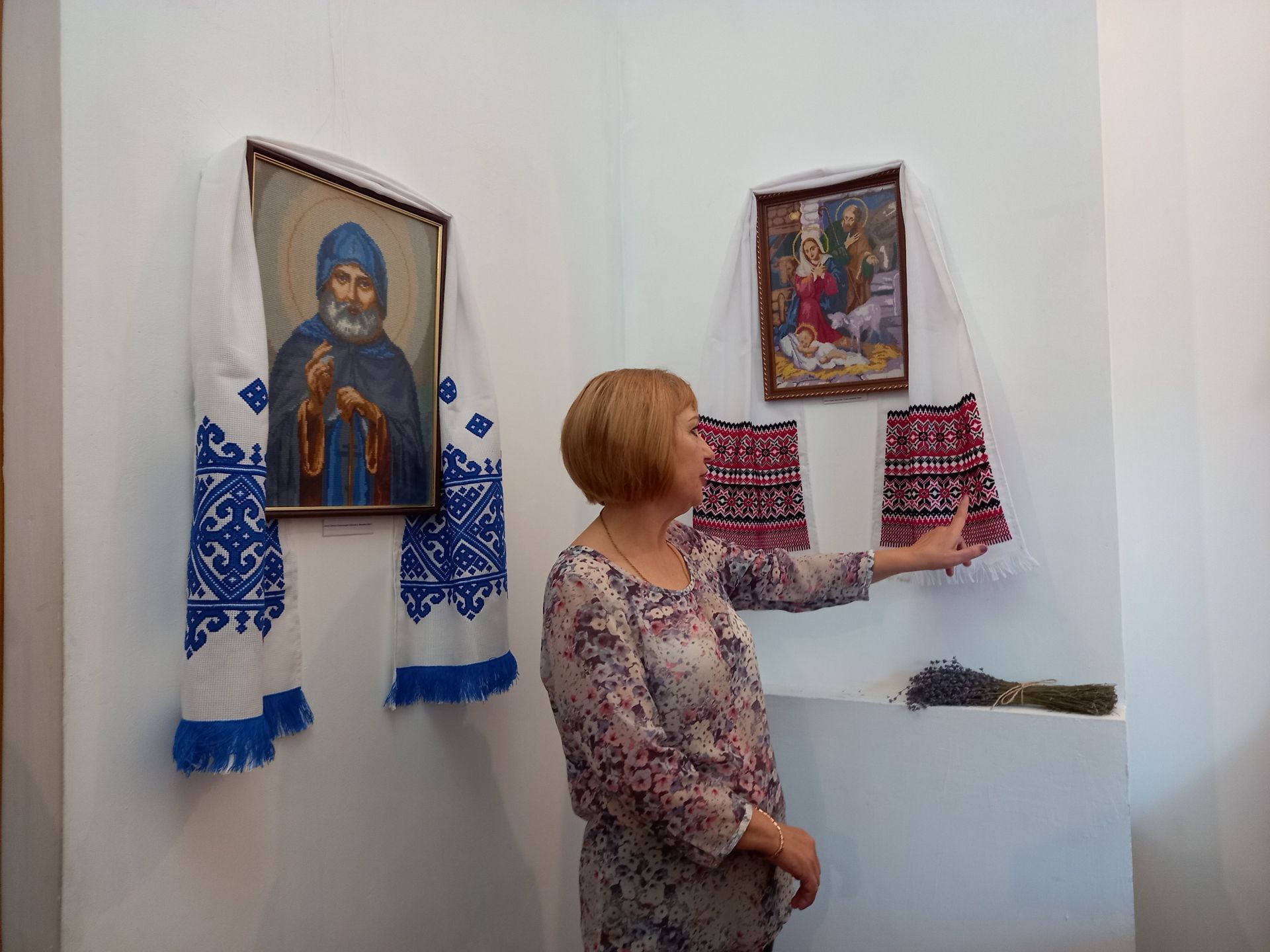 — Рушники я починаю завжди на новий місяць вишивати, щоб було щастя у людей і дорога довга, — ділиться секретами майстриня. — Якщо маю вишивати ікону, спочатку беру благословення у батюшки в церкві, сповідаюся і тільки тоді починаю вишивати. Коли ікона вже вишита і оформлена в рамку, йду в церкву, щоб її освятити.