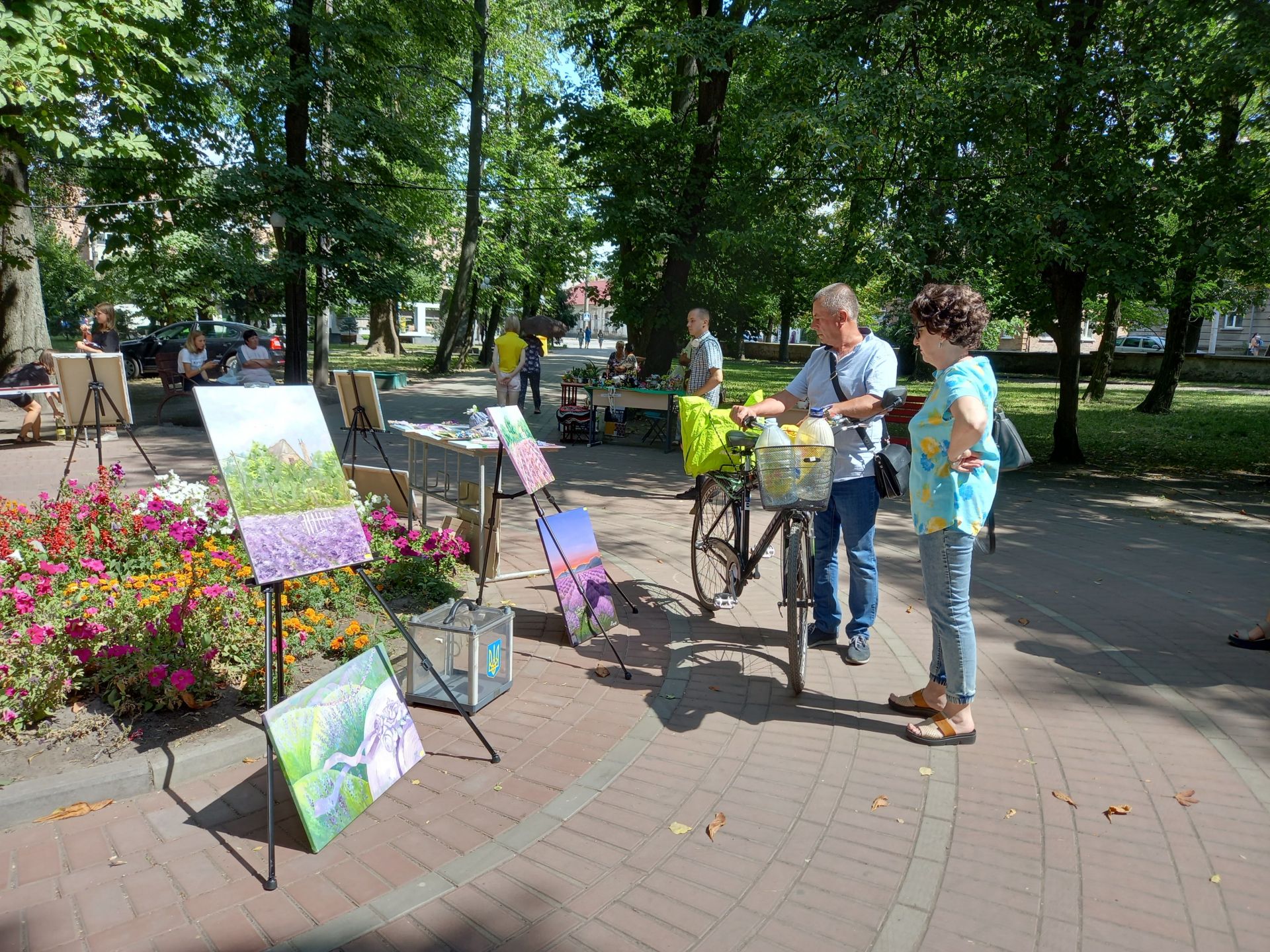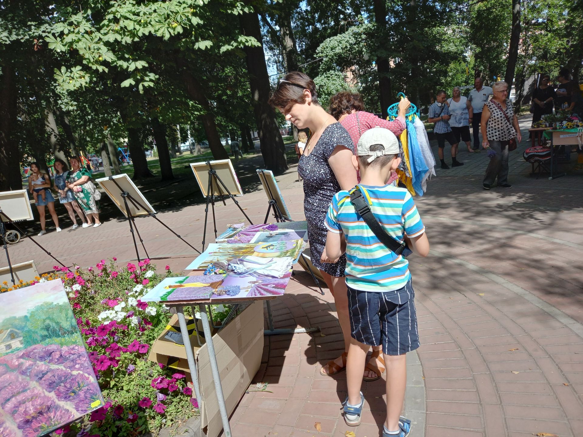 У вівторок, 22 серпня, міський сквер вкотре перетворився на ярмаркову площу. Тут організували лавандовий вернісаж на підтримку наших бійців. Усі кошти з проданих виробів підуть на потреби воїнів. Захід мав розпочатися о 13.00, але на заваді стала повітряна тривога. Після відбою вернісаж-ярмарок нарешті стартував.