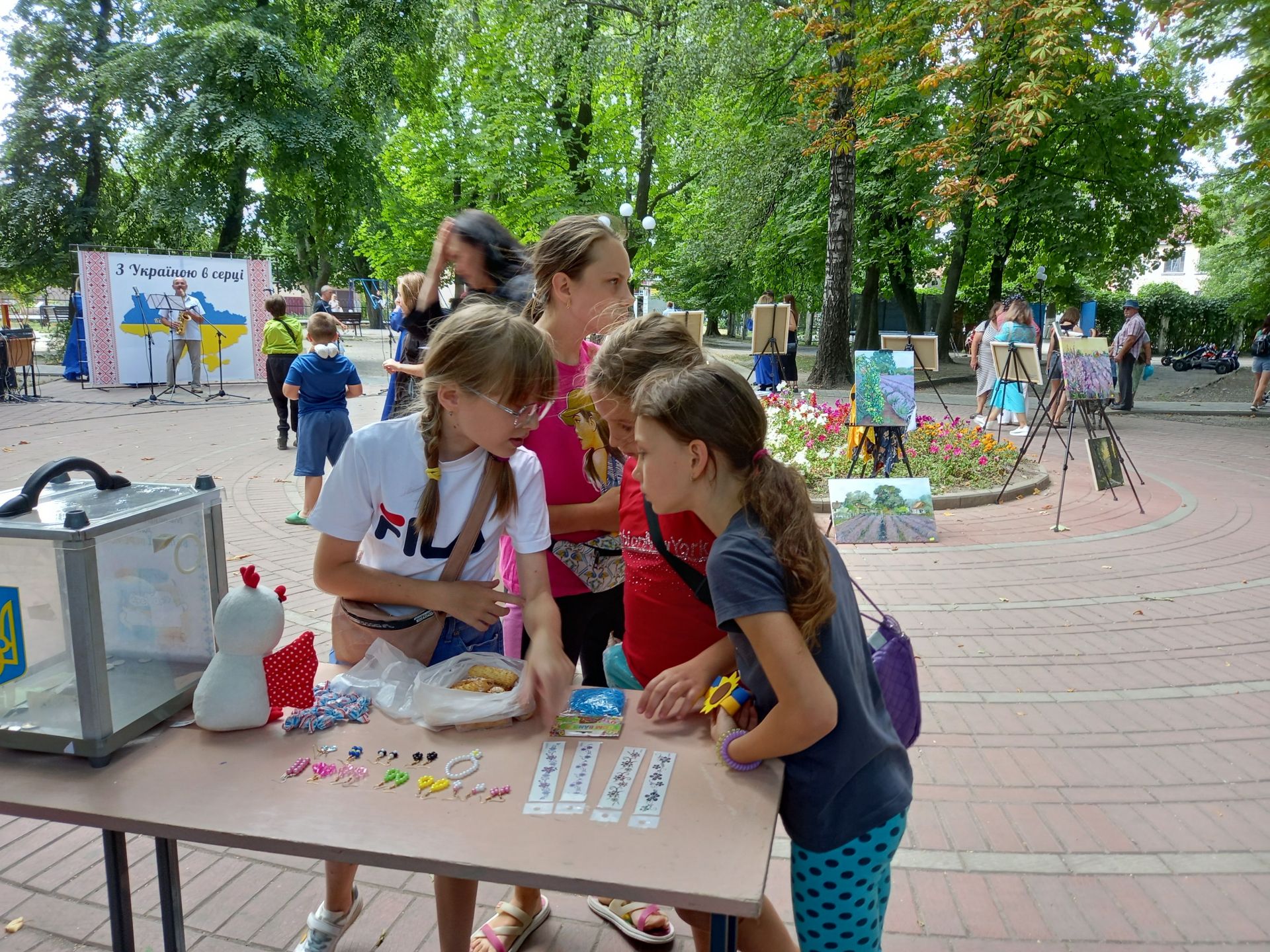 Долучилися до ярмарку-вернісажу не тільки художники, а й волонтери-рукодільці. Це Поліна Заєць, Віталій і Дарина Луцкови, Вероніка Мотіна, Марія та Юлія Вакар, Лілія Українець, Анастасія Доценко.