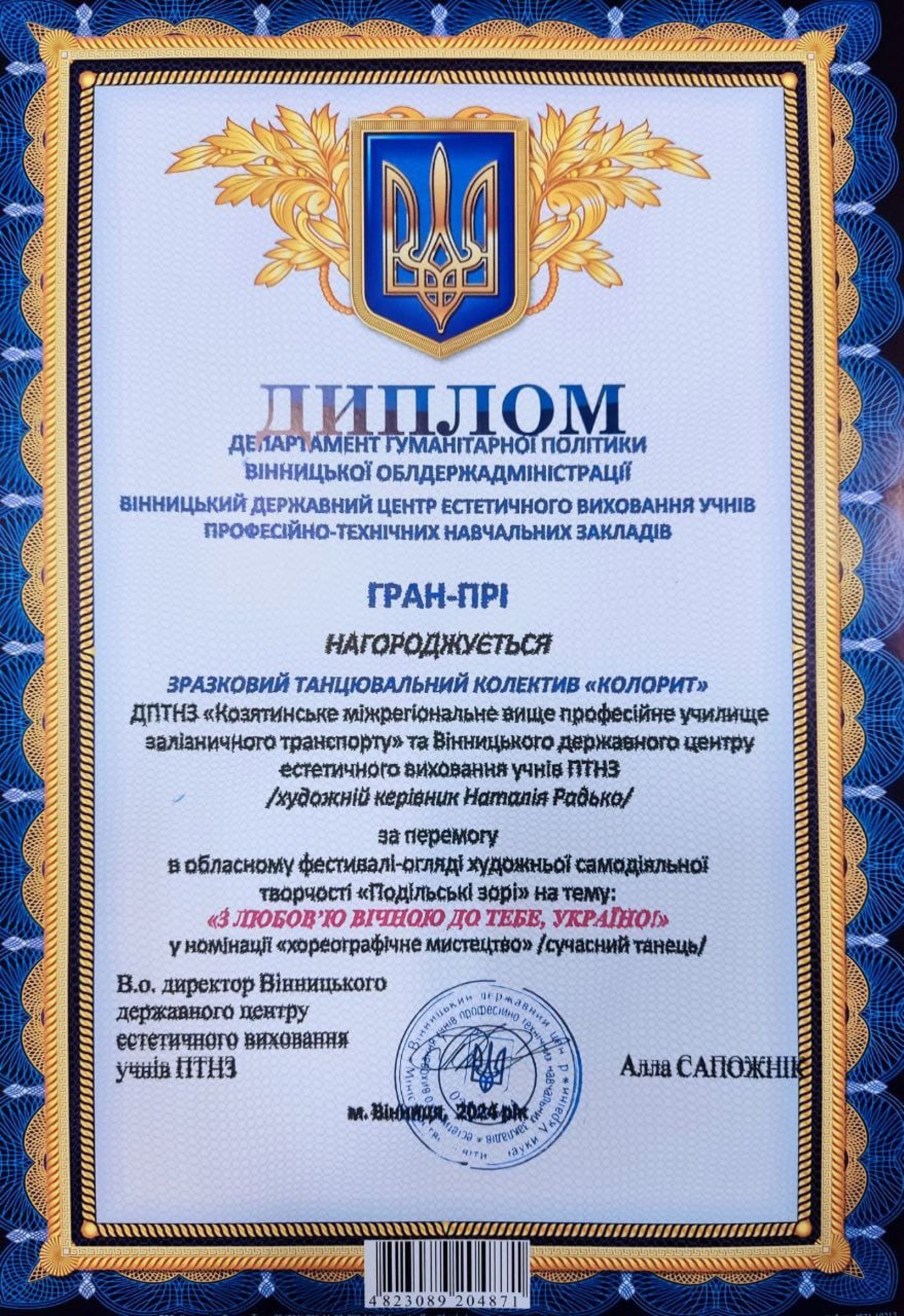 - Гран-прі отримав зразковий танцювальний колектив «Колорит» у номінації «хореографічне мистецтво» , сучасний танець