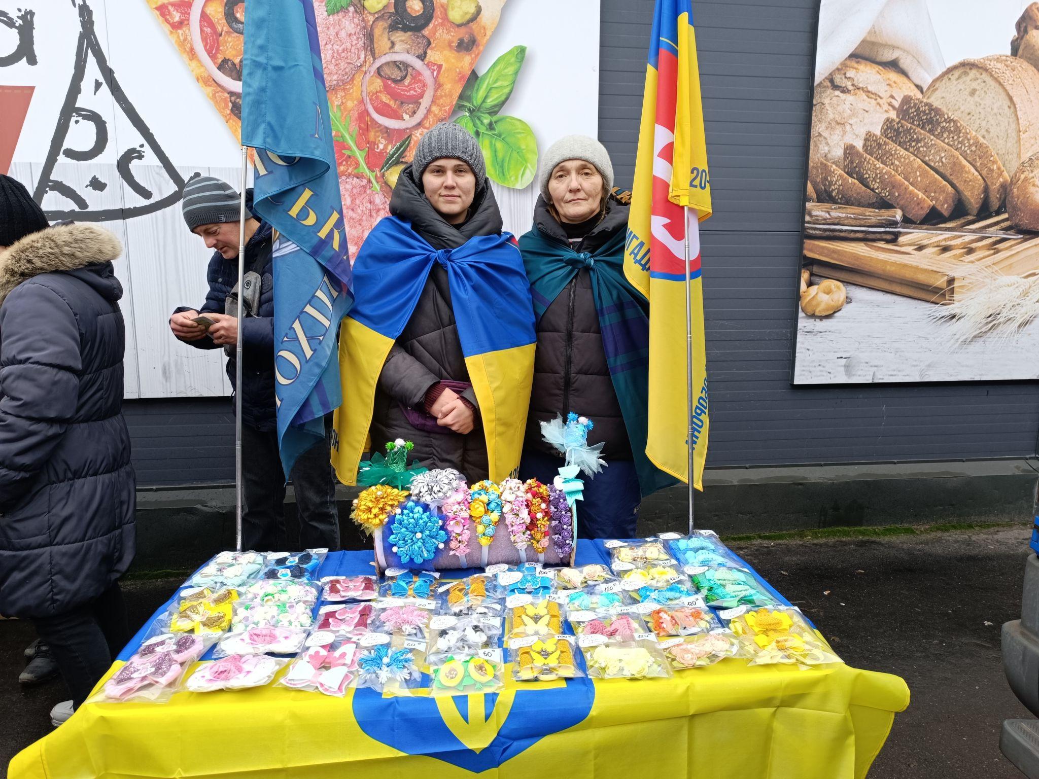 За столиком поруч із «ДОМівцями» — заколки, обручі та резинки. Ці аксесуари для волосся робить Тетяна. Нещодавно жінка почала ділитися своєю творчістю в ТікТок. Вона — переселенка із Бердянська.