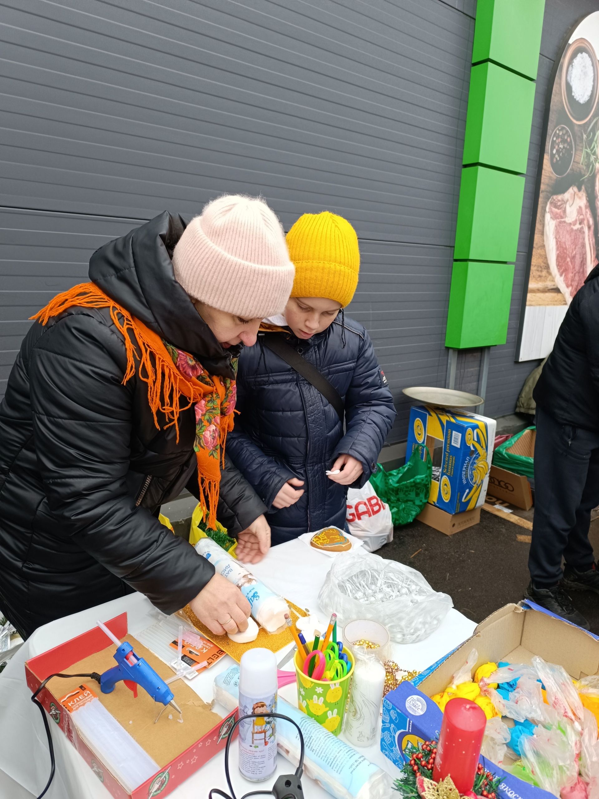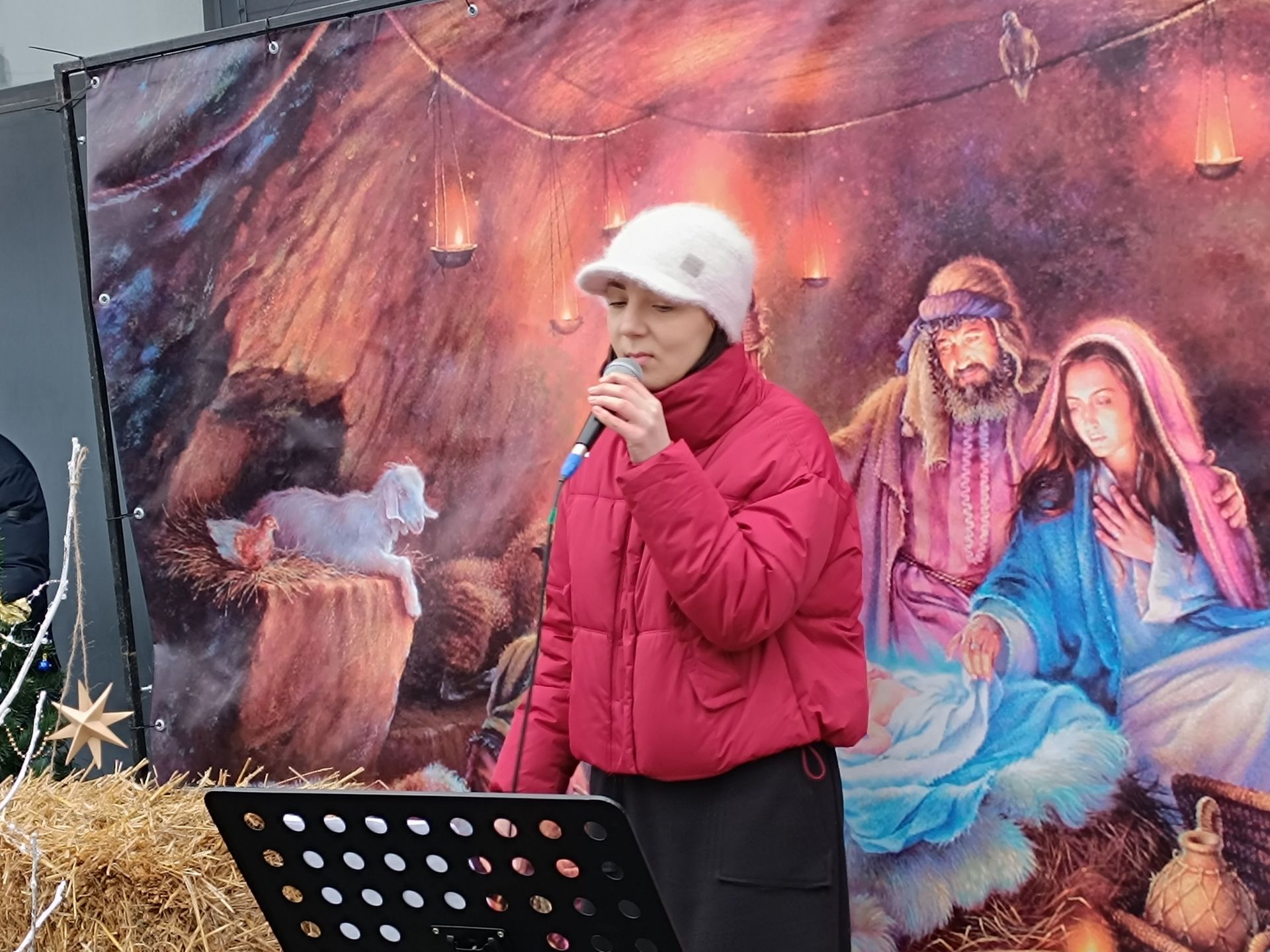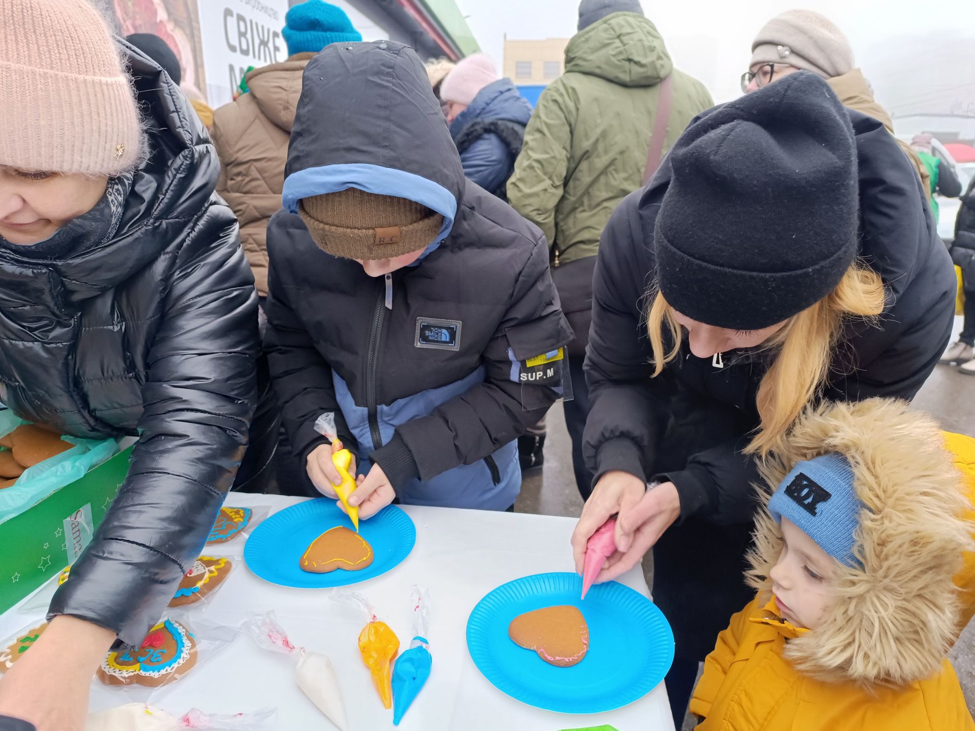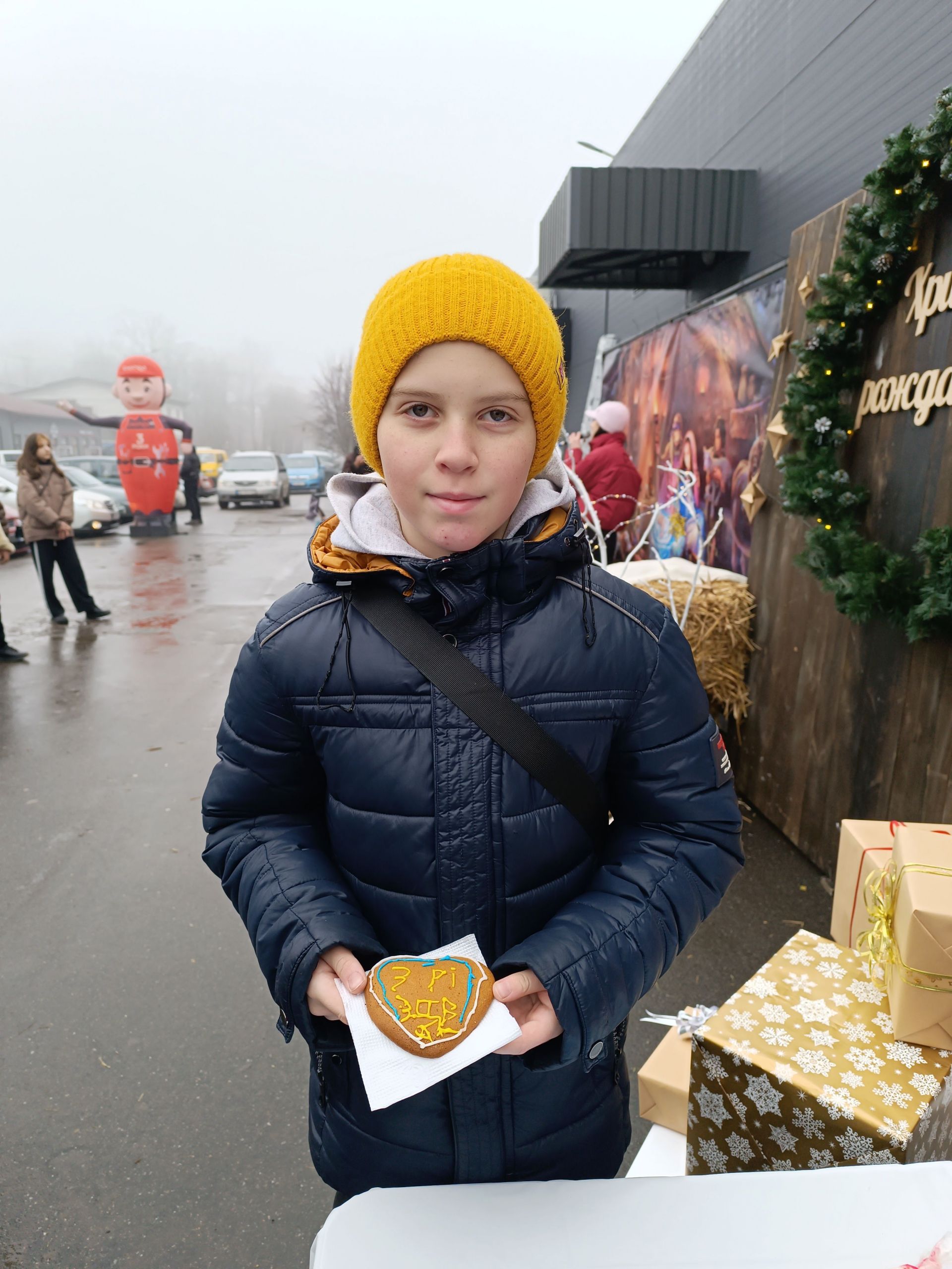 Вівторок, 24 грудня. На годиннику майже 11-та. Біля супермаркету «Фора» велелюдно Тут панує святкова атмосфера. Гілочки дерев, прикрашені яскравими вогнями, фотозони на тему Різдва. А поруч — столи, повні різноманітних смаколиків. Це — Різдвяний ярмарок, який влаштували волонтери «Церкви Спасіння».