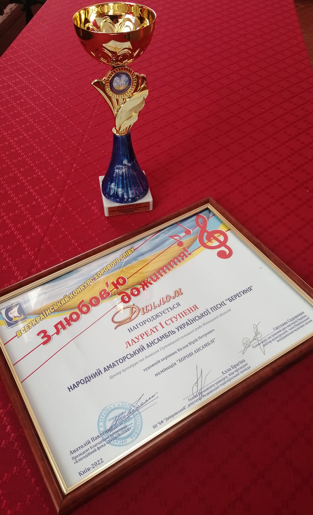 - Днями народний аматорський ансамбль української пісні «Берегиня» прийняли участь в Всеукраїнському дистанційному конкурсі хорового співу «З любов’ю до життя» у Києві