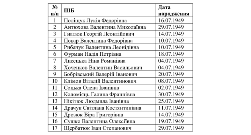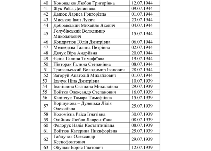- Опублікували список довгожителів Козятинської громади, яких у липні вітатимуть з ювілейними датами грамотами міської ради та матеріальною винагородою