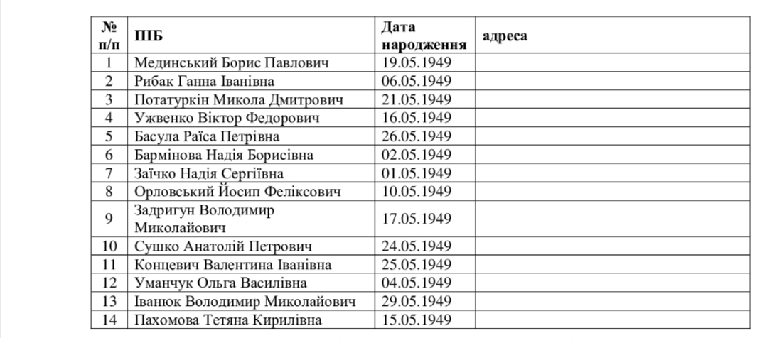 - Опублікували список довгожителів Козятинської громади, яких у травні вітатимуть з ювілейними датами грамотами міської ради та матеріальною винагородою