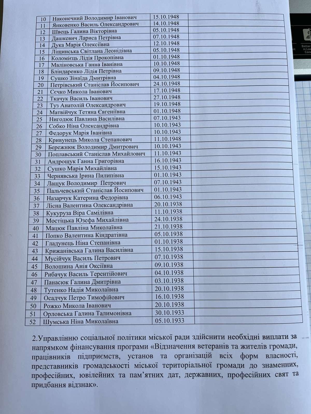 - Опублікували список серпневих довгожителів громади, яких вітатимуть з ювілейними датами грамотами міської ради та матеріальною винагородою