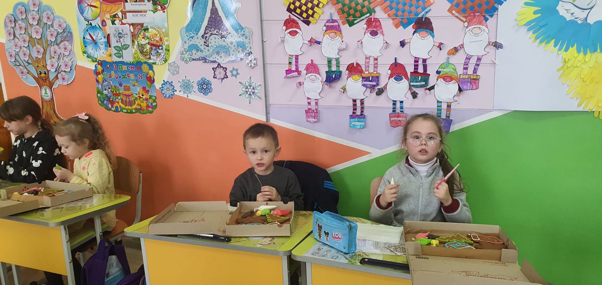 Козятинський ліцей №3 опублікував фото, як першокласники на День Святого Миколая розписували імбирне печиво.
