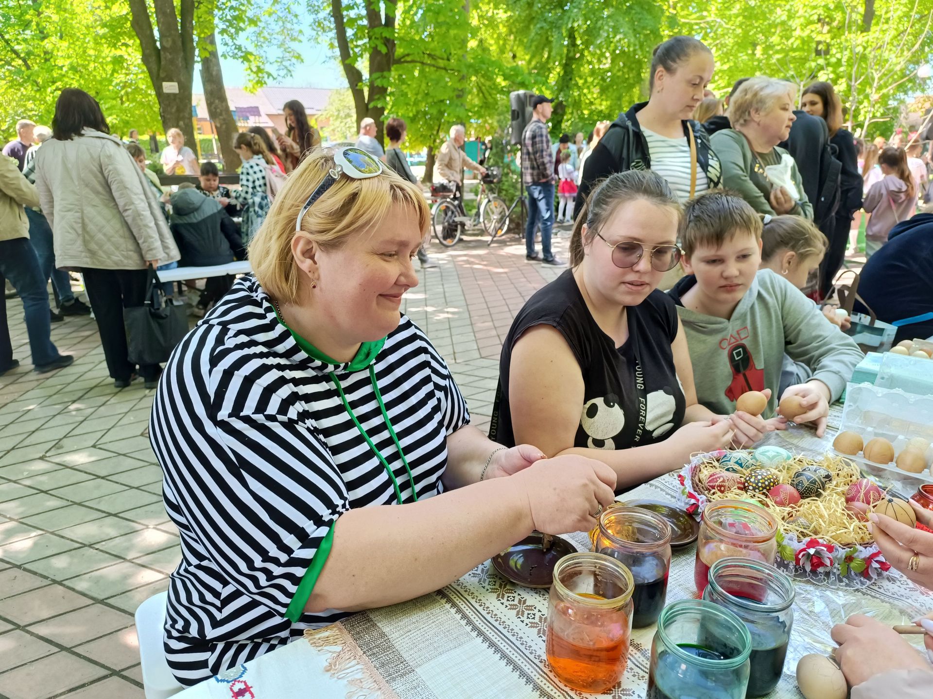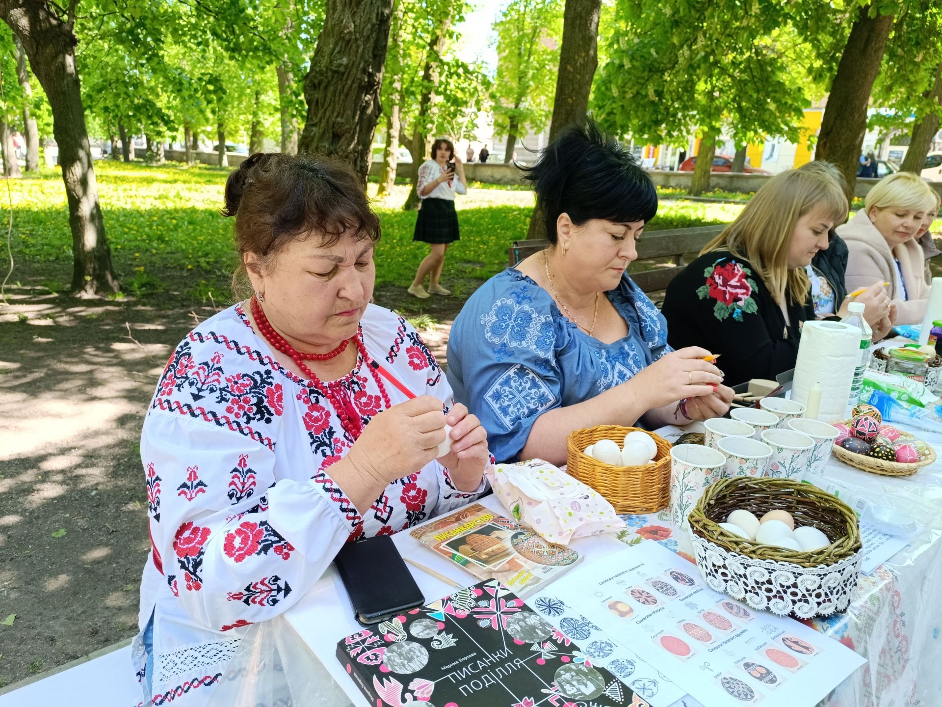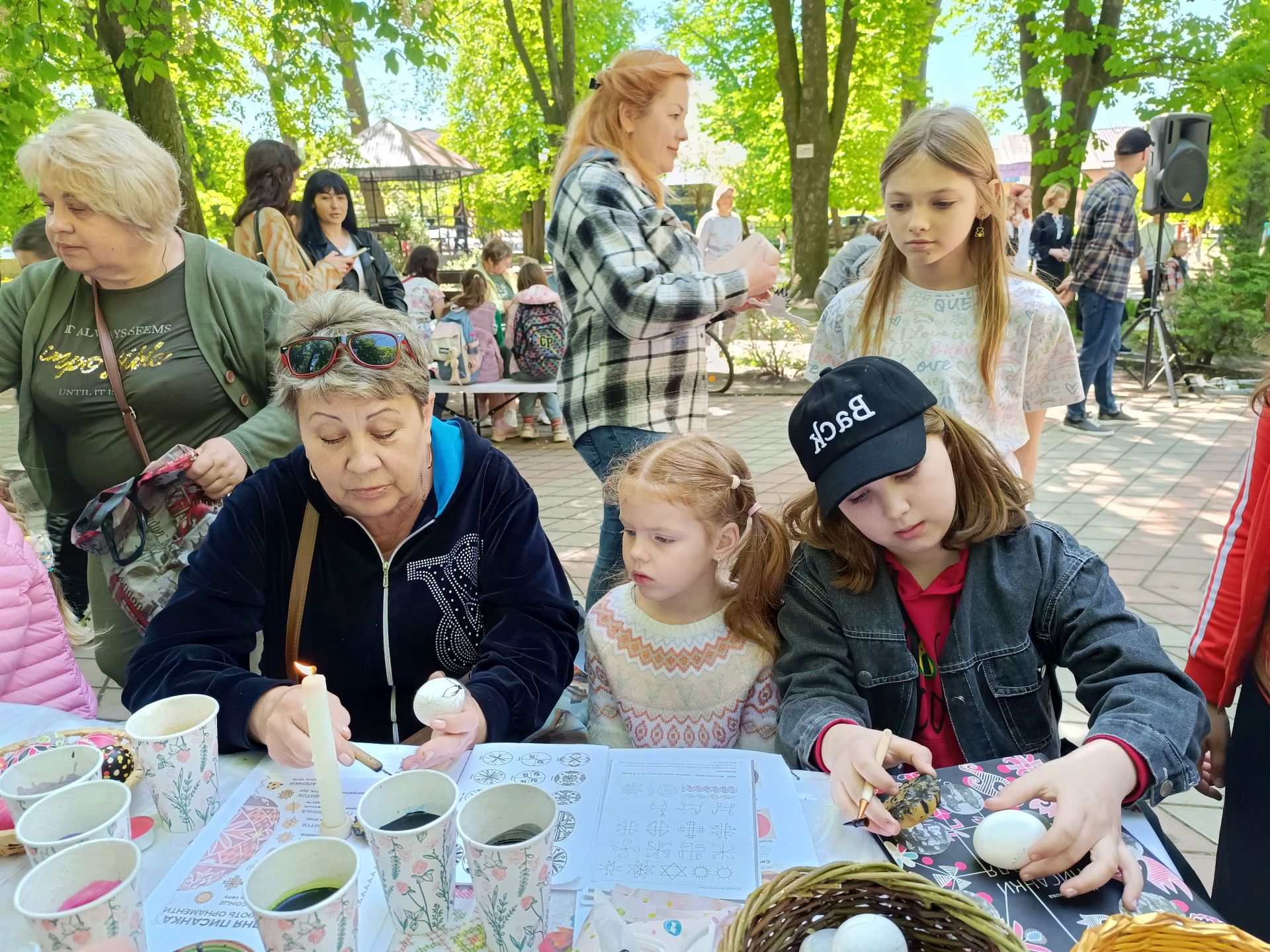 Біля столика, де проводили майстер-клас із писанкарства, людей зібралося найбільше. І дорослі, і діти активно писали писанки, допоки тривав фестиваль.