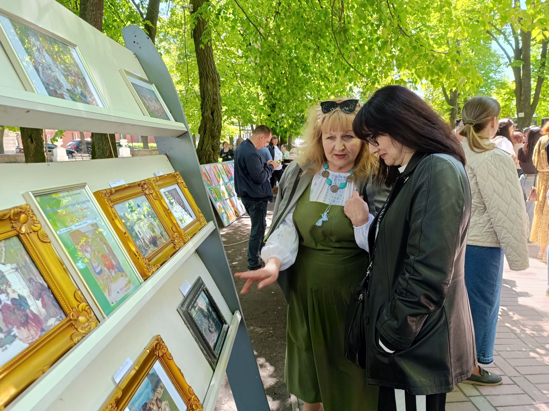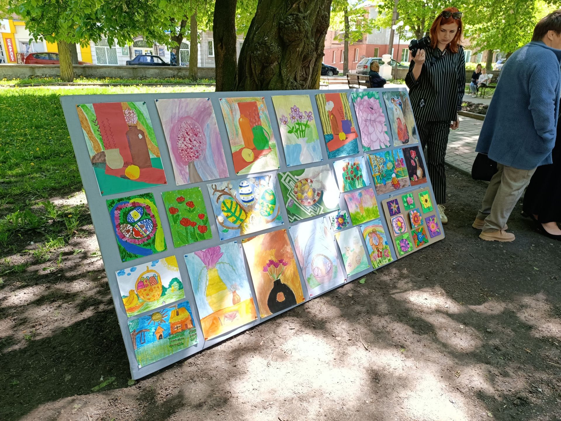 На арт-майданчику облаштували дві виставки. На одній із них — роботи юних художників Дитячої музичної школи. Другу виставку представив Музей історії міста.