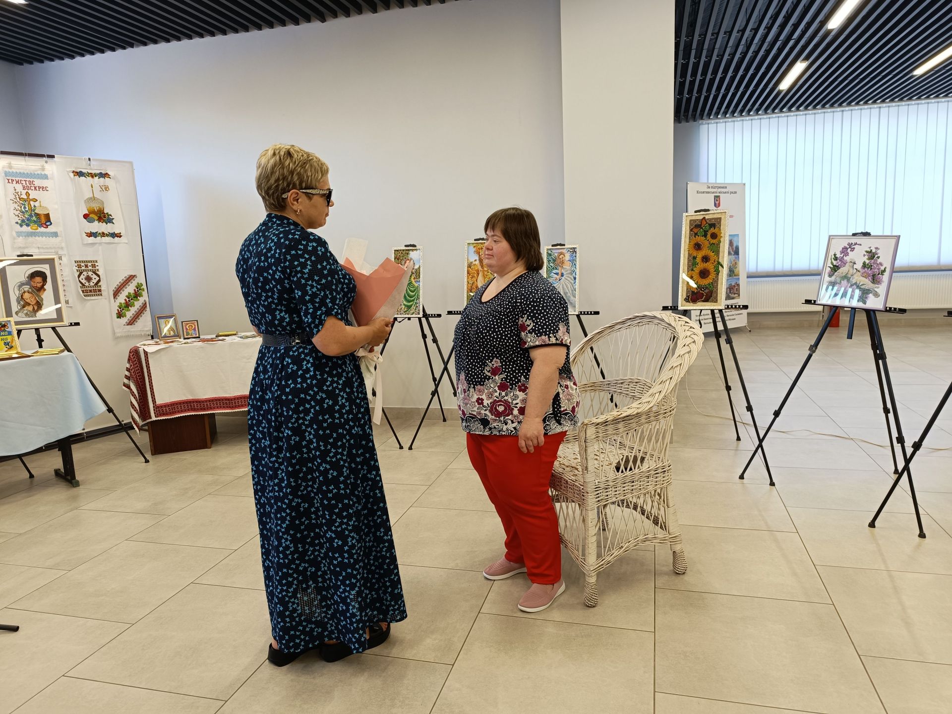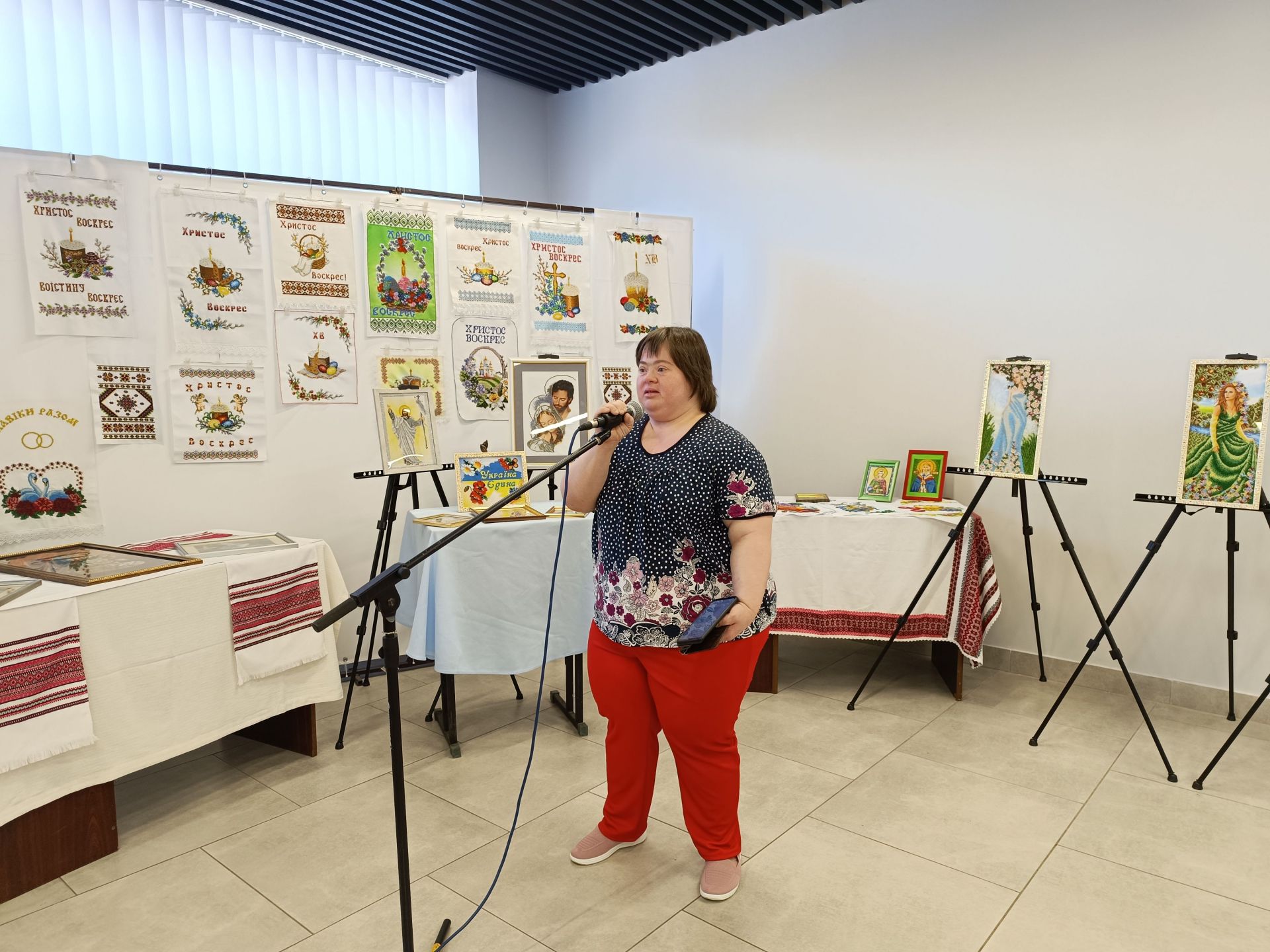 — Сьогодні один з тих днів, коли ми маємо можливість ближче познайомити з нашою громадою дівчину, яка через призму свого доброго серця створює прекрасні речі своїми руками, яка пройшла важкий шлях для того, щоб досягти такого рівня, який ми сьогодні бачимо, подолала власні бар’єри та перепони, збиралася з силами, коли, здавалося, не залишилося сил, — каже ведуча Ольга Безпалько. — Виставка «Барвистий світ Анни Попович» — це не лише про мистецтво та творчість, це про силу духу, це про незламність, це про велику та кропітку роботу над собою, а ще про велику любов.