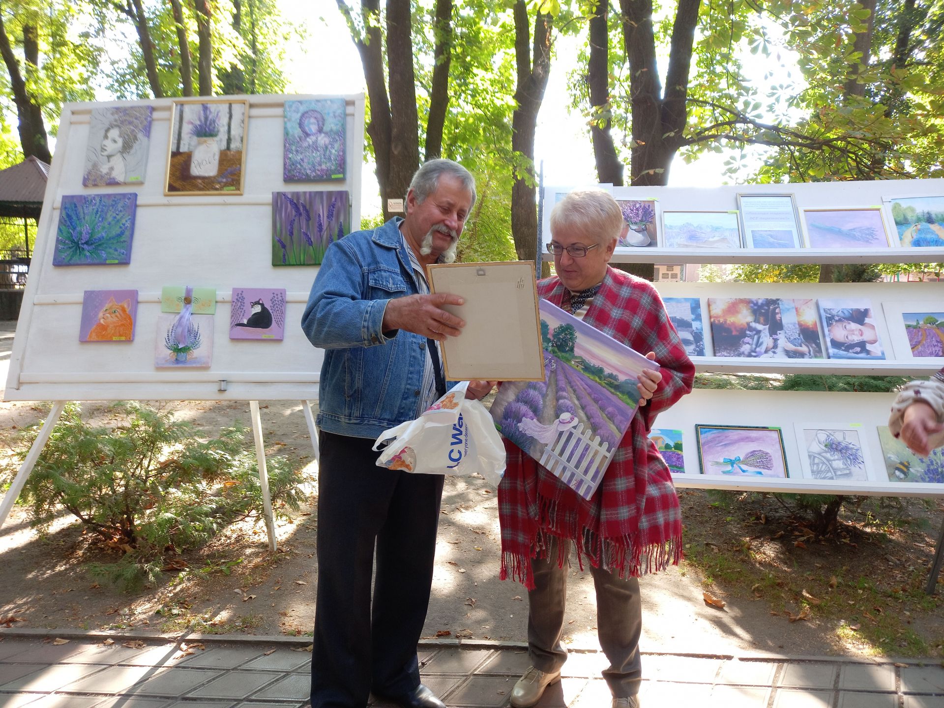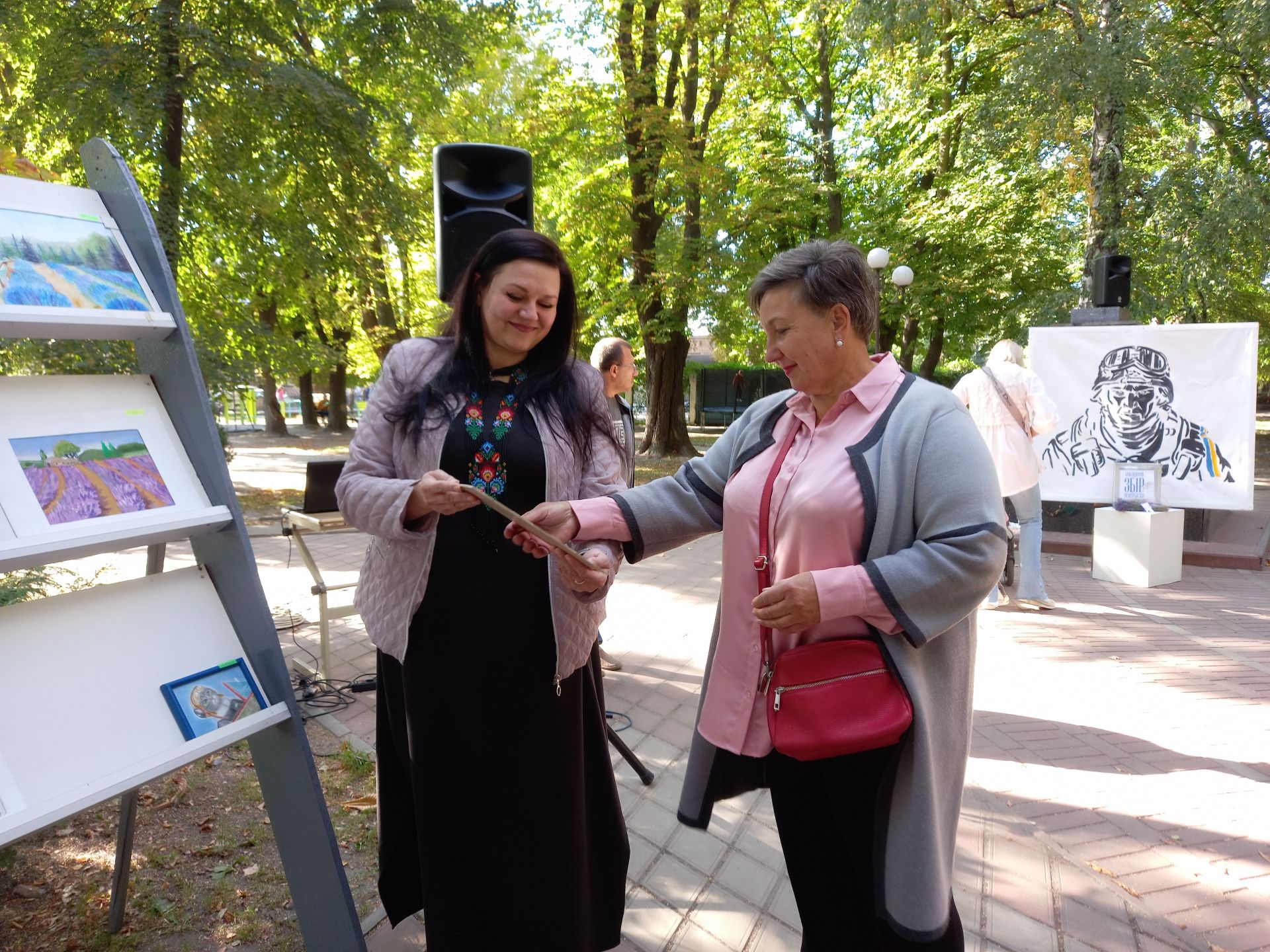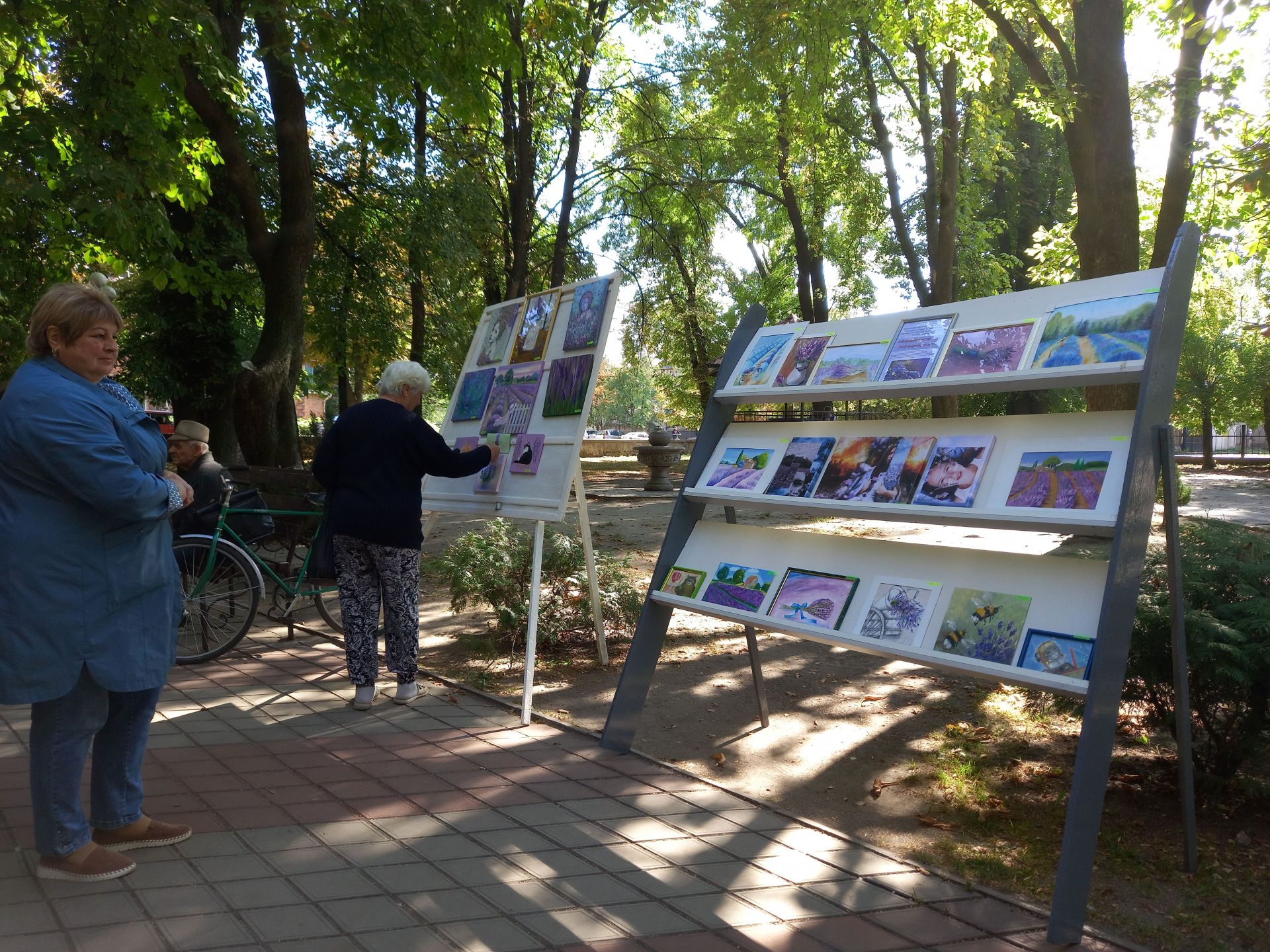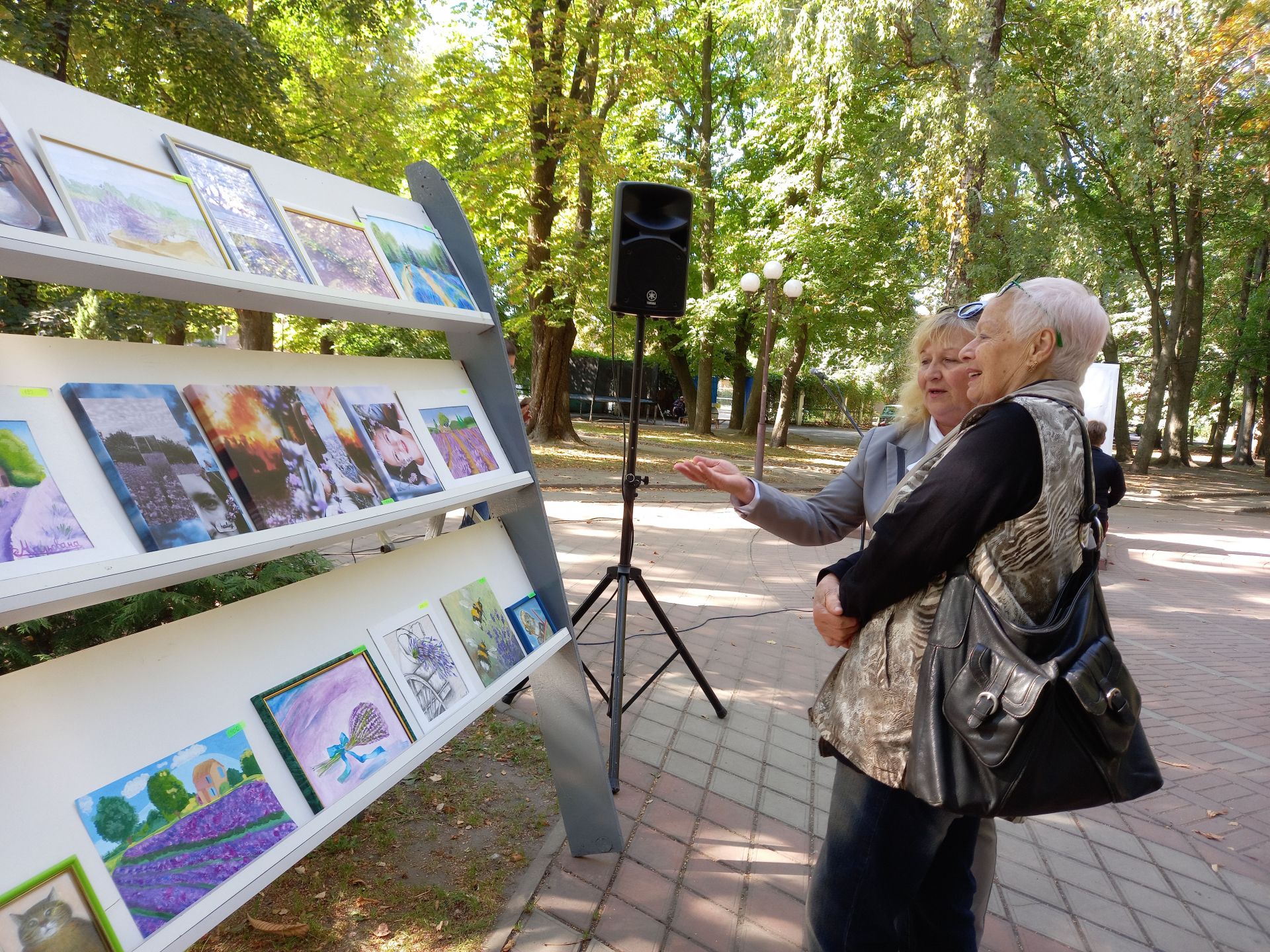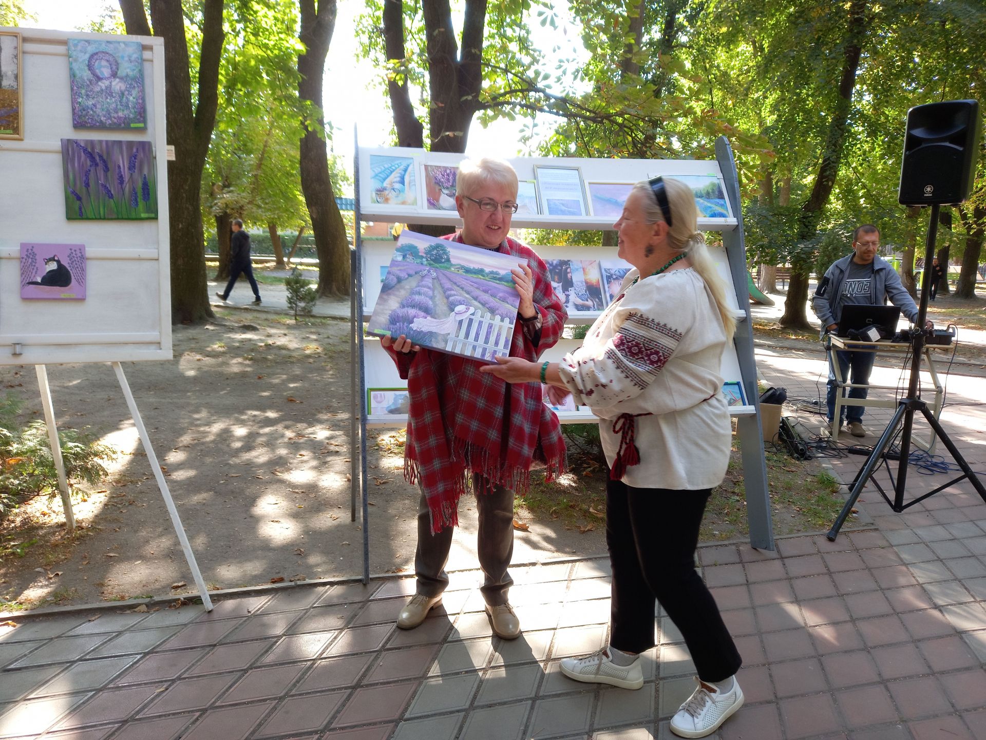 На благодійному вернісажі «Лаванда надихає — ЗСУ перемагає» представили 35 робіт, виконаних у різних техніках. Експозицію оформили на центральній алеї міського скверу.