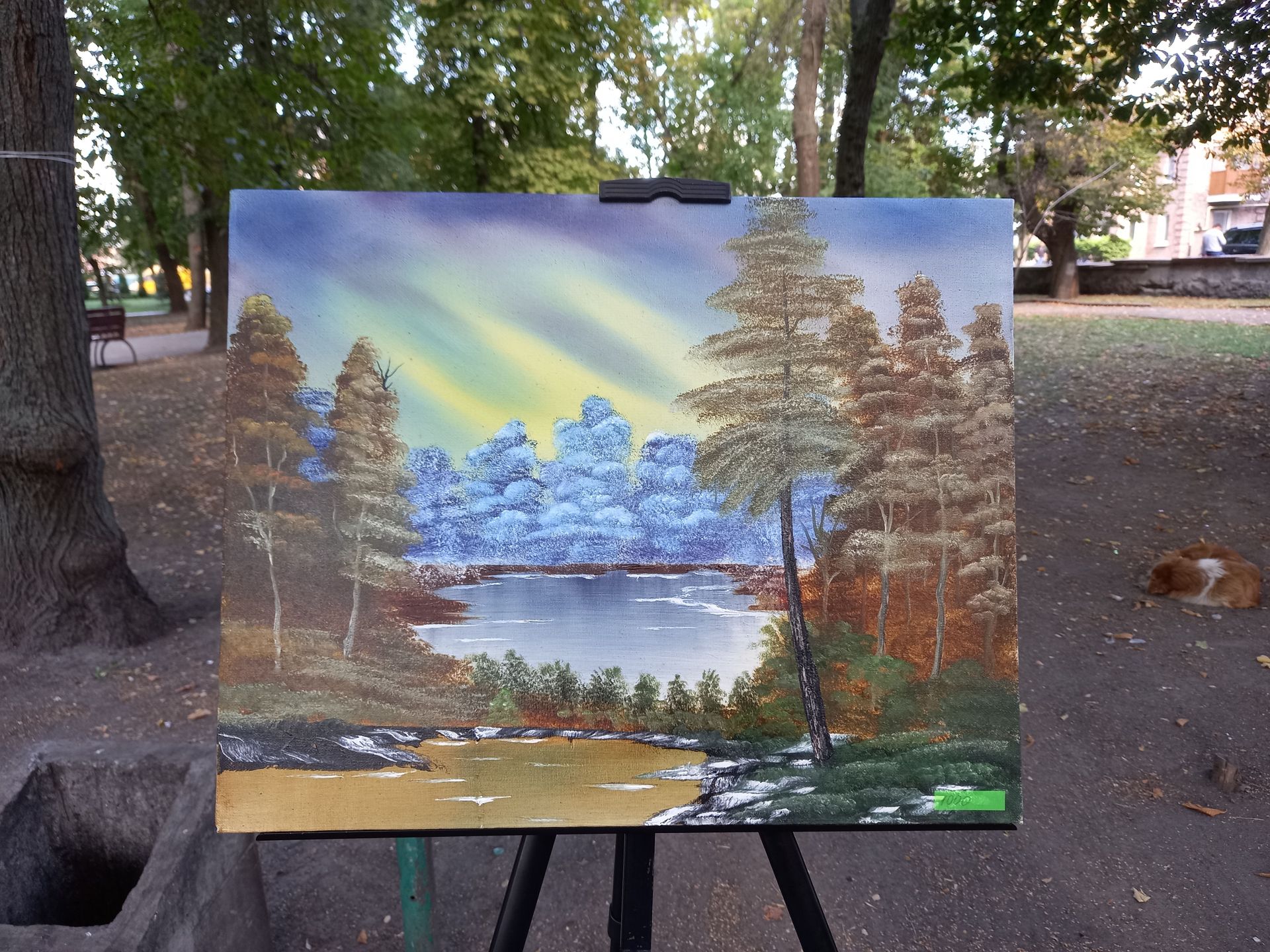 — Я завжди хотів займатися живописом, ще з молодості, але не було можливості, — розповідає Володимир. — Вчитися не було де, не було літератури. Трапилася мені книжка, почав з олівця. Спочатку олівець, гуаш, акварель, перейшов на олію. Я знаходжу в інтернеті відео, таку картину, яку я відчуваю, що зможу потягнути, і малюю. Найбільше мені подобається працювати пензлем, мастихіном фактично ні. Пишу картини олією. Акварель — не те, папір морщиться. Гуаш — тим більше. Акрилом я також пробував, але воно мені не зрозуміло.