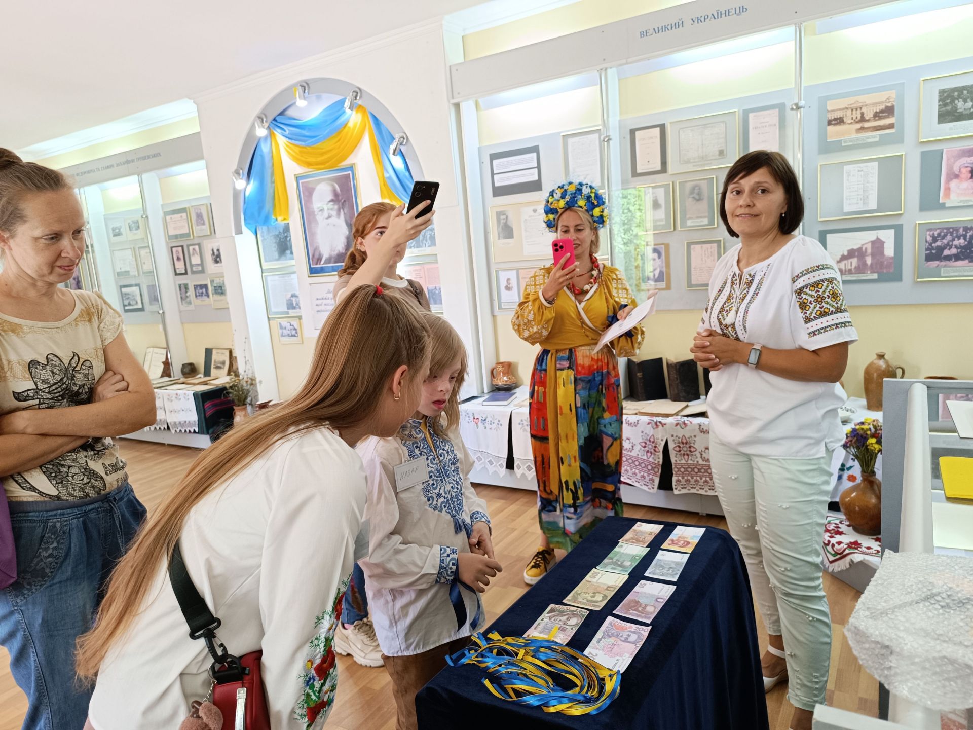 — Ви розглянули фото у нашому музеї, серед світлин є зображення Михайла Грушевського. Грошима ми користуємося кожного дня. Як ви думаєте, на якій грошовій купюрі зображений Михайло Грушевський? — запитує Катерина.