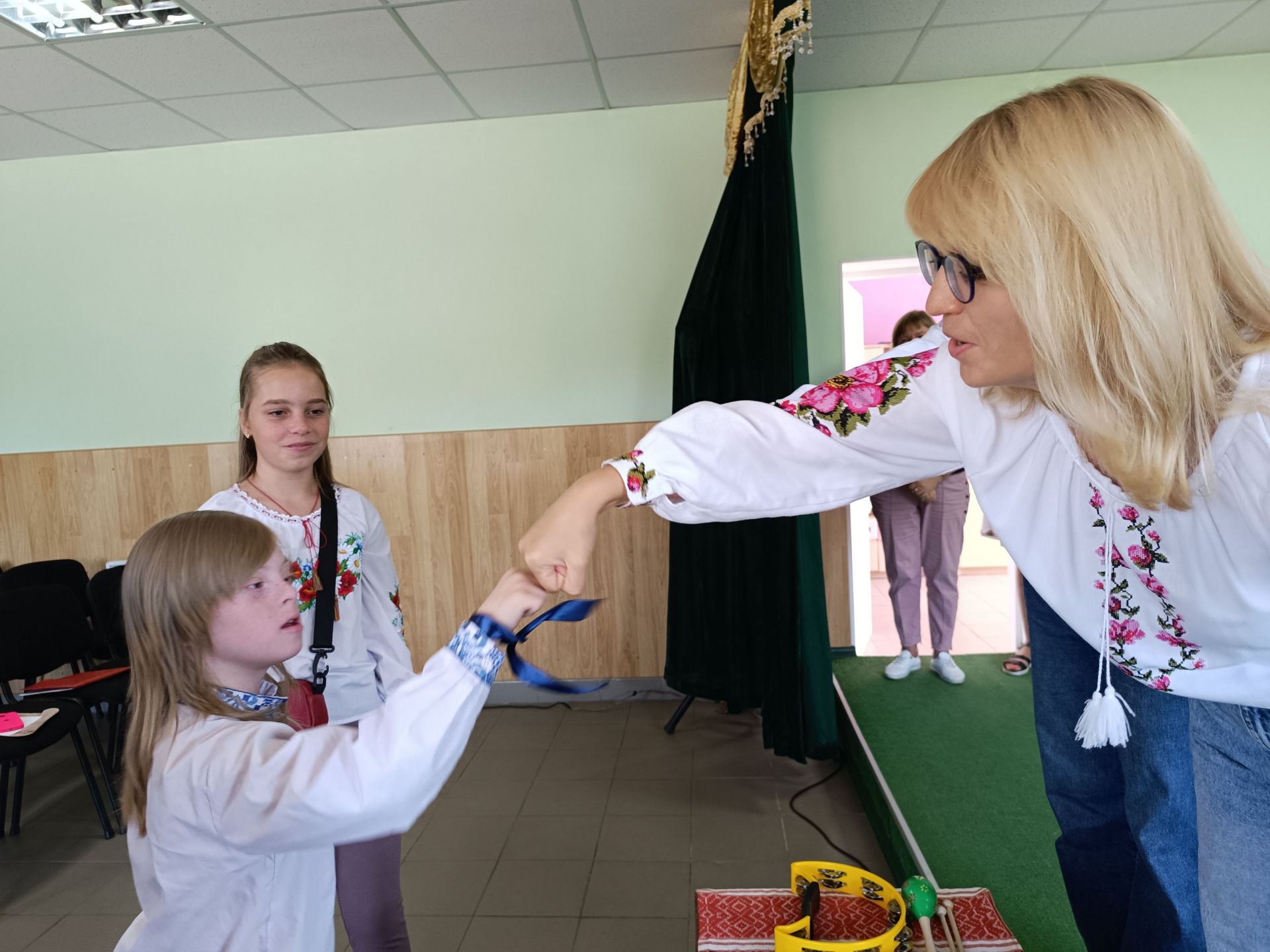 Ми долучилися до команди «Незламні». Її учасники — Ангеліна та два Назари: старший і молодший. Перша станція в їхньому маршруті — «Музична хвилинка». Вона у будинку культури, тож далеко йти нашим учасникам не доводиться.