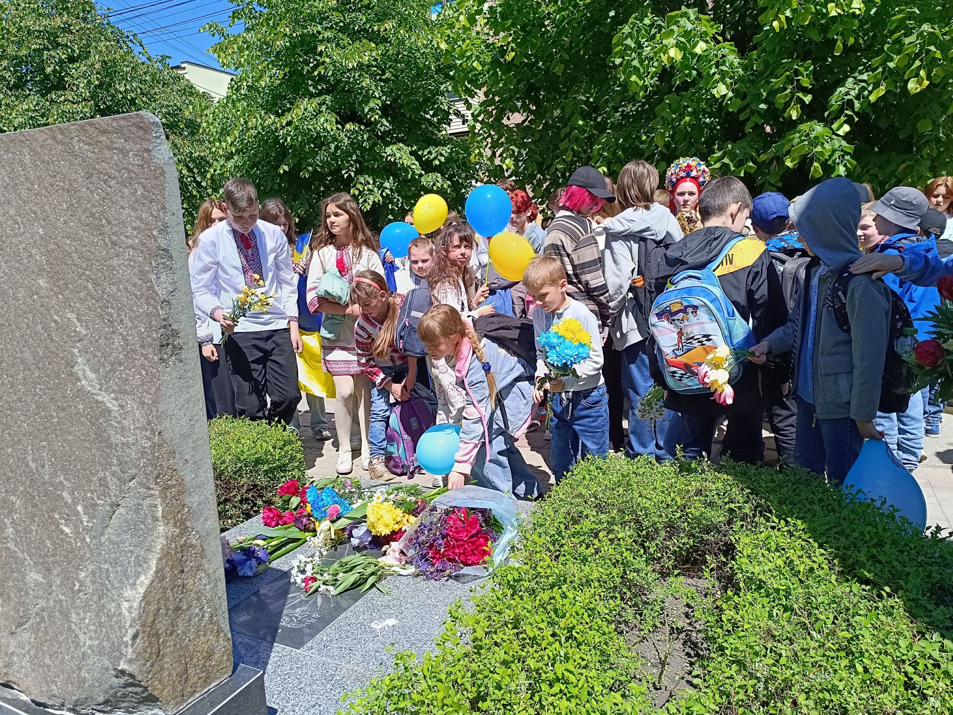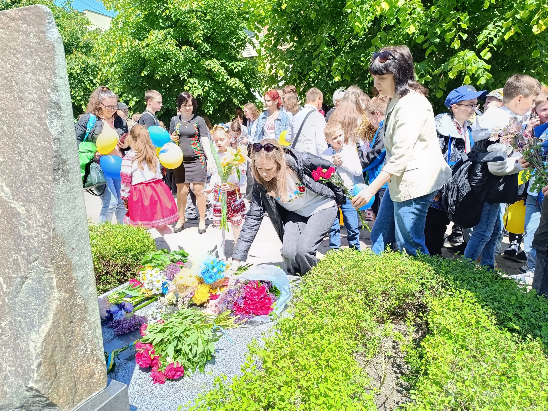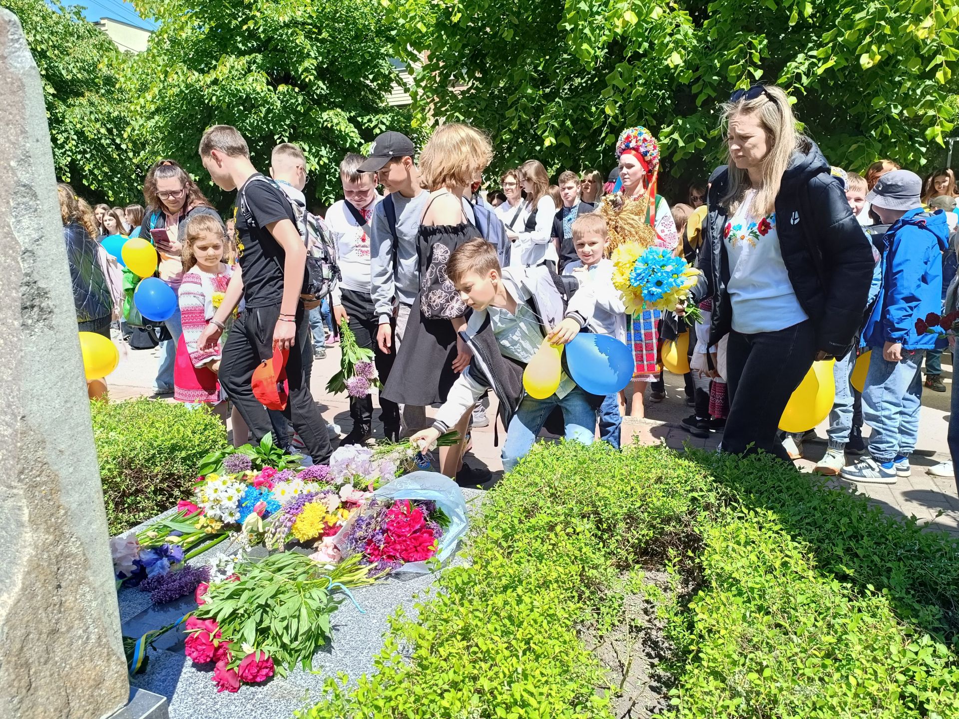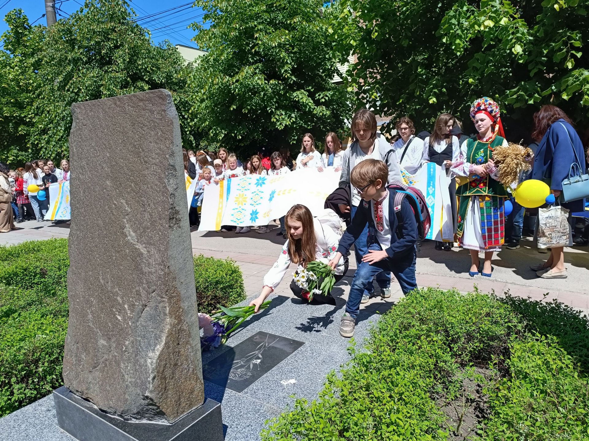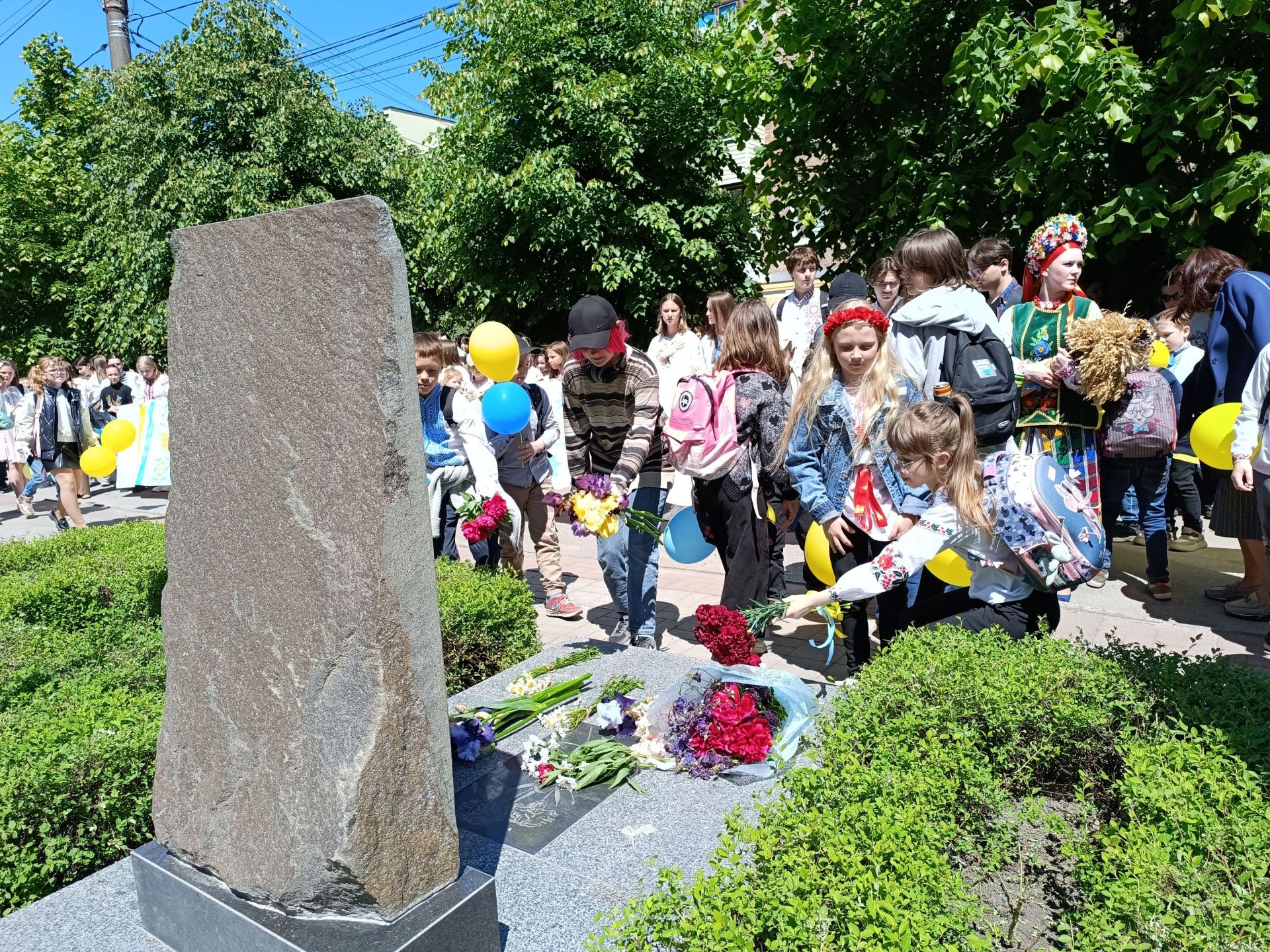 Хода завершилася біля пам’ятника загиблим на війні Героям. Учасники заходу хвилиною мовчання вшанували пам’ять полеглих на полі бою військових і хором співали Гімн України. Після цього школярі поклали квіти до пам’ятного знаку.