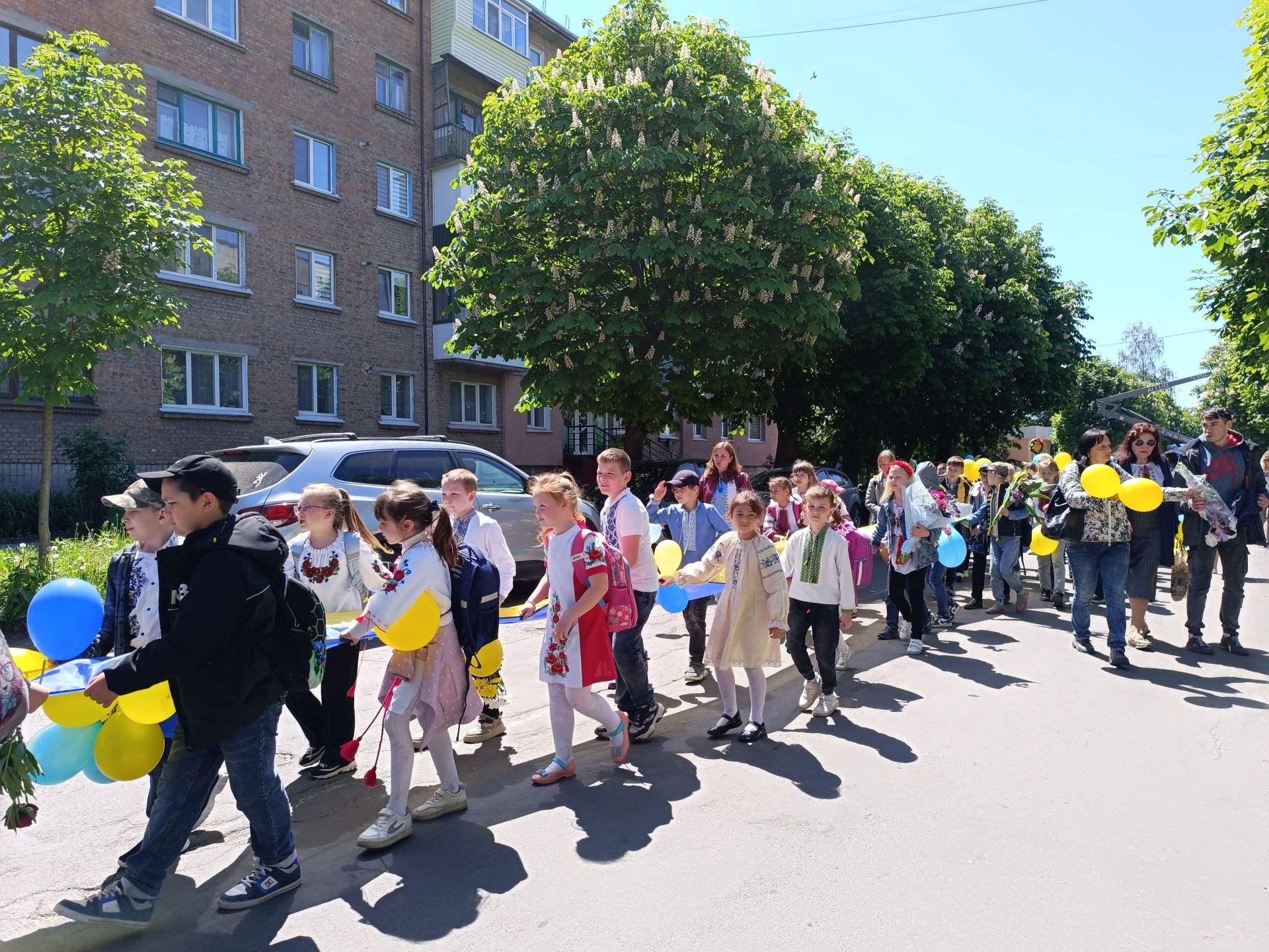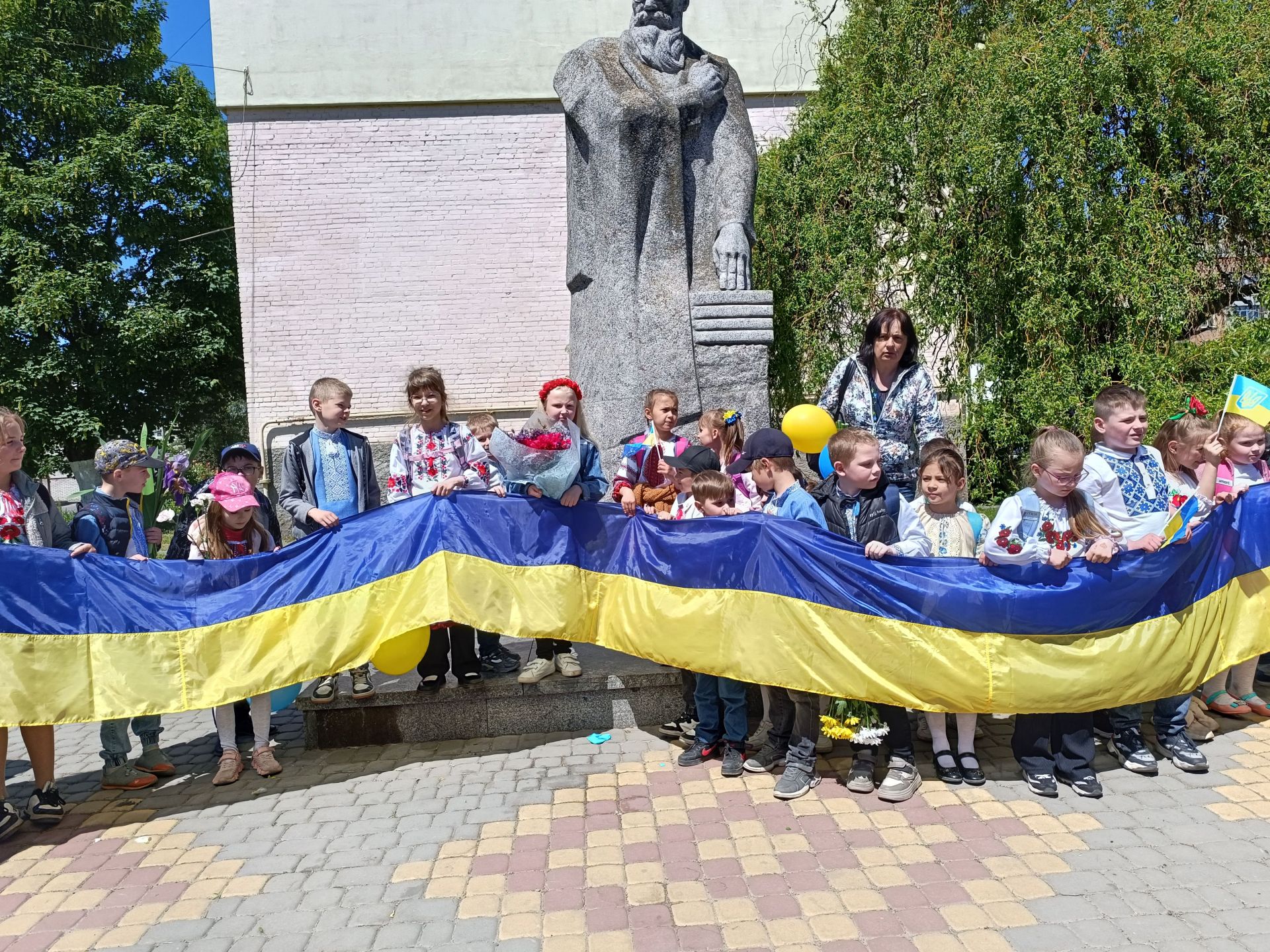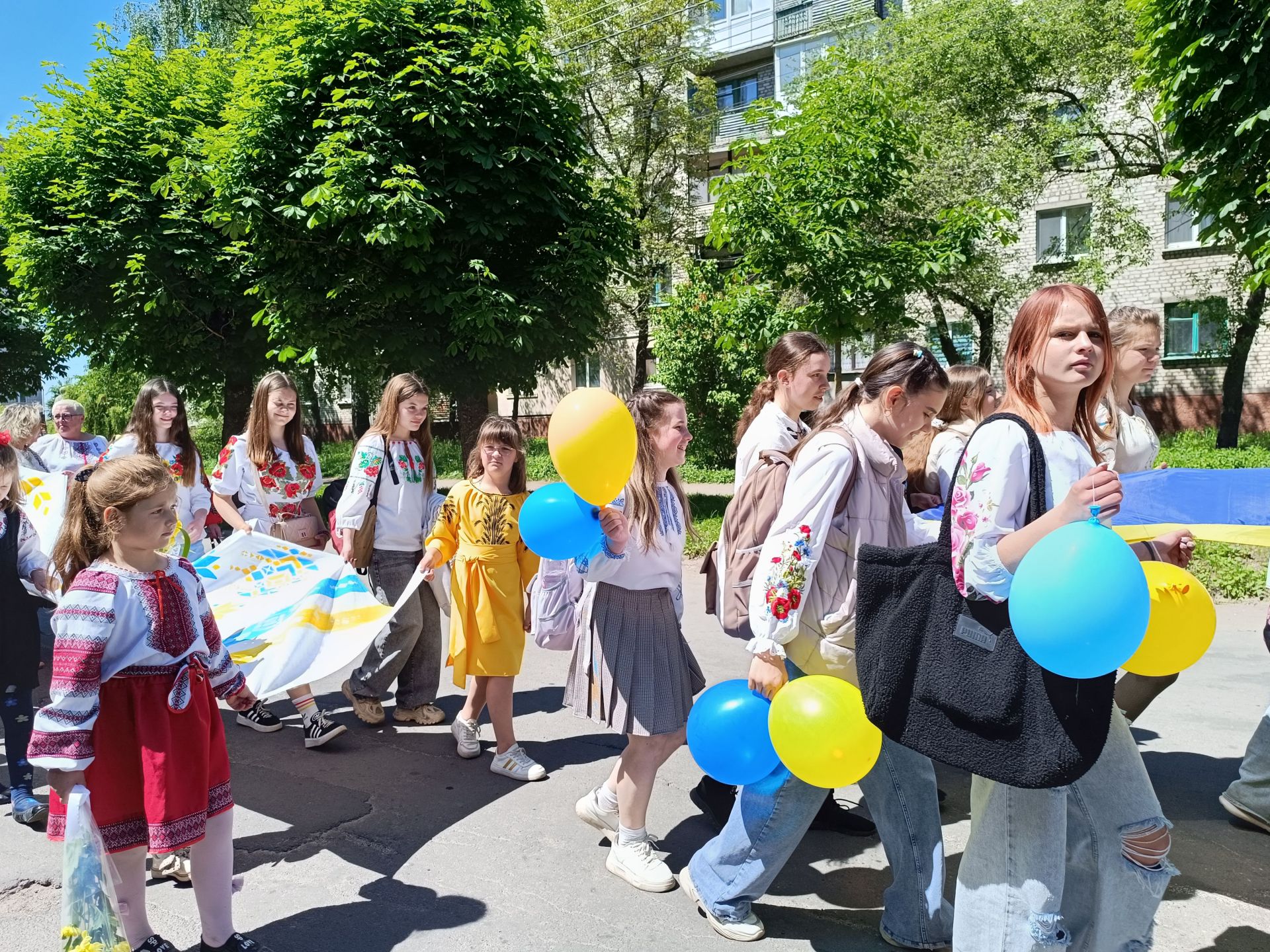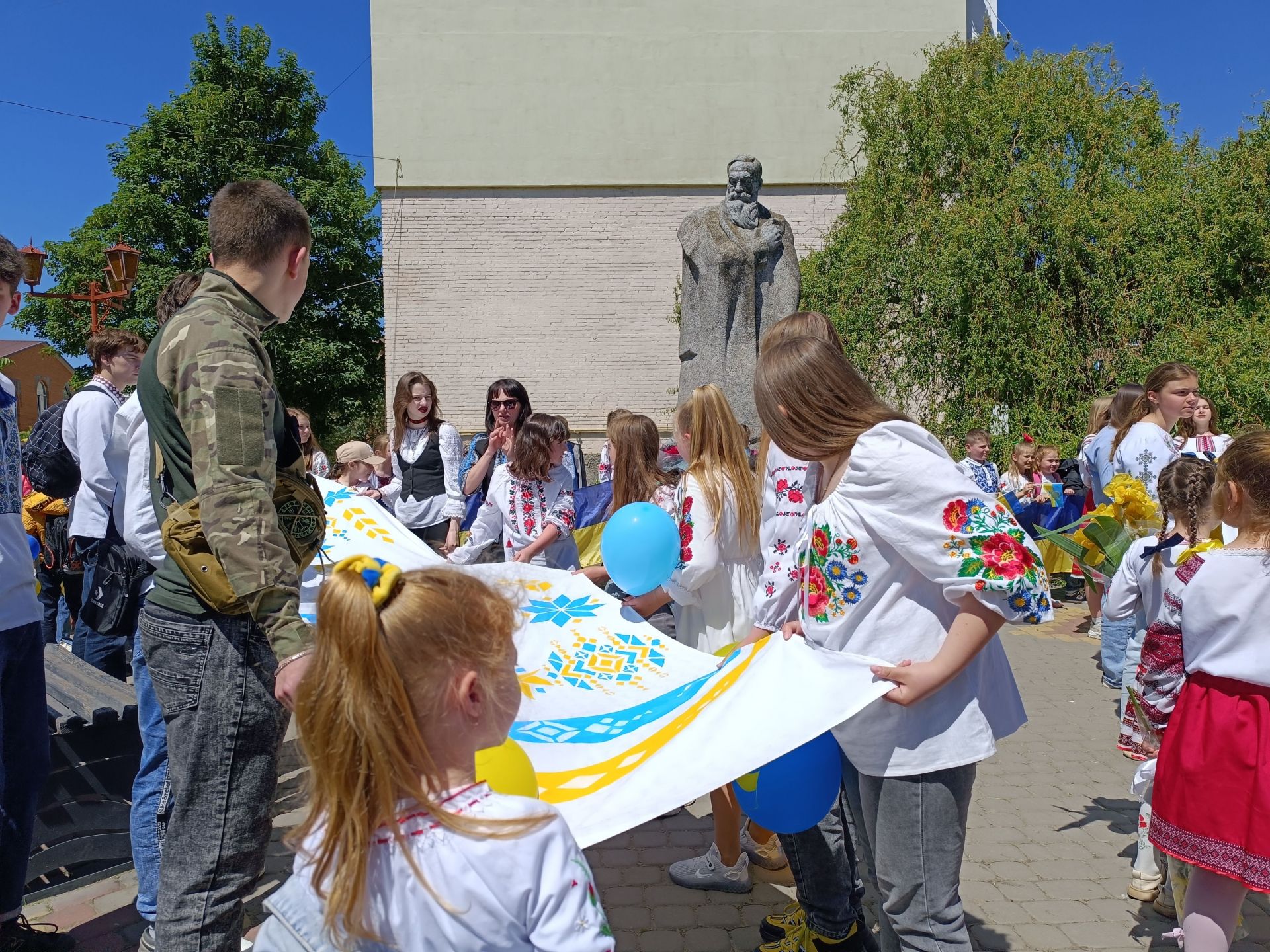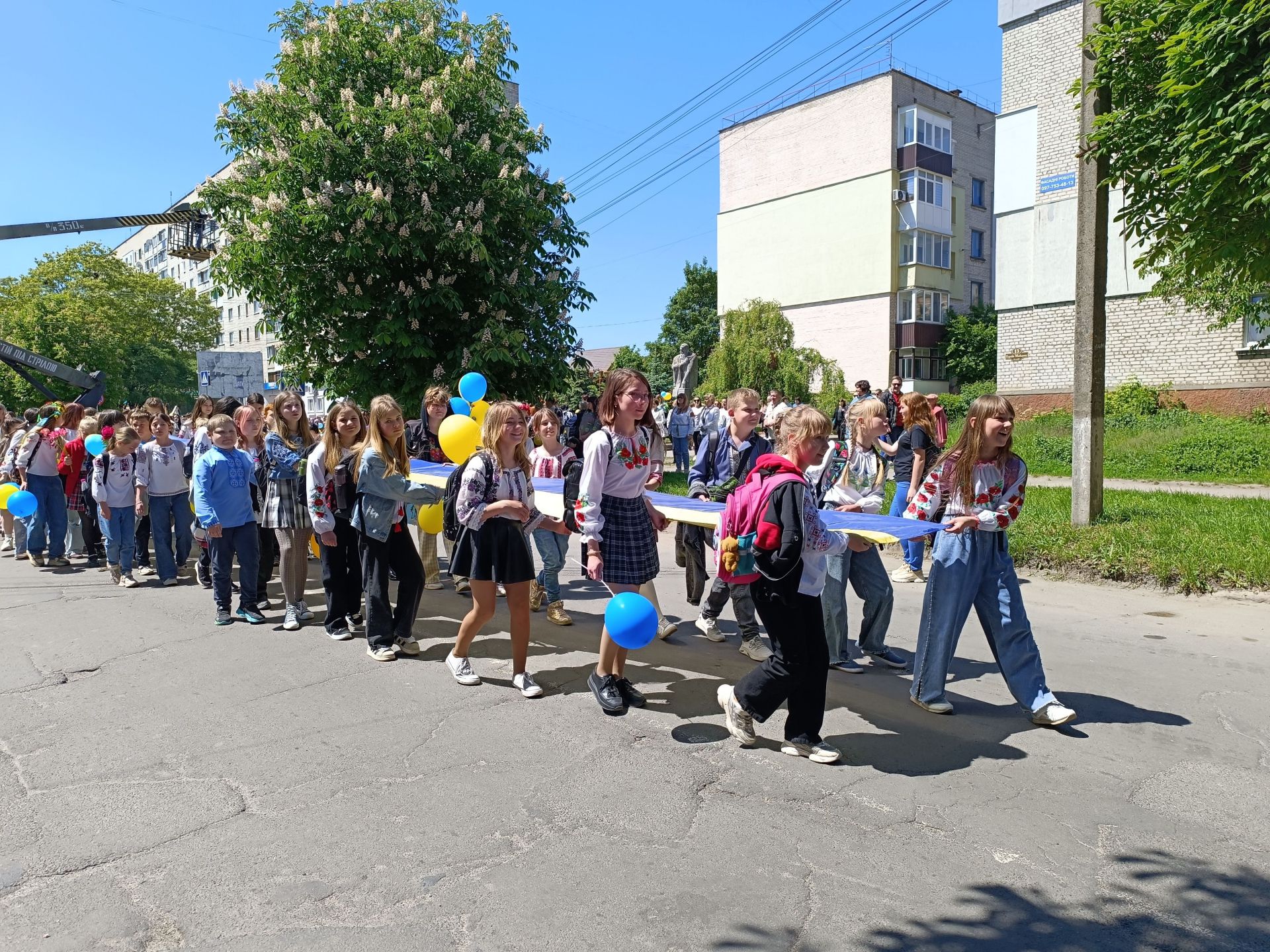 Хода завершилася біля пам’ятника загиблим на війні Героям. Учасники заходу хвилиною мовчання вшанували пам’ять полеглих на полі бою військових і хором співали Гімн України. Після цього школярі поклали квіти до пам’ятного знаку.