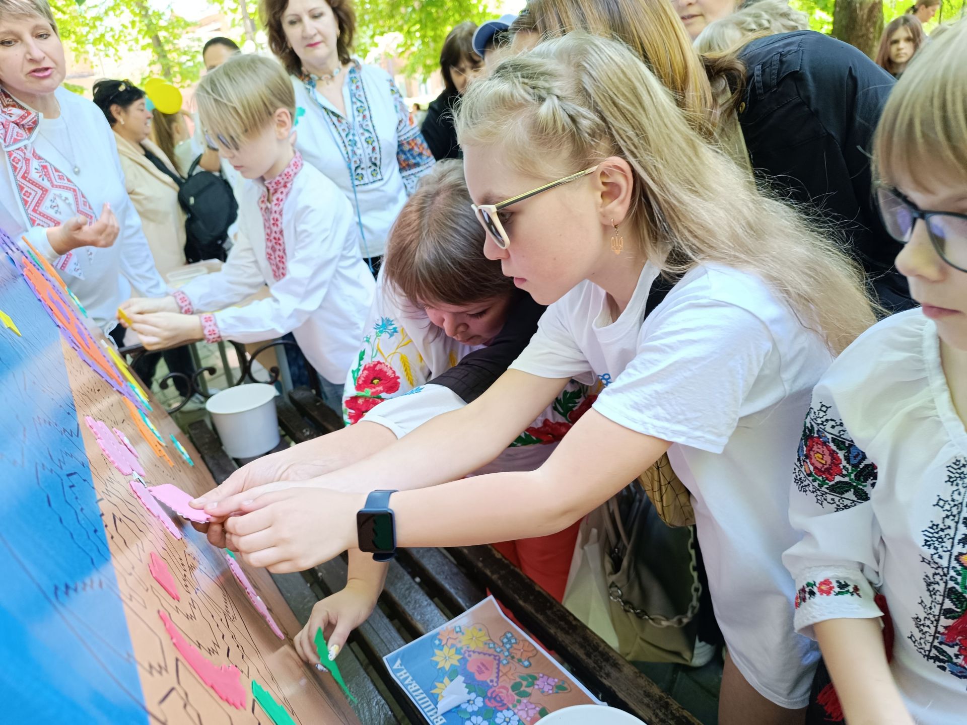 Впродовж свята юні козятинчани не лише розважилися, а й створили картину-пазл «Україна вишивана». Хлопці з дівчатами заповинили величезну карту України різнокольоровими елементами української вишивки. Останній штрих зробила Віка — дівчинка приклеїла зелену пелюстку. Наприкінці заходу гості робили фото на фоні картини-пазлу. «Україна вишивана» зберігатиметься у Центрі дитячої та юнацької творчості.