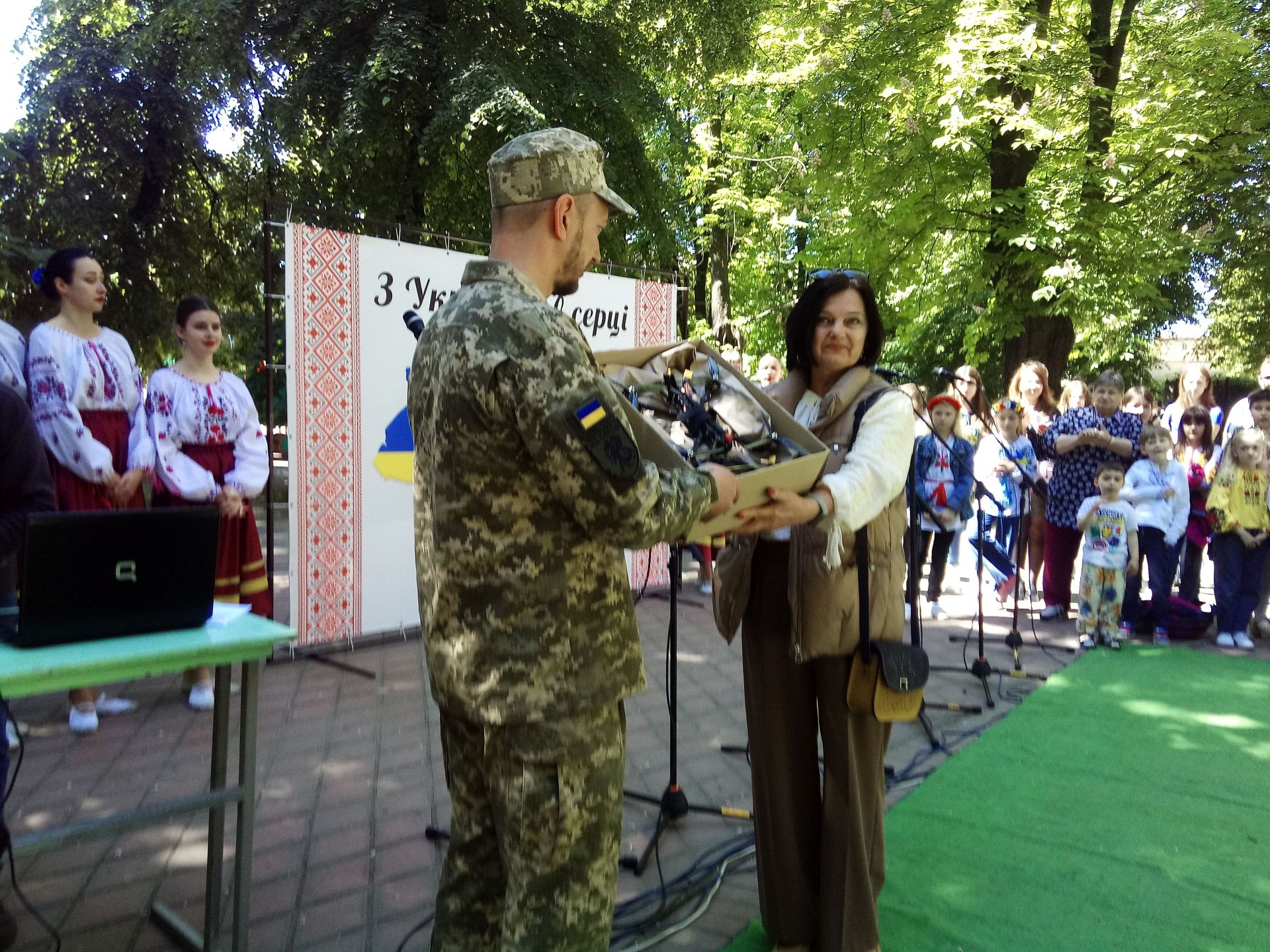 — Ми раді передати цей дрон, щоб він допоміг виконувати завдання і беріг життя наших захисників, тому що вони наші янголи охоронці, — каже Світлана Рибінська.