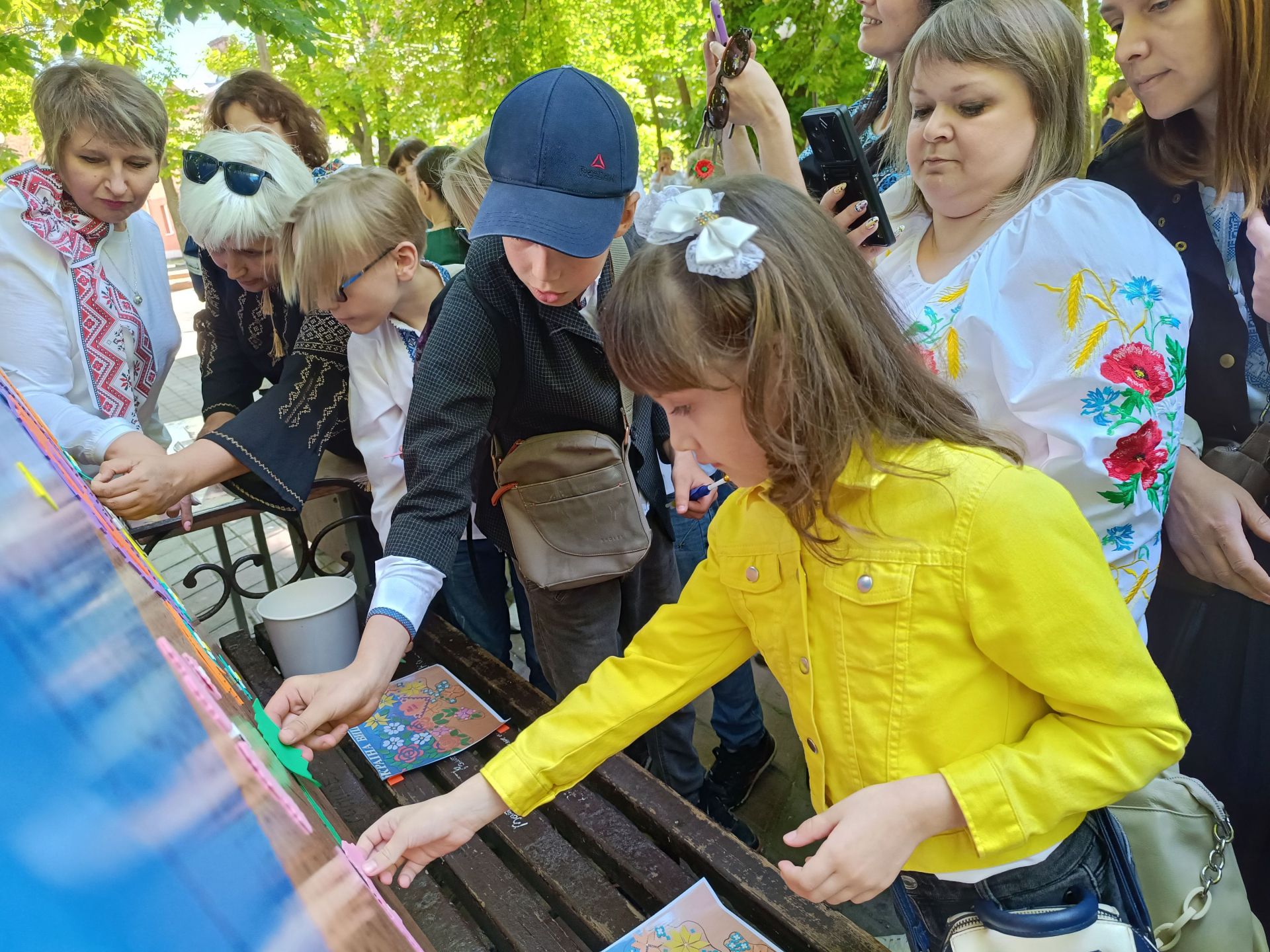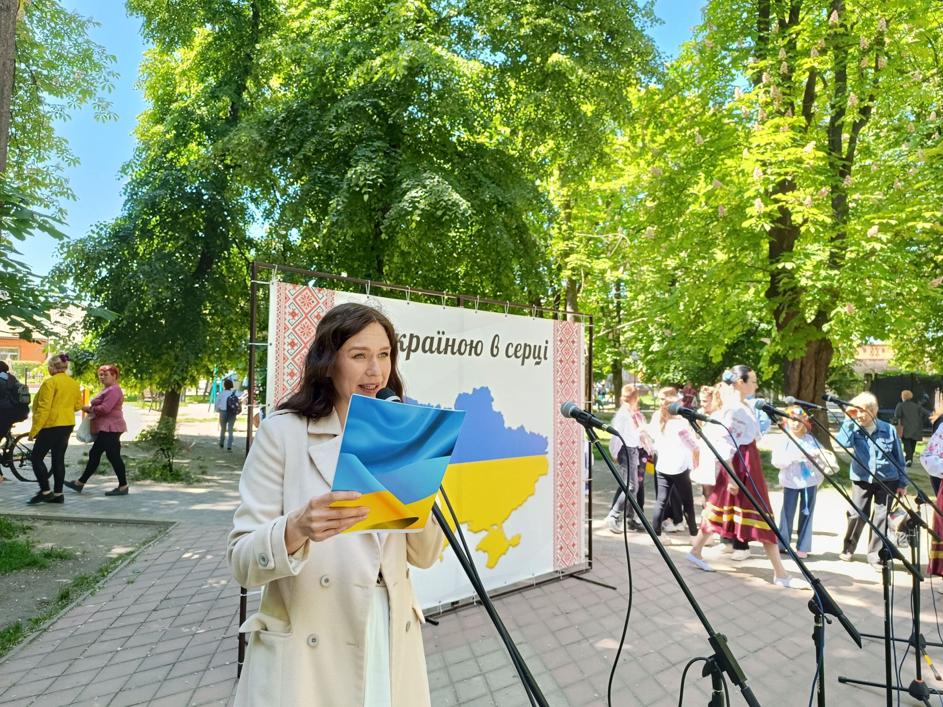 — Сьогодні наш сквер прикрашений такою кількістю вишиванок, що від їхнього різнобарв’я перехоплює подих, — каже Тетяна Фабіцька, ведуча заходу. — Ви всі такі красиві, усміхнені, щасливі і вам так личить сьогоднішнє вбрання. Я переконана, що саме неймовірна краса українського оберегу вишиванки дарує нам стовідсотково позитивний настрій навіть у цей важкий час і безумовно тішить око усім, кого ми зустрічаємо на своєму життєвому шляху.