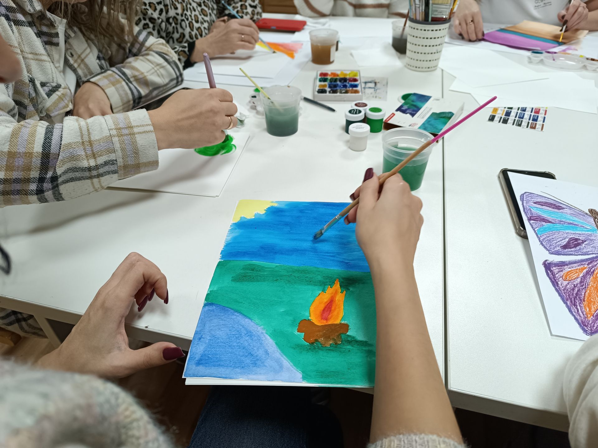 Останній захід в рамках ярмарку — арт-терапія. Зібравшсь у колі, учасниці малюють фарбами та олівцями. Кожна створює свій неповторний малюнок.