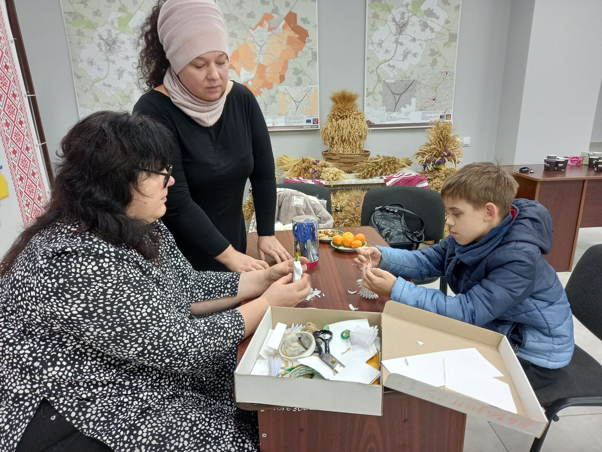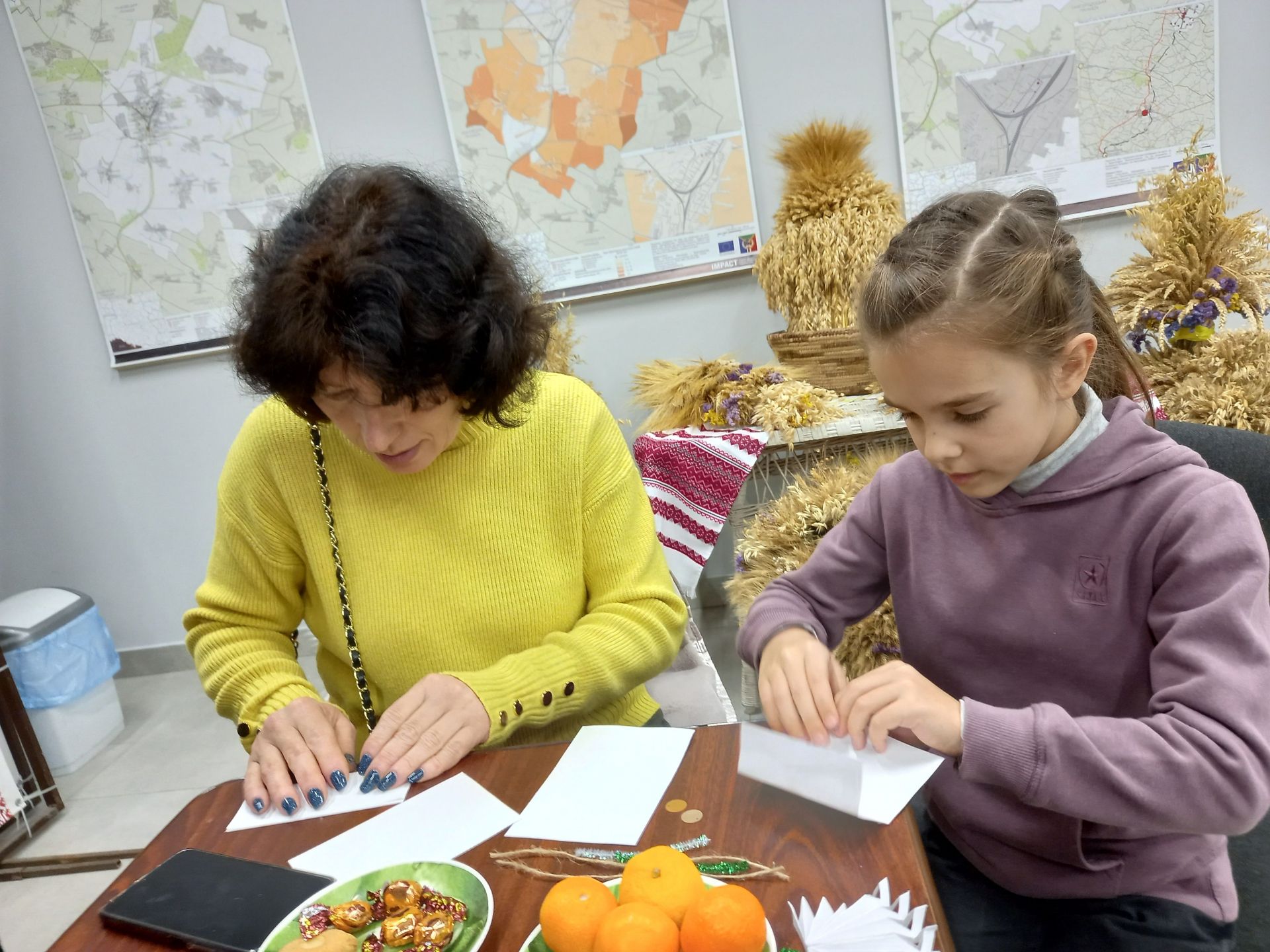 Для гостей виставки, які завітали на відкриття, підготували сюрприз. Ольга та Олена Слободянюк провели для усіх охочих майстер-клас, на якому показали, як створити янгола із елементами витинанки. Разом із майстринями творили юні козятинчани.
