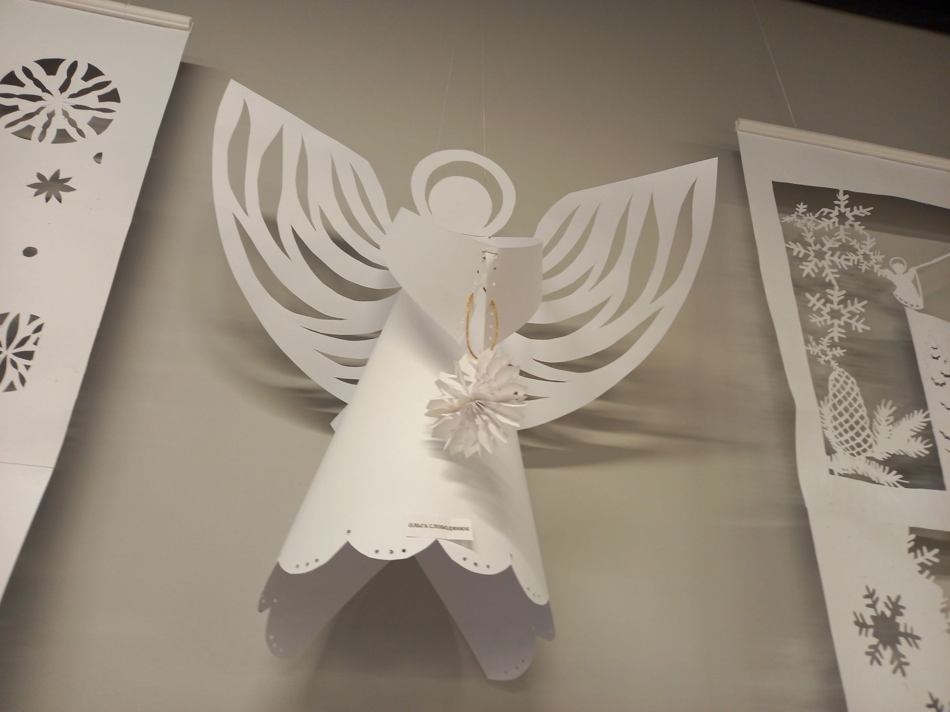Анжела Коренкова — професійна художниця, викладач Дитячої музичної школи. Вона приїхала до нашого міста з Генічеська. На її витинанці Різдвяно-Новорічні мотиви та елементи природи — сніговик, Віфлеємська зірка, дерева із птахами, засніжені будинки.