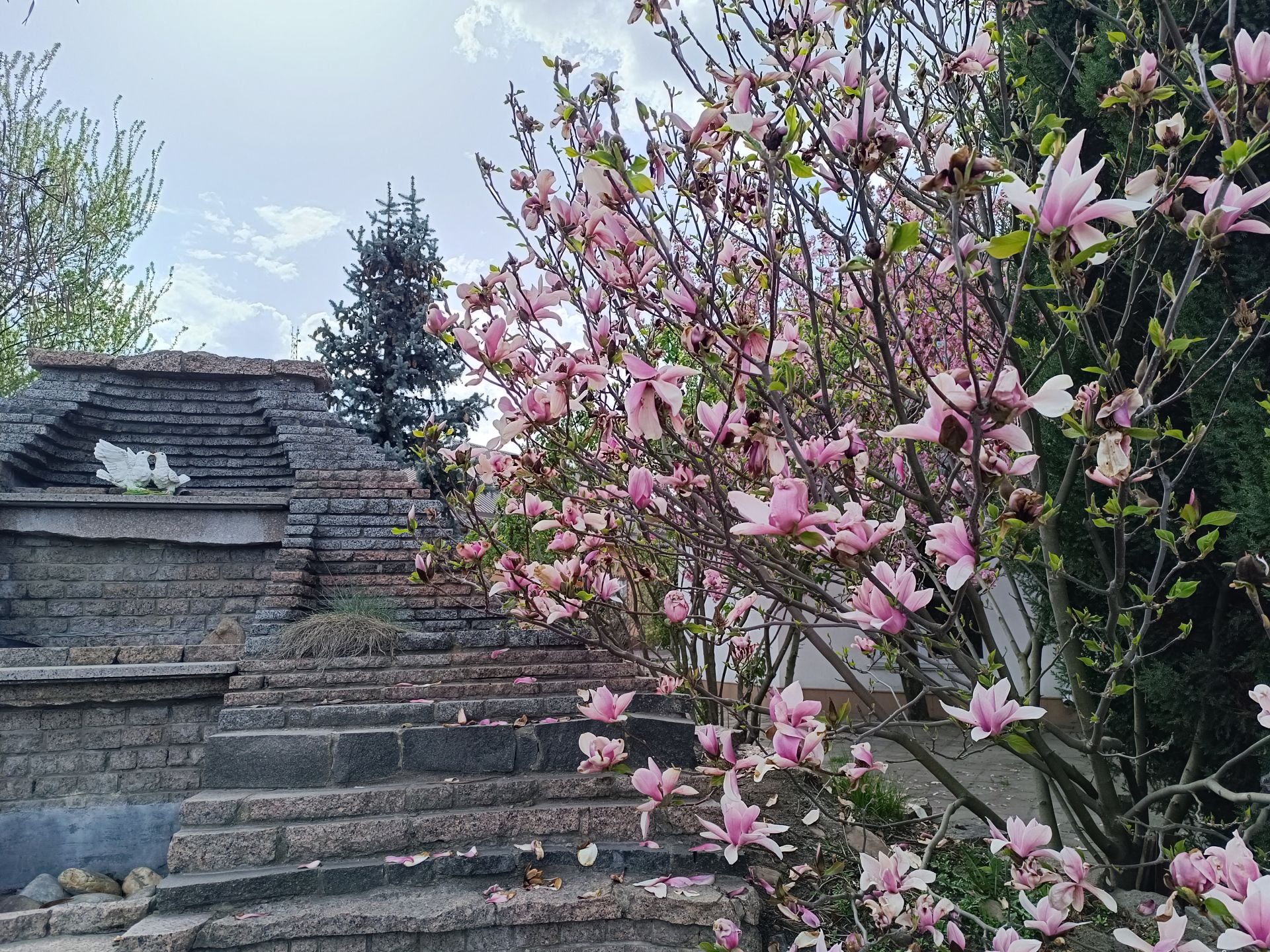 Красуні-магнолії вже потроху відцвітають, а цвітіння сакури, чи як її ще називають, японської вишні зараз у самому розпалі. Торік обидві рослини квітнули приблизно у такий же період.