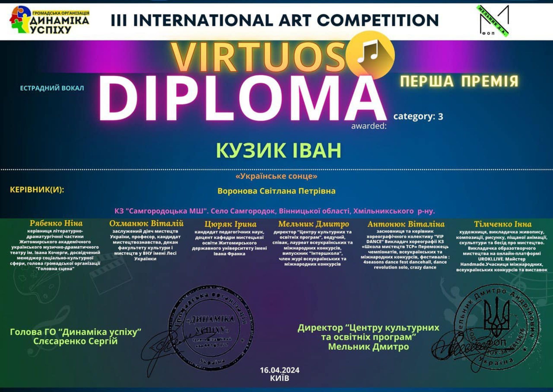 Самгородчани стали переможцями III Міжнародного конкурсу мистецтв «VIRTUOS