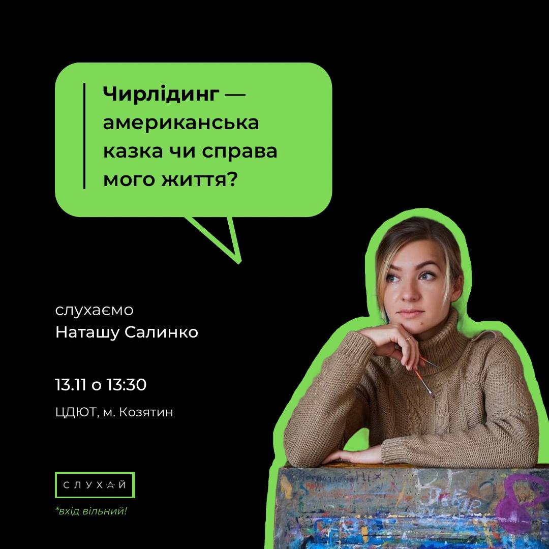 Наташа Салинко «Чирлідинг» проведе розповідь на тему « Американська казка чи справа мого життя?» (13.30)