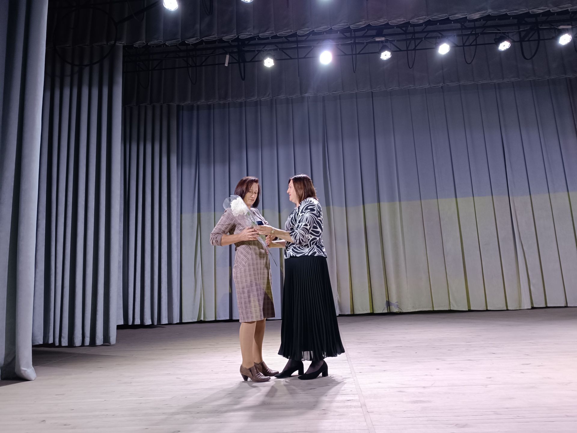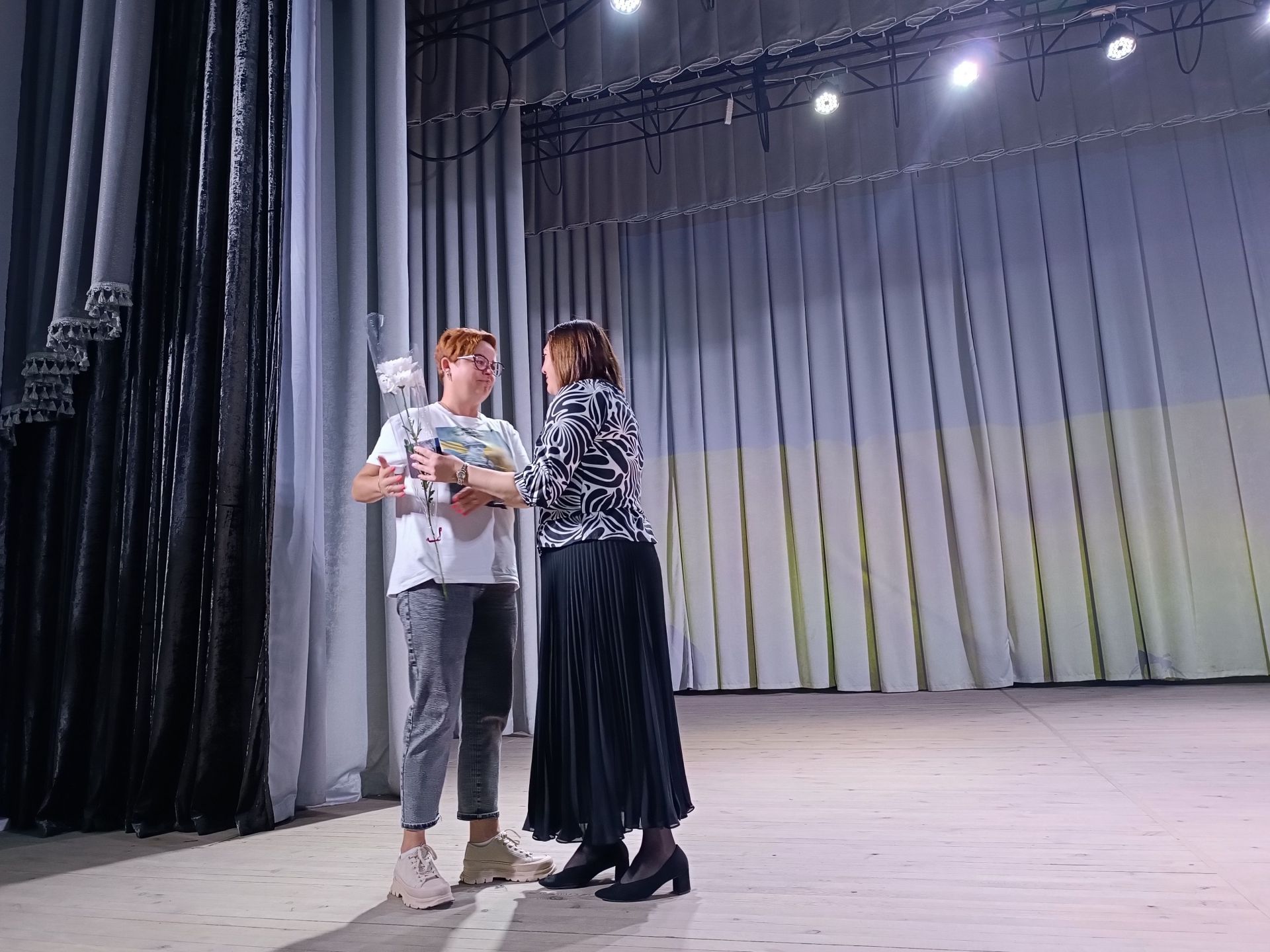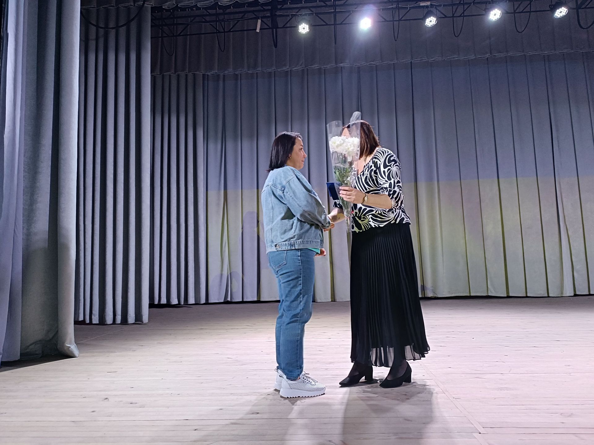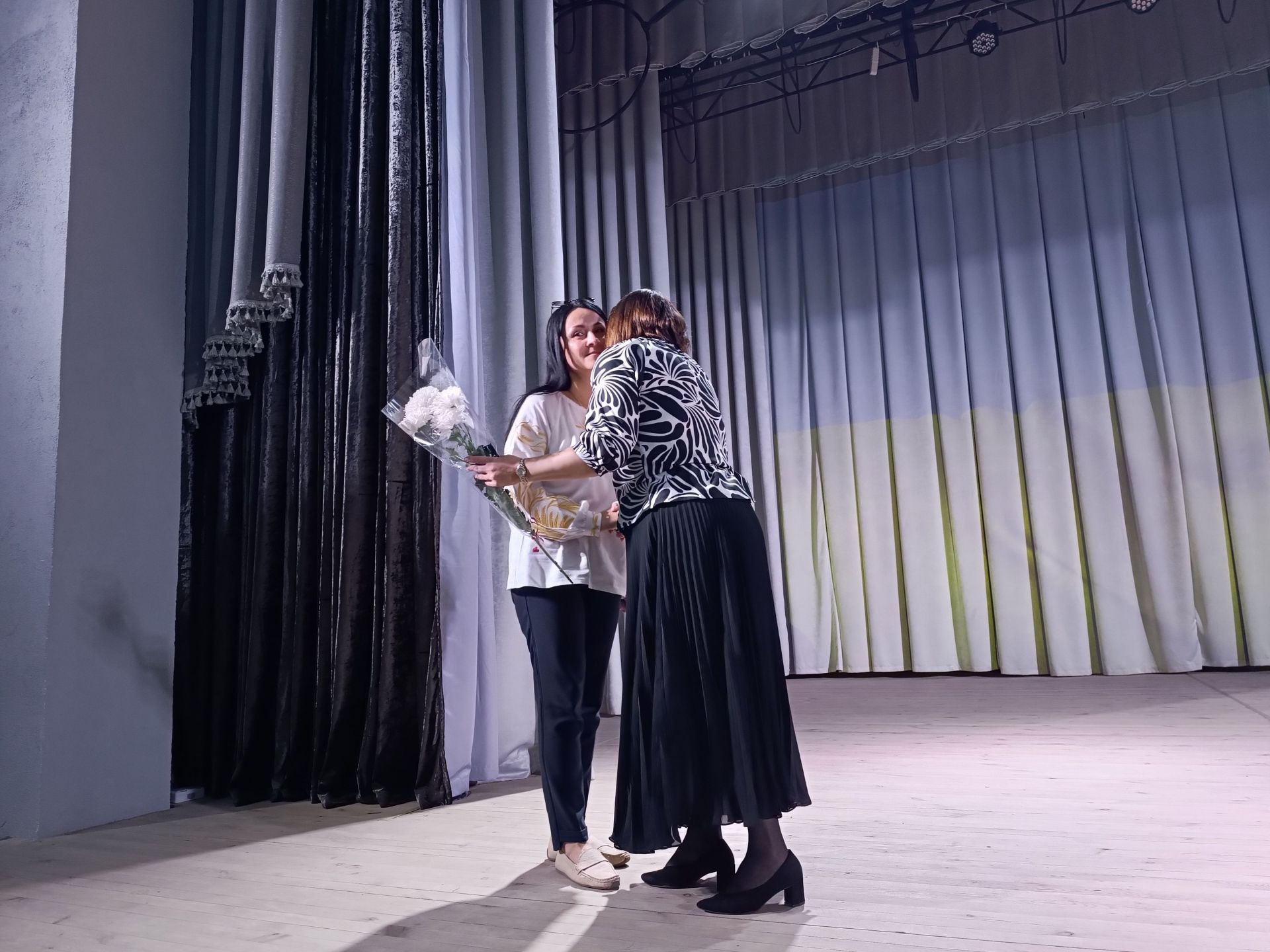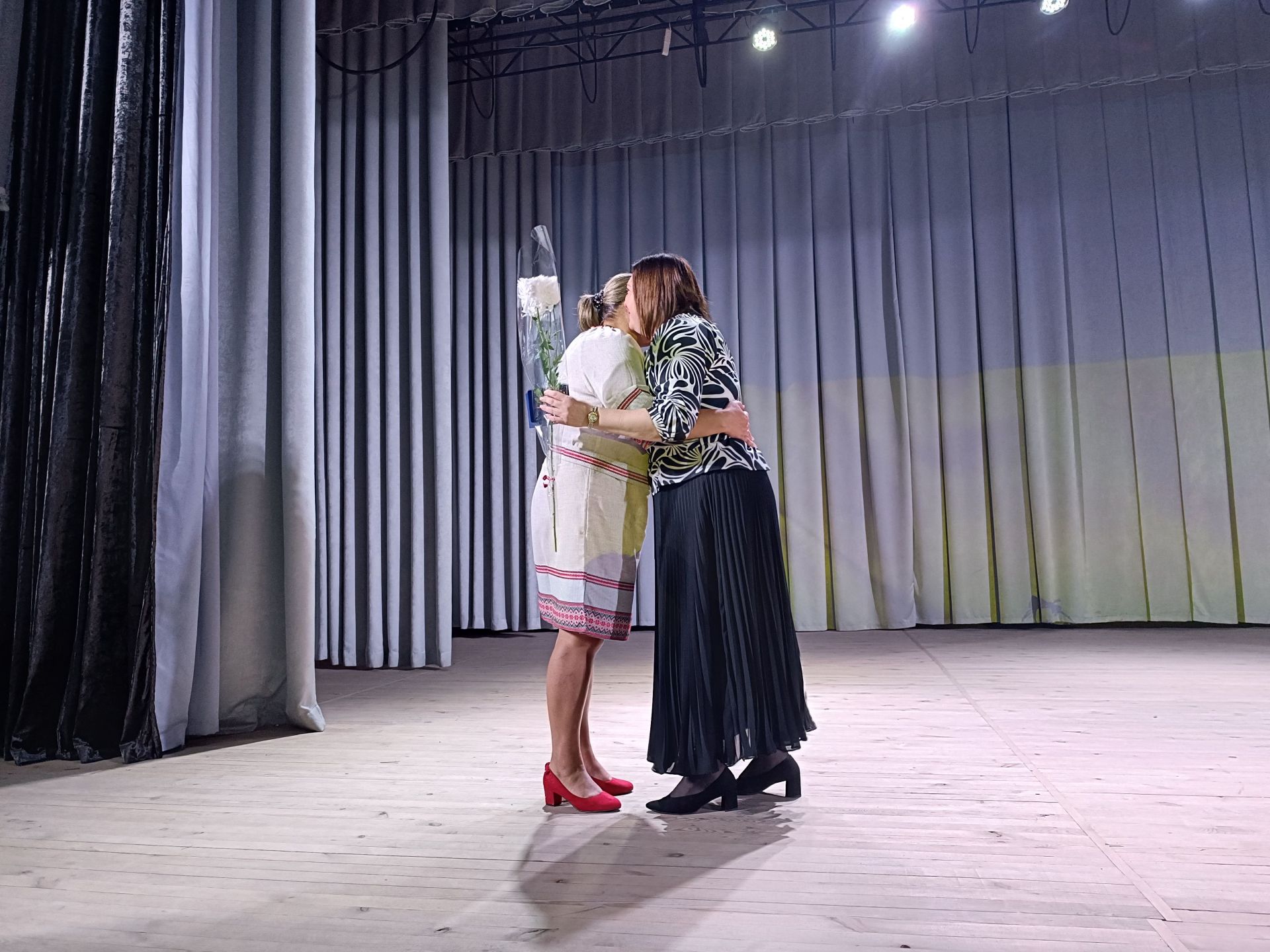 Глядачі вийшли з будинку культури і всі разом вирушили до пам’ятного знаку загиблим Героям. Вони поклали квіти до пам’ятника полеглим на війні і до дошки пам’яті.
