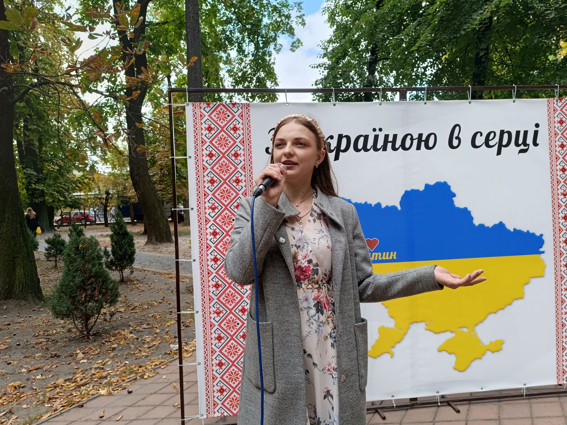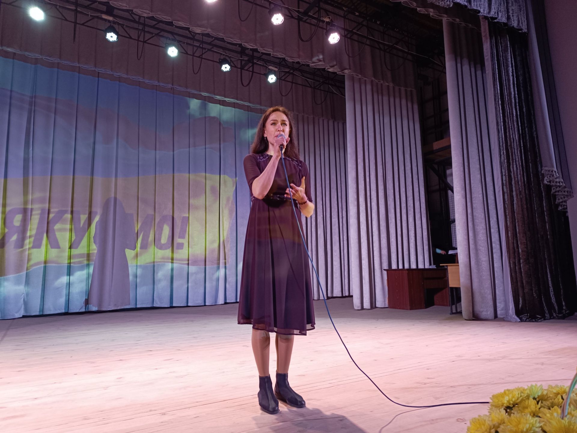 На лаштунках почали транслювати зворушливе відео, на якому козятинчани дякують захисникам. По тому Тетяна Фабіцька заспівала «Коли закінчиться війна».