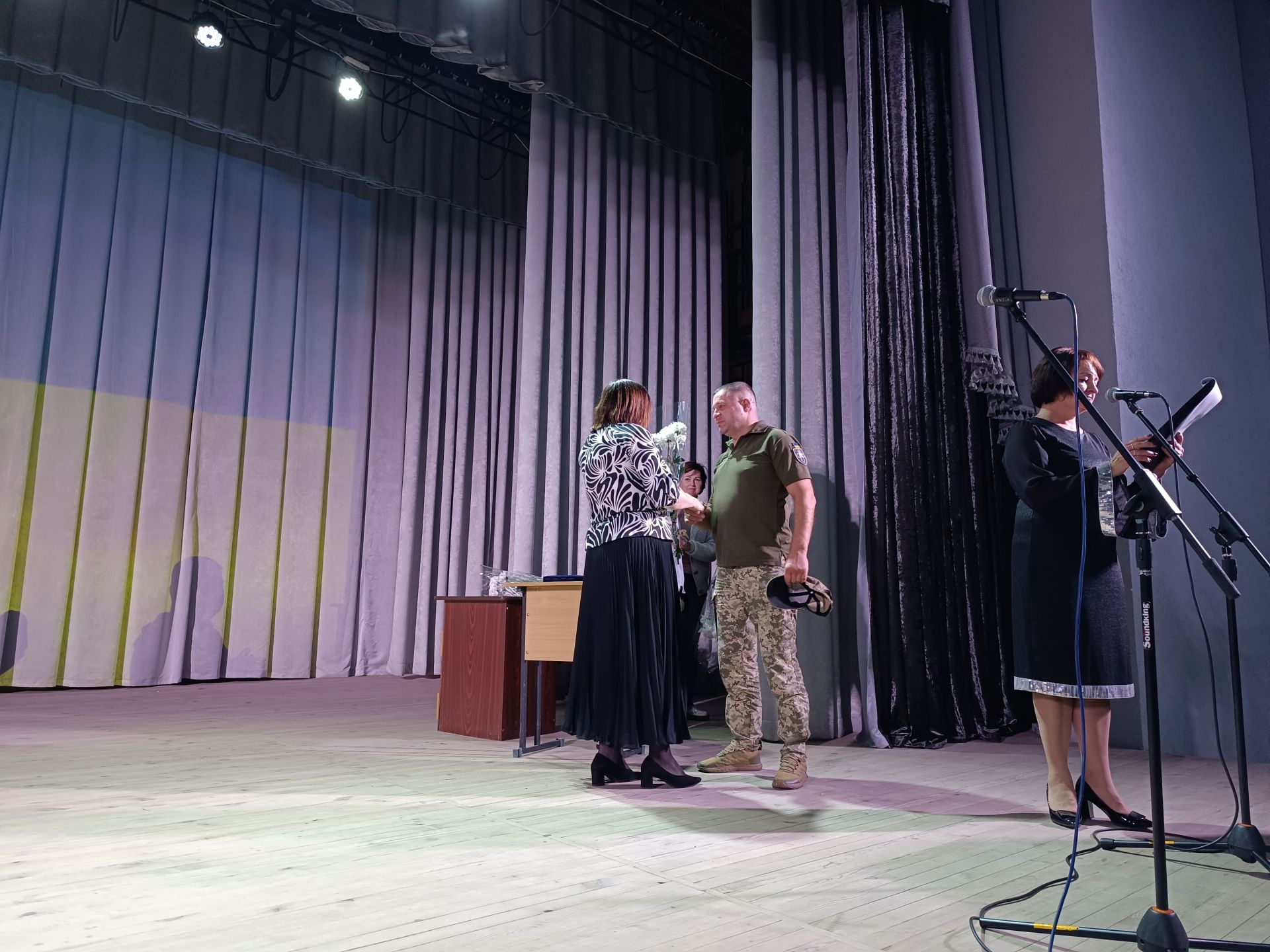 — Лише з початком повномасштабного вторгнення ми переоцінили і зрозуміли дуже прості і звичні речі, — продовжила ведуча. — Війна навчила нас ще більше цінувати рідних і близьких. Війна навчила нас пишатися тим, що ми українці. Війна навчила нас щодня прокидатися і засинати з переконаннями, що минув ще один день, який наблизить нас до Перемоги. Війна навчила нас молитися за тих, хто ніч не спить, щоб ми заснули. За тих, хто в котлі війни кипить, щоб ми тут свисту куль не чули. За мужніх, щирих, справжніх, за наших захисників. За нашу неньку Україну!