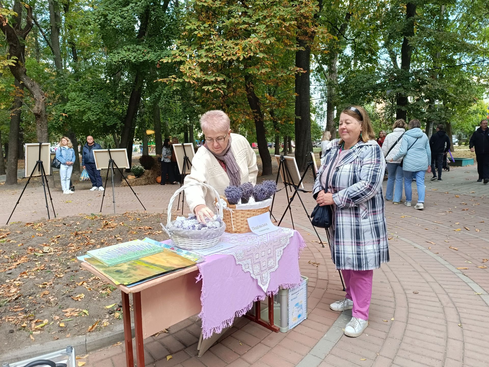 У центрі скверу поставили експозицію картин, які створили місцеві художники на вернісажі «Подільська лаванда». У гостей ярмарку також була змога їх придбати. Поруч оформили фотозону з тюків сіна, де козятинчани робили світлини.