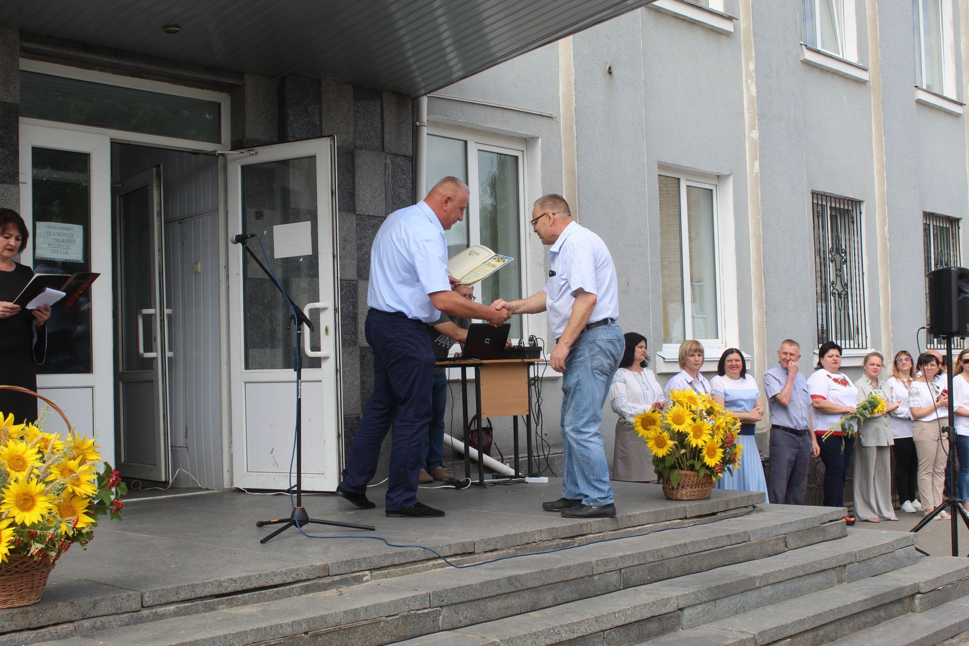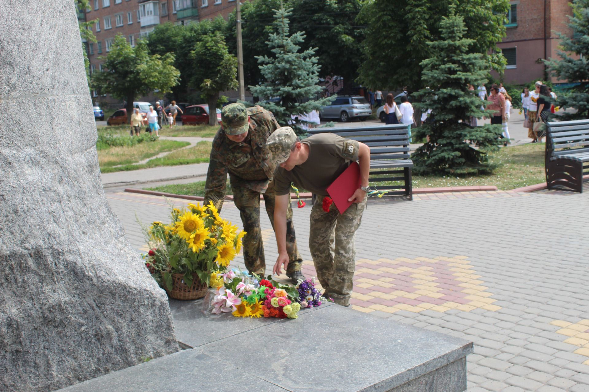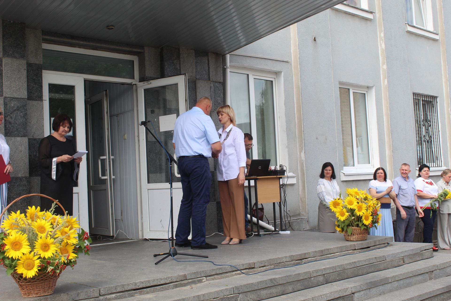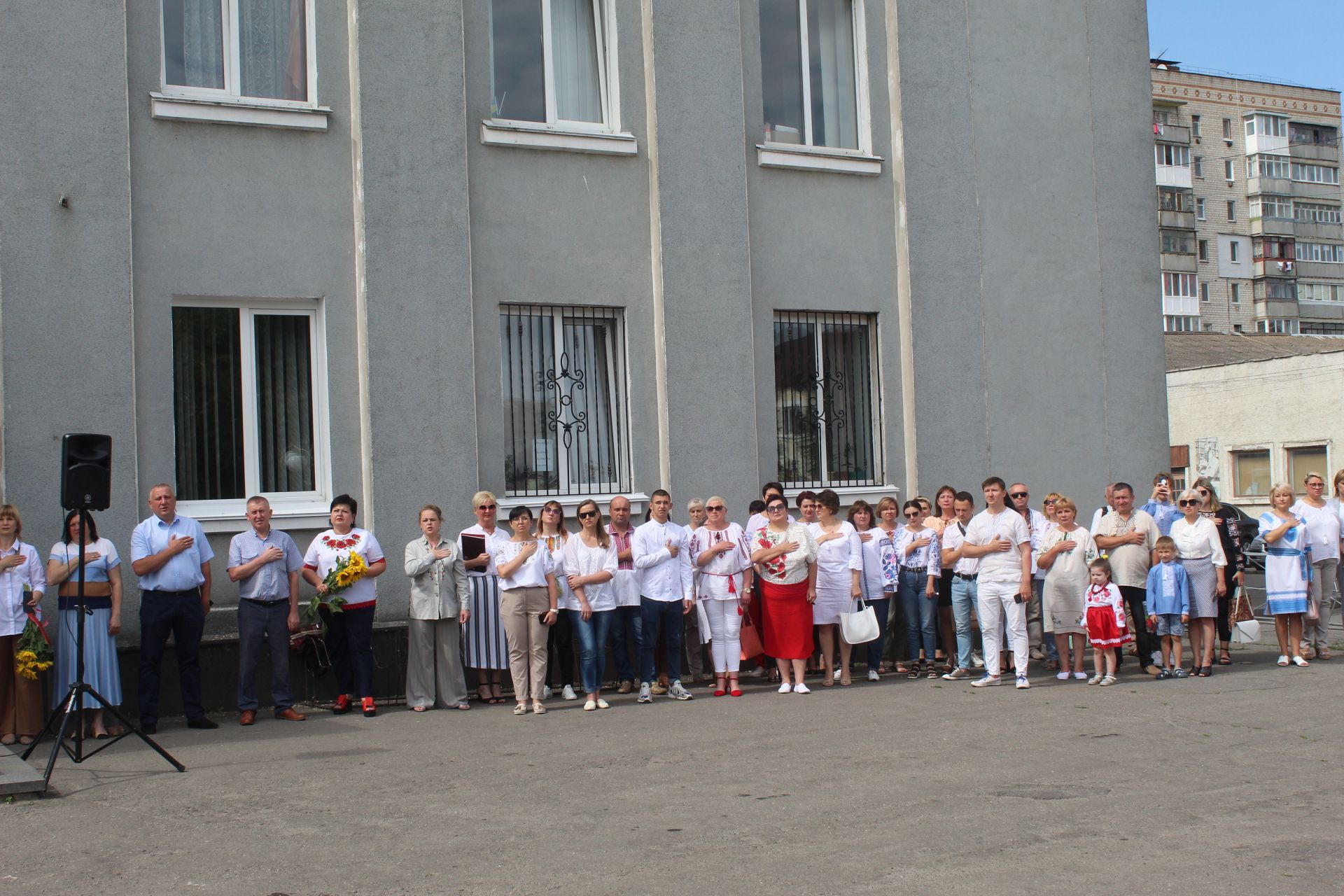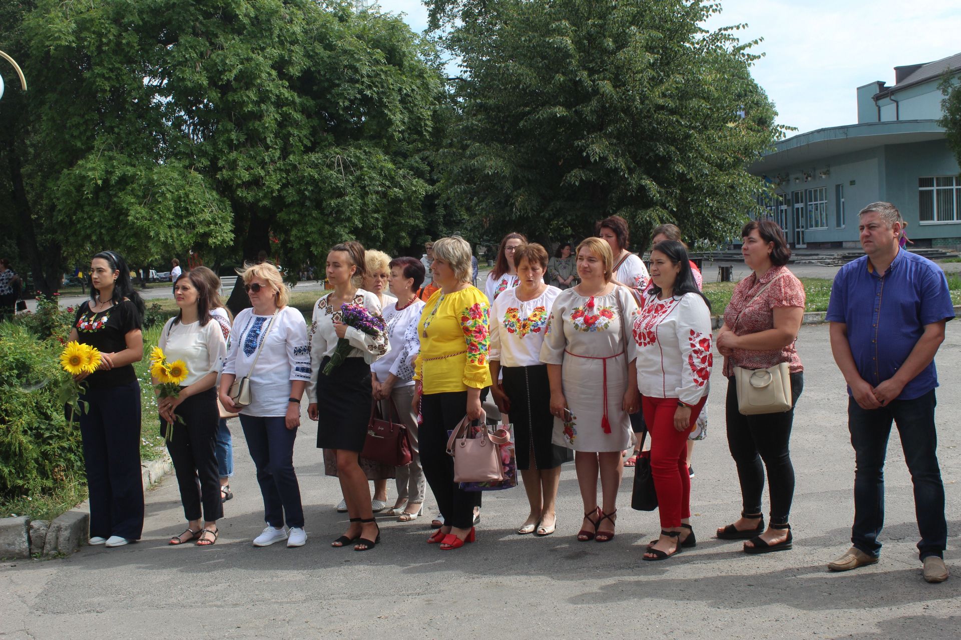 Міський голова Тетяна Єрмолаєва нагородила відзнаками військовослужбовців, які проявили себе з агресором на полі бою. Керівник Хмільницького району Юрій Слапчук виразив подяку представникам Козятинської громади. Ними стали директор залізничного училища Андрій Стецюк та керуюча справами виконкому Аліна Тимощук. Не обійшлося без пісні. Музичне вітання прозвучало від Тетяни Фабіцької. Після основної частини святкового заходу всі пішли на середину площі, де люди у вишиванках створили живий герб України.