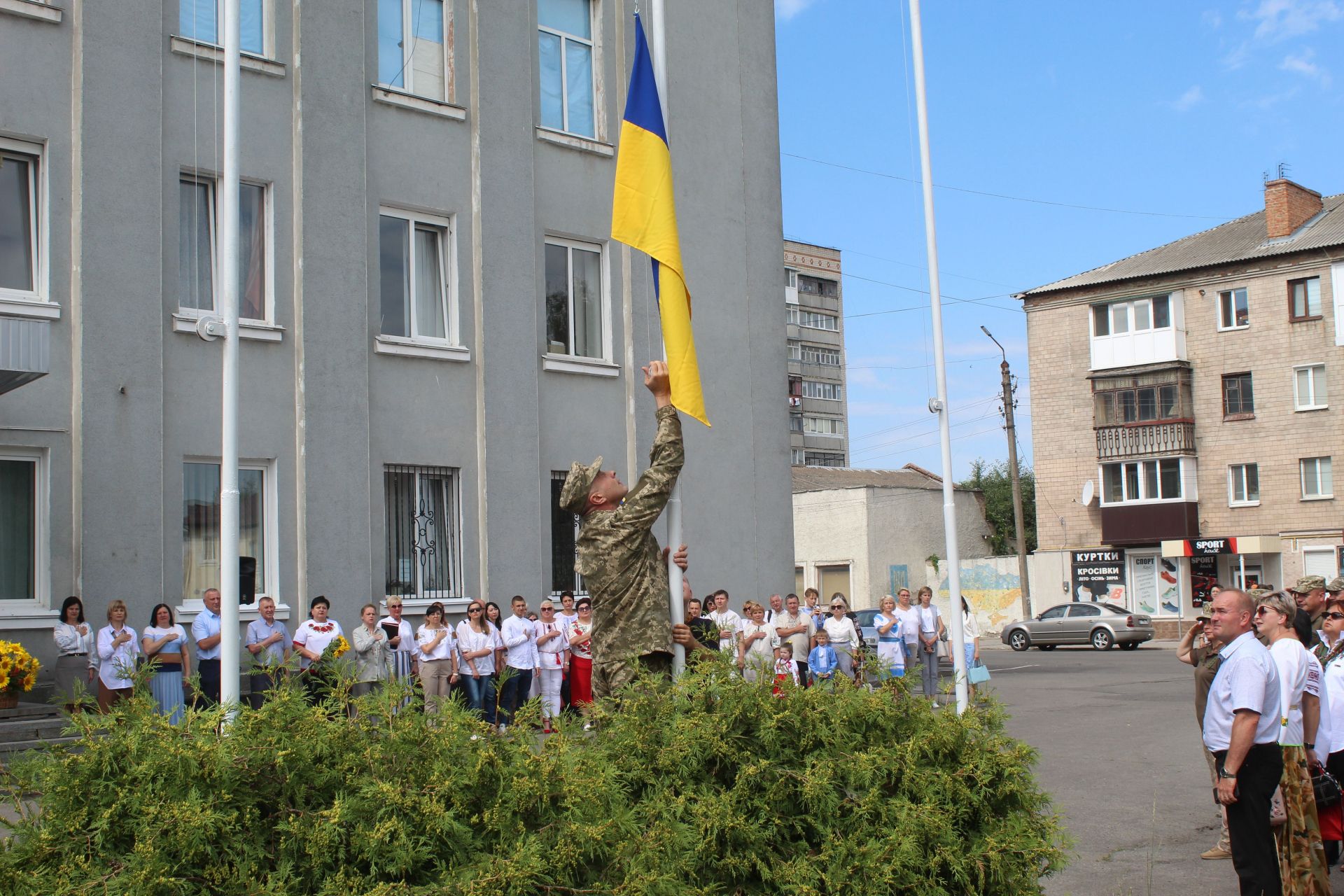 Відкрила святковий захід заступник директора міського будинку культури Лариса Ромасько підняттям державного прапора. Довірили підійти до прапорної щогли бійця ЗСУ Ігоря та молодшого брата Героя України Богдана Іщука Захара.