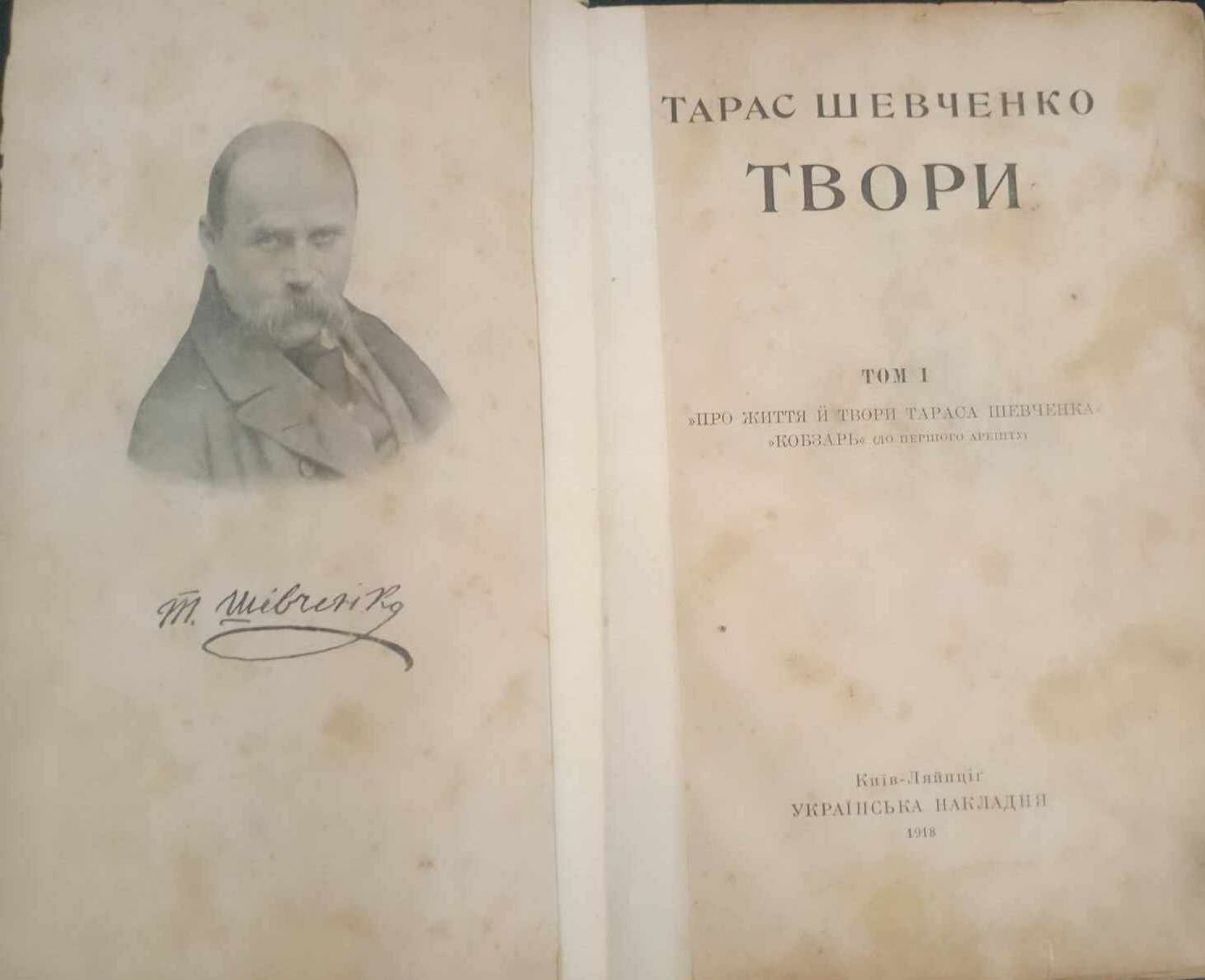 - Це I-й том «Творів Тараса Шевченка», де оповідалося про життя видатного українського художника та поета. Опубліковано також в ній «Кобзар» до першого арешту, українською мовою.