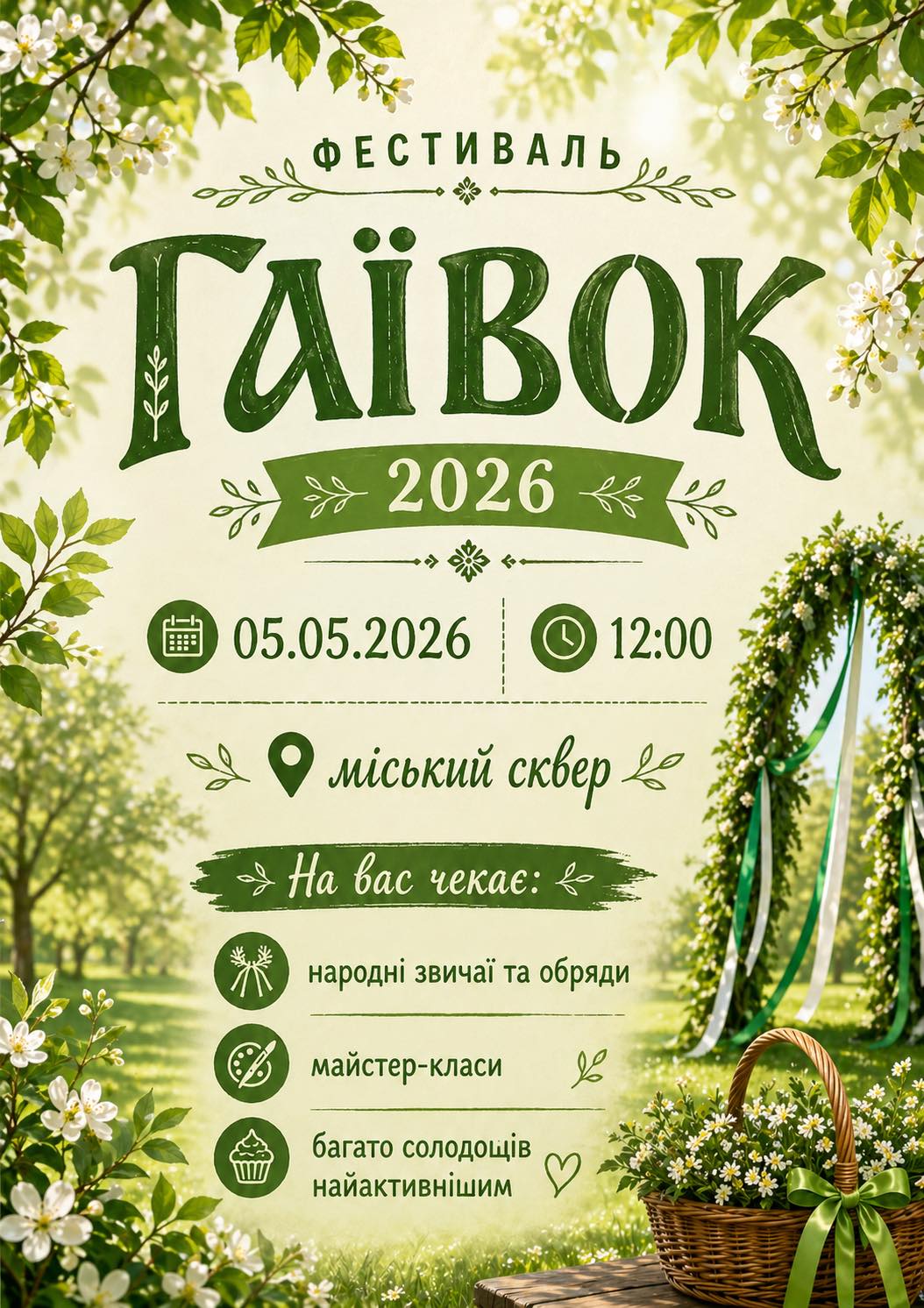 Гаївки — це давні українські весняні пісні, які символізують пробудження природи, радість і новий початок. Тож фестиваль стане чудовою нагодою відчути атмосферу українських традицій, провести час із родиною та зарядитися весняним настроєм