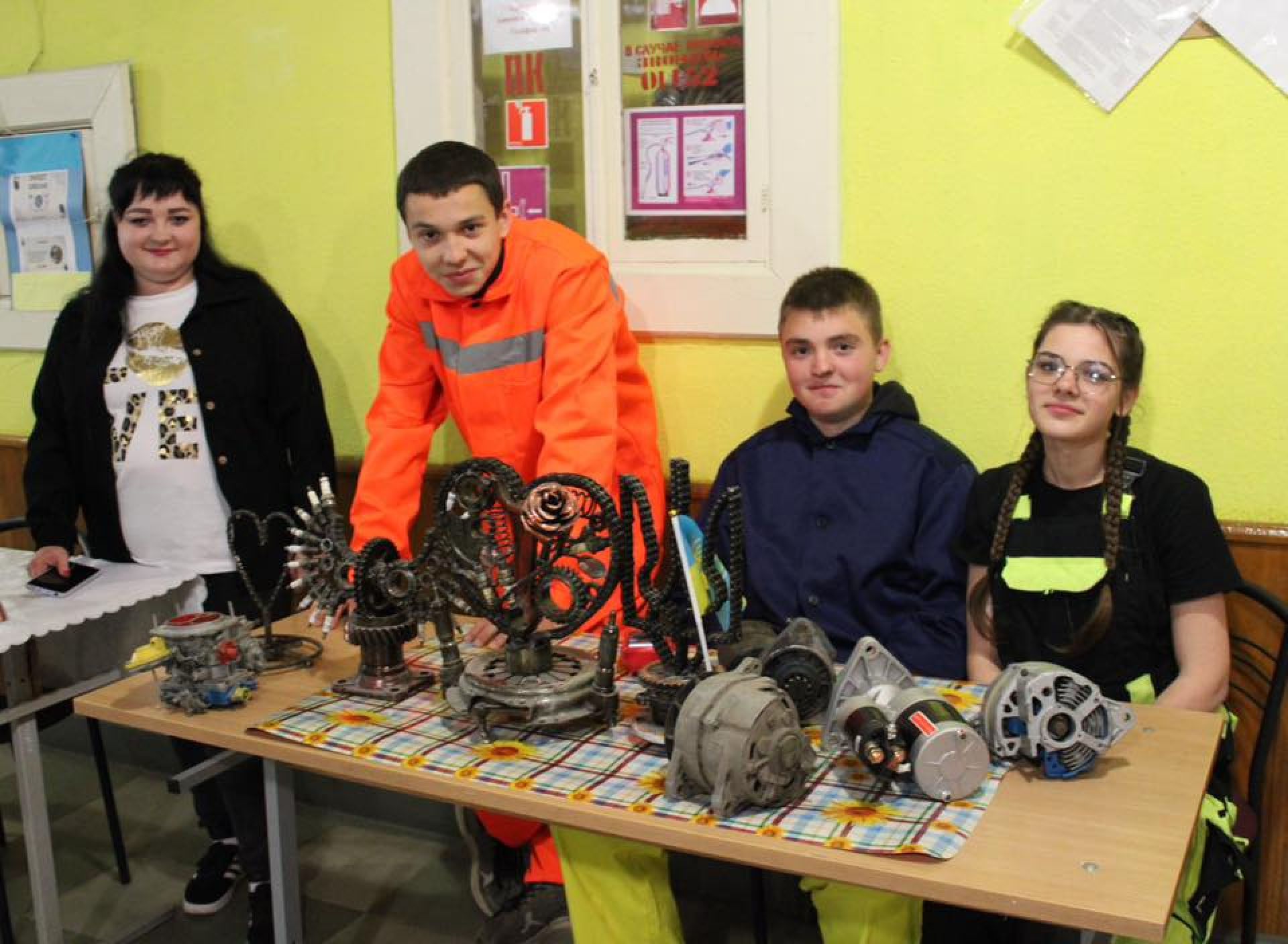 Слюсарі з ремонту колісних транспортних засобів продемонстрували виставку робіт гуртка професійного спрямування, де охочі могли побачити цікаві учнівські роботи з деталей машини.