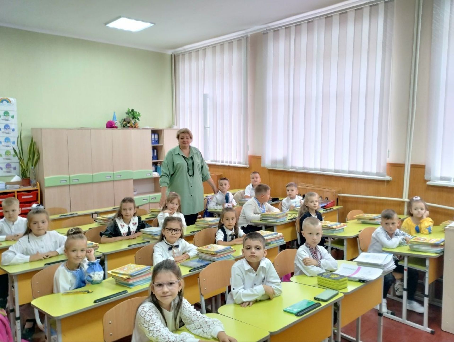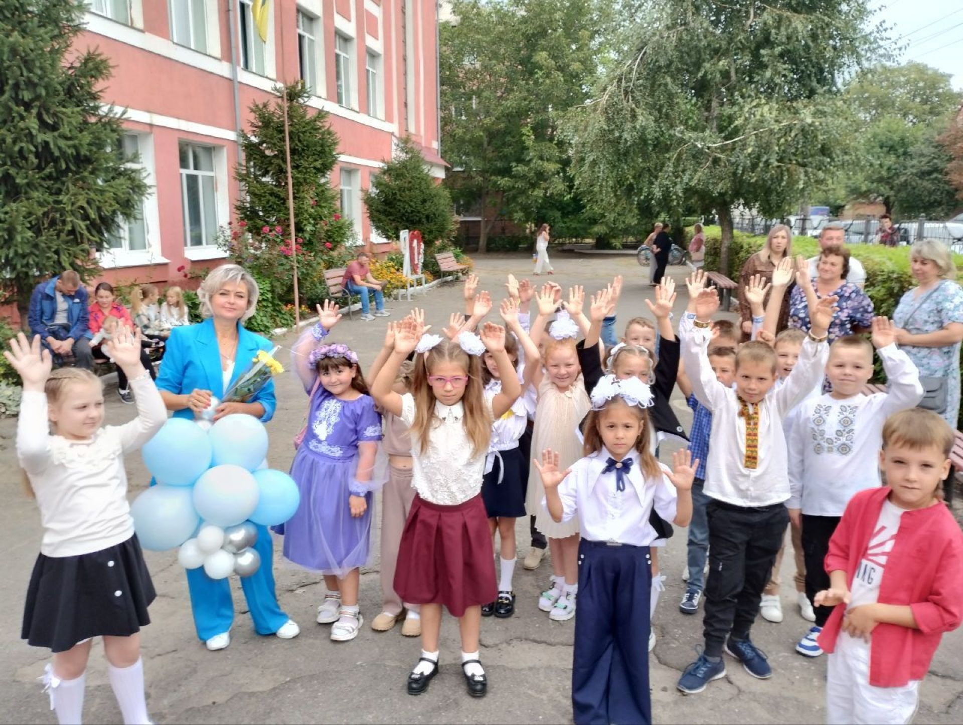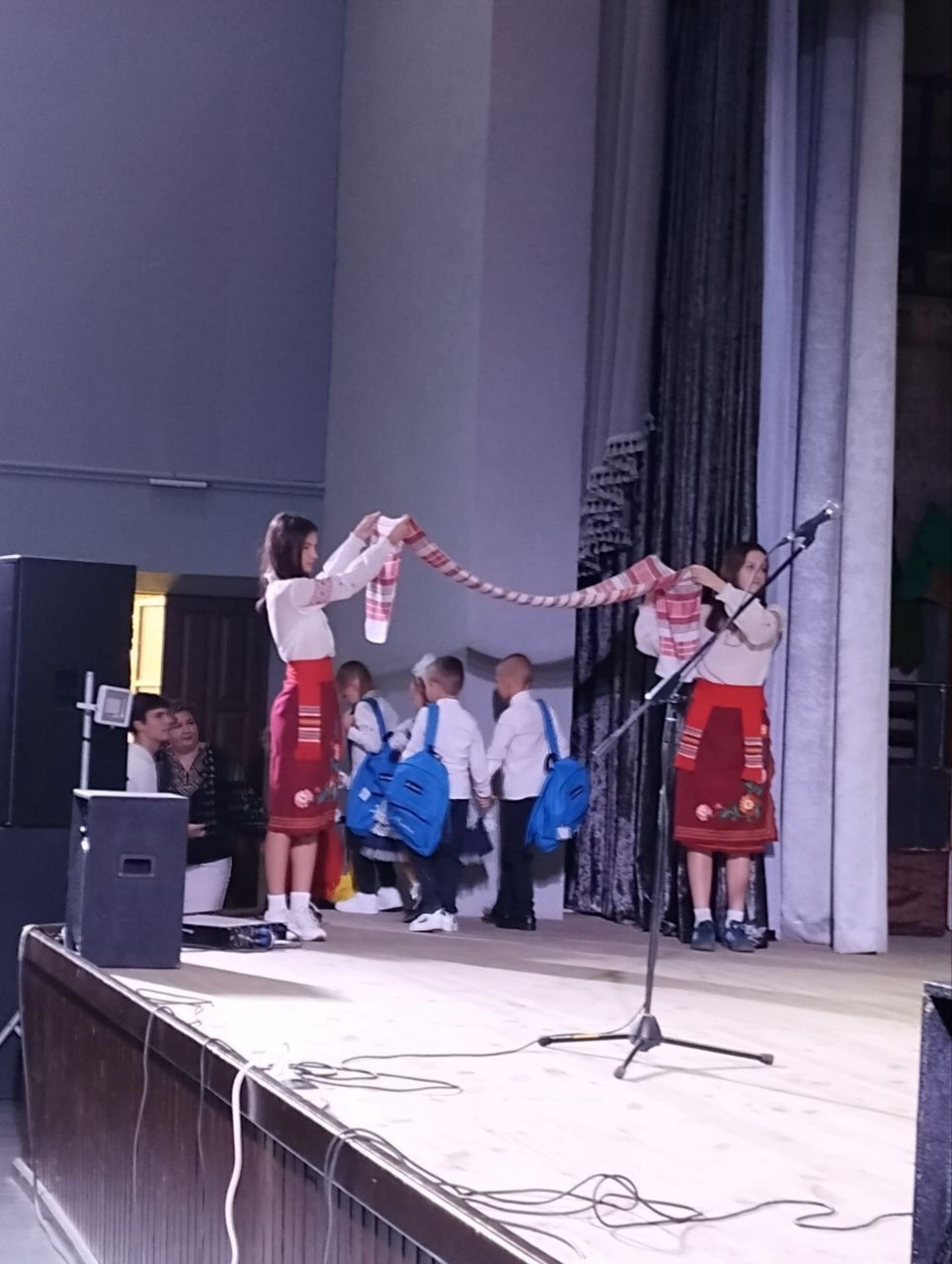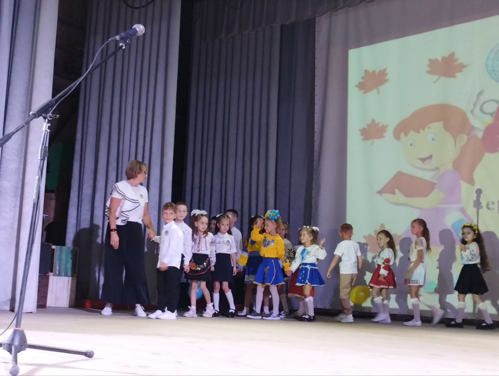 За доброю традицією учнів перших класів привітали зі святом ведучі, директор школи Оксана Кухар. та побажали мирного та щасливого майбутнього. Також діткам подарували шкільні портфелі у патріотичних кольорах.