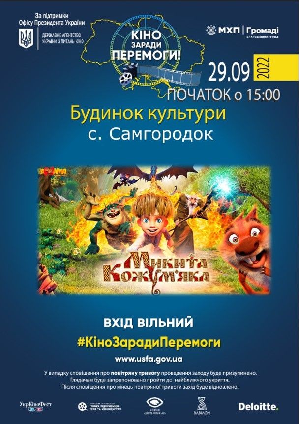 Зокрема на сторінці Самгородоцький будинок культури запрошують на анімаційний фільм «Микита Кожум'яка». Показ у четвер 29 вересня о 15.00. годині. Вхід вільний