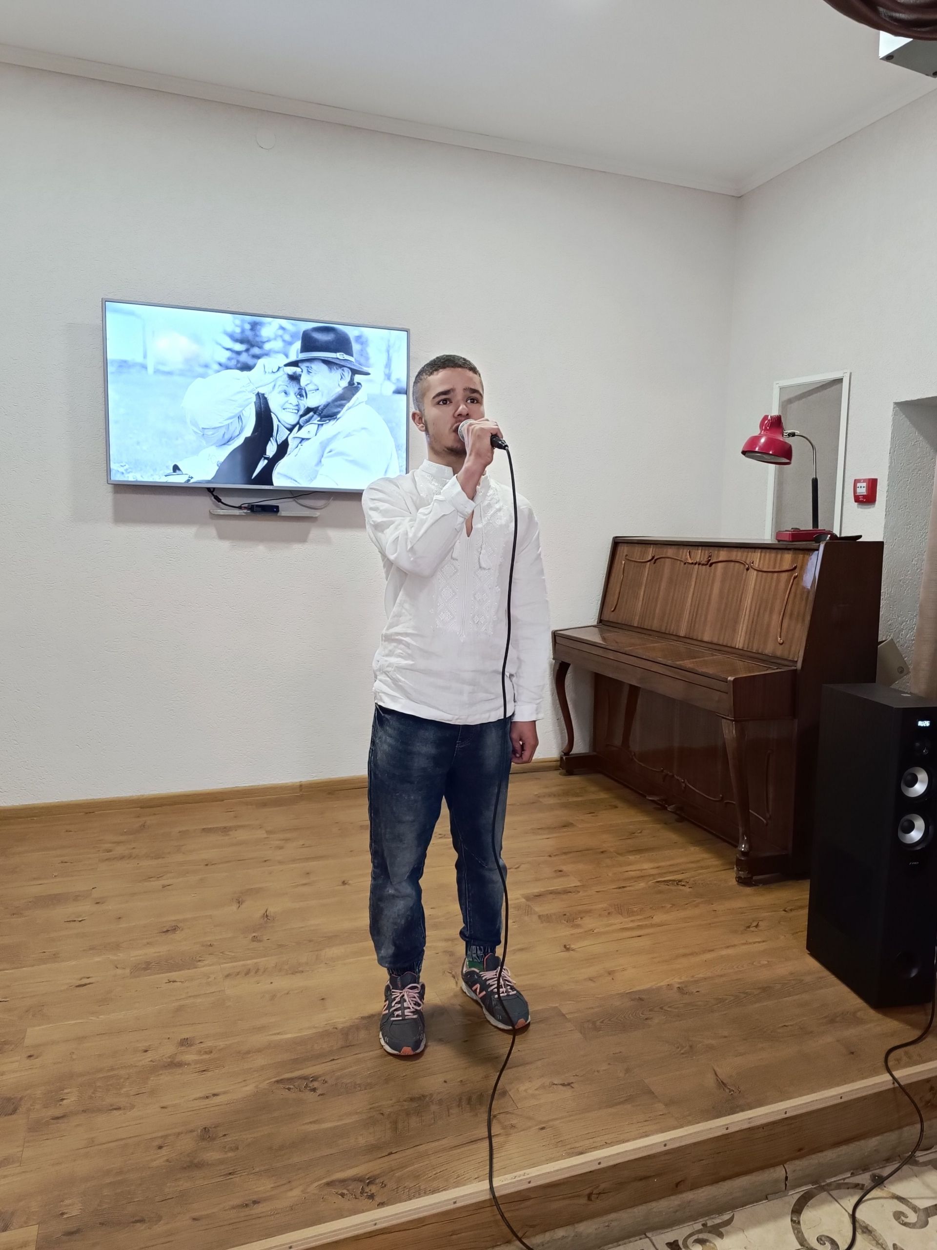 Учні училища підготували коротку концерту програму. Її відкрив першокурсник Карім Шахін. Він майбутній кухар — юнак навчається за спеціальністю «кухар-кондитер-офіціант». Карім виконав найвідоміший хіт української естради — пісню «Червона рута». Послухати юнака зійшлися чи не всі працівники терцентру. А Лідія Борсук підспівувала усю пісню.