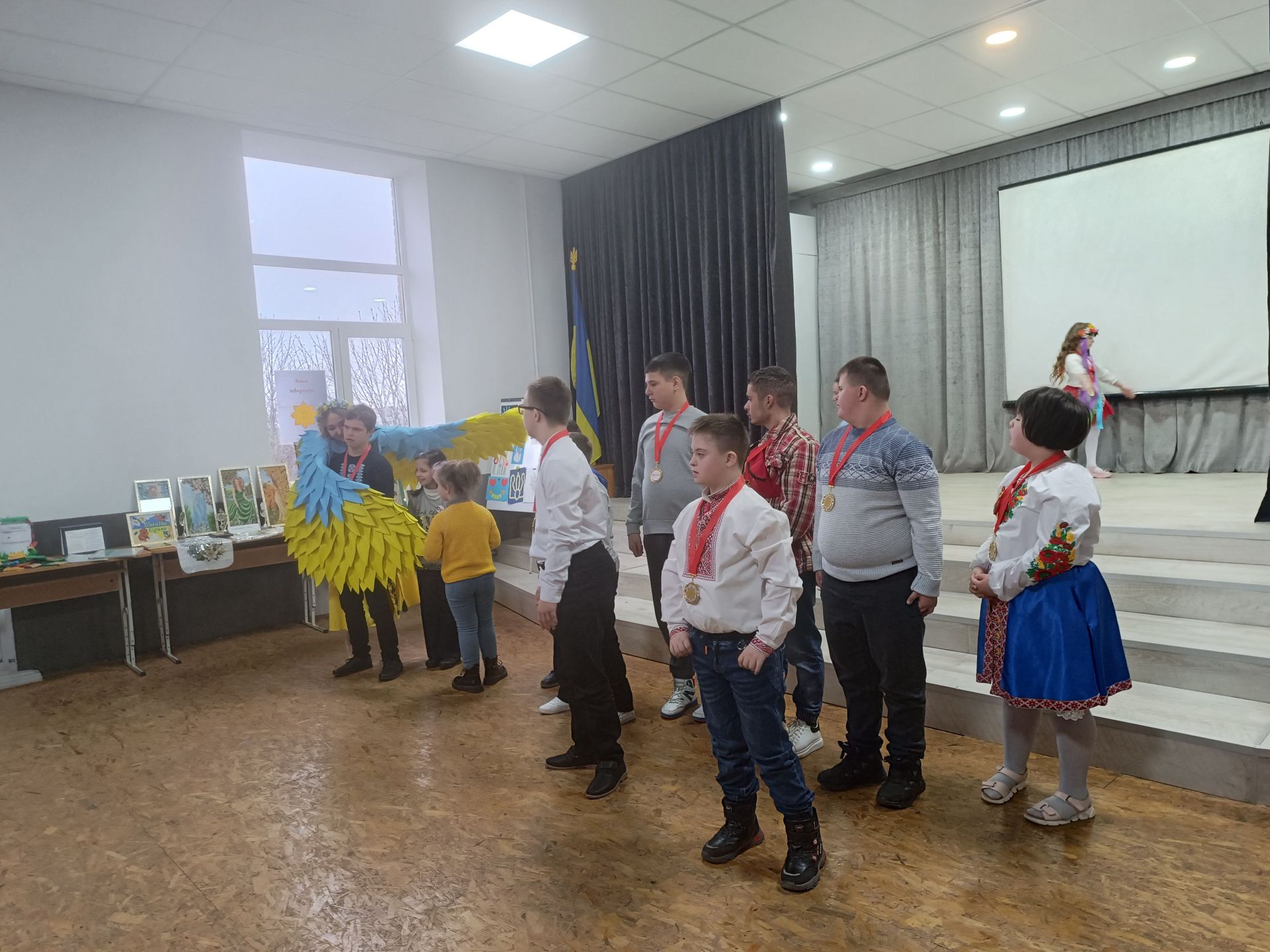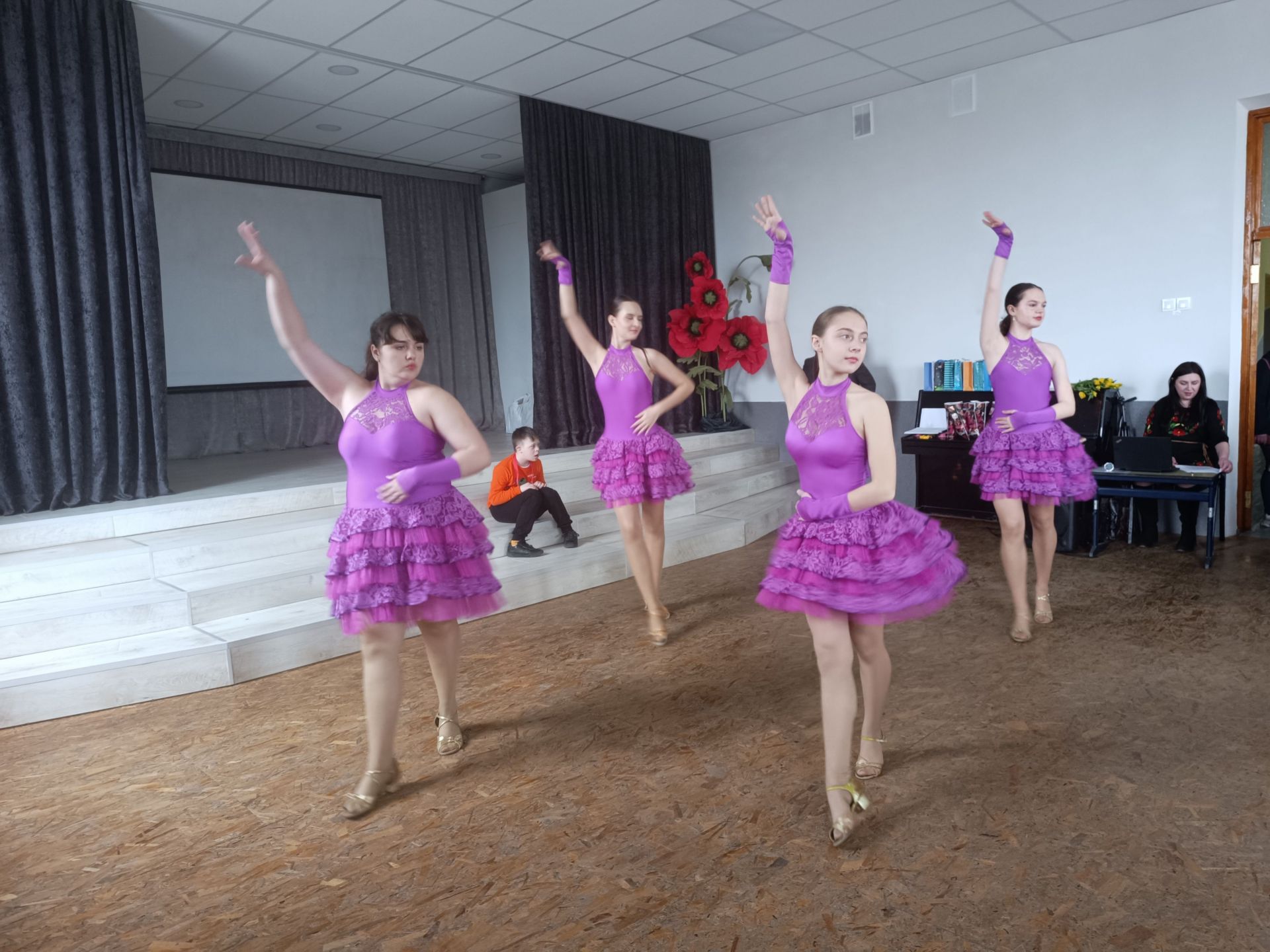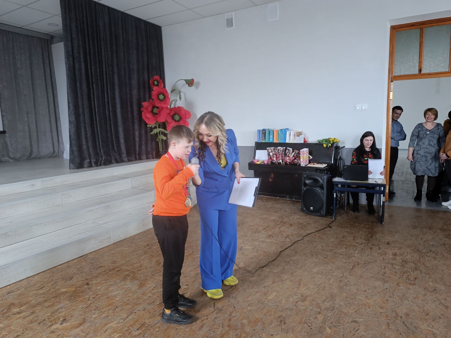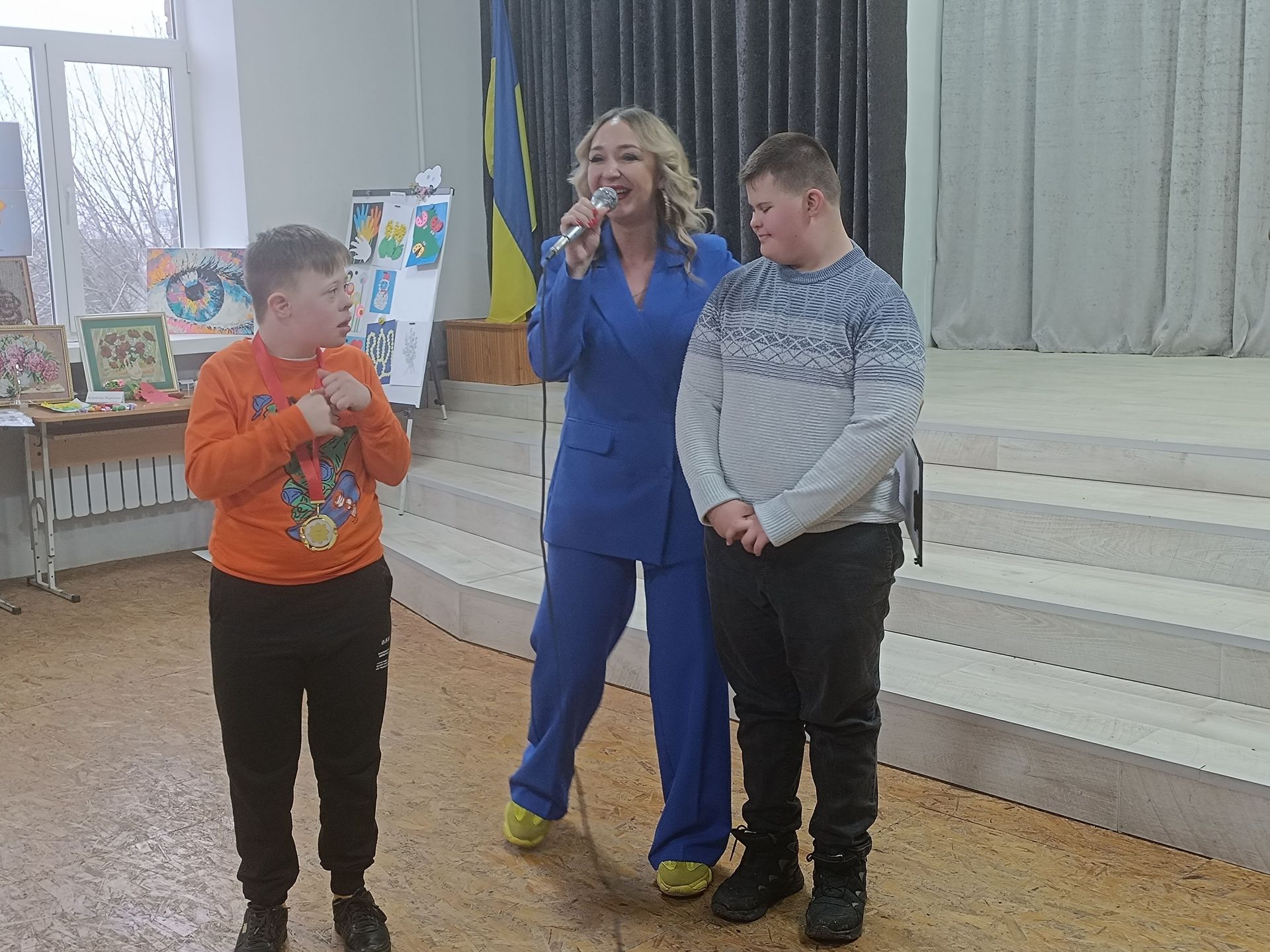 На творчому вечорі виступали не тільки дорослі. Своїми талантами поділилися також діти, що мають інвалідність. Мирослава Жуківська та Вероніка Озернова заспівали «Два веселих гусі» і грали на дитячих музичних інструментах. А потім Олексій Мулявка затанцював із хореографом Надією Бортюк вальс. Танець викликав у всіх присутніх захват. Під враженнями залишилася і сама хореограф.