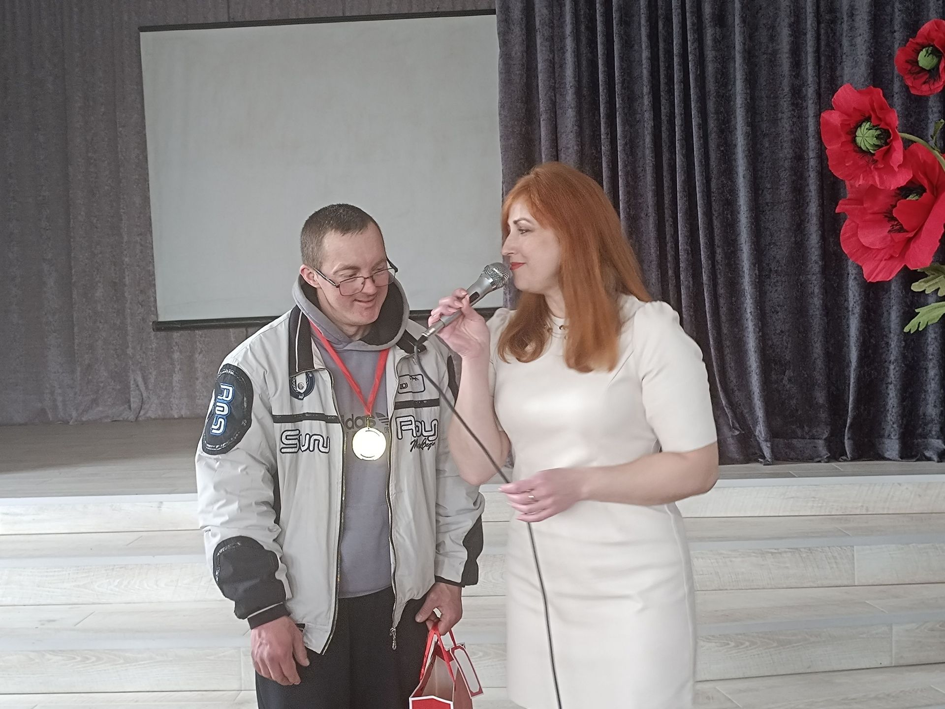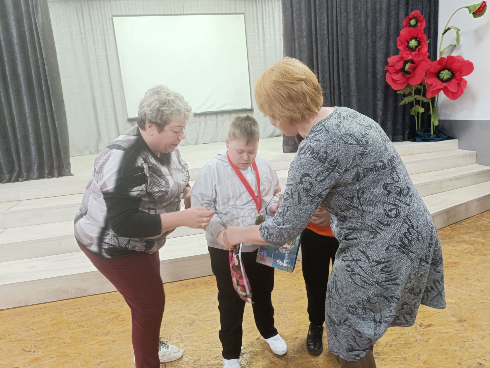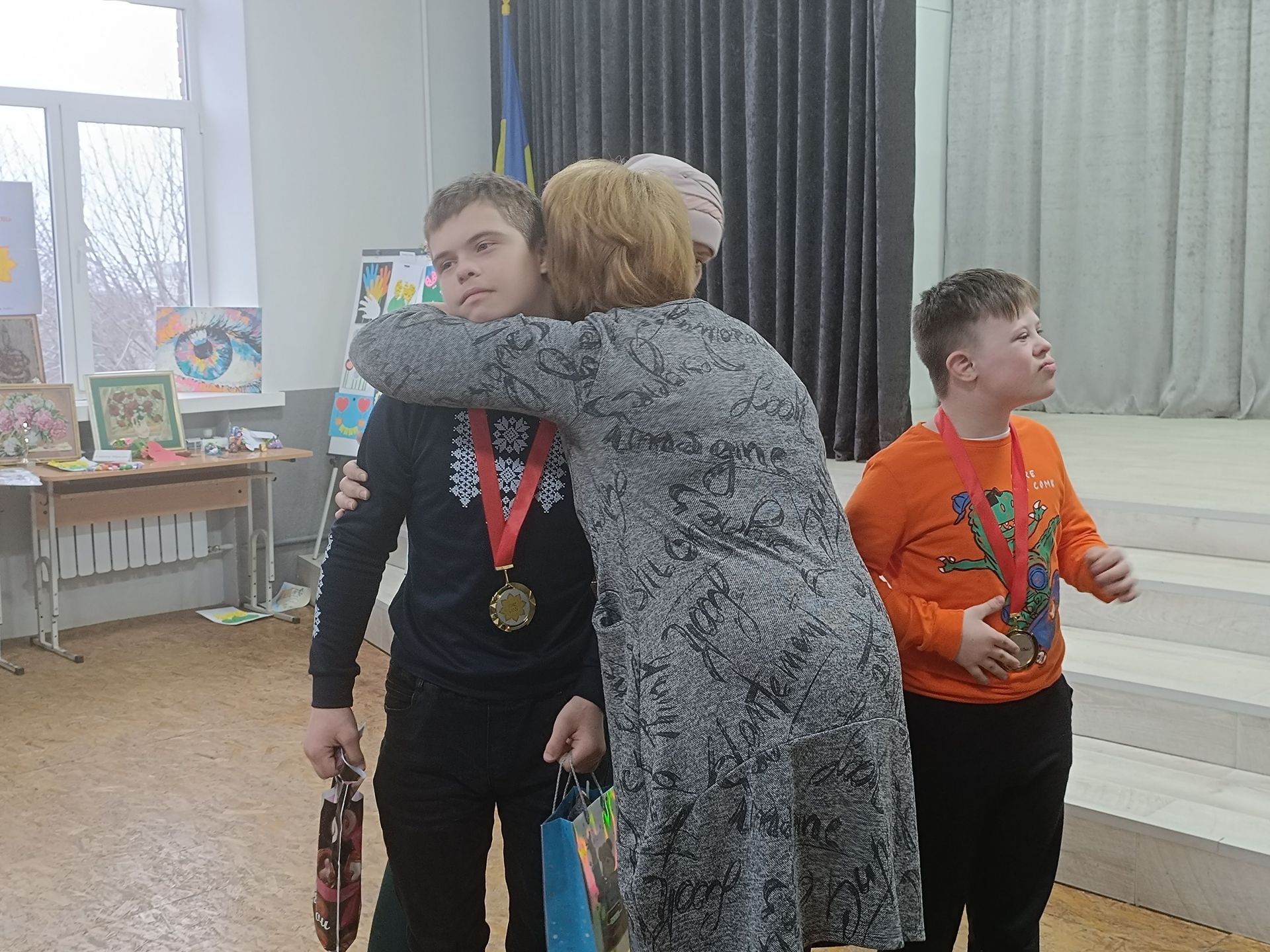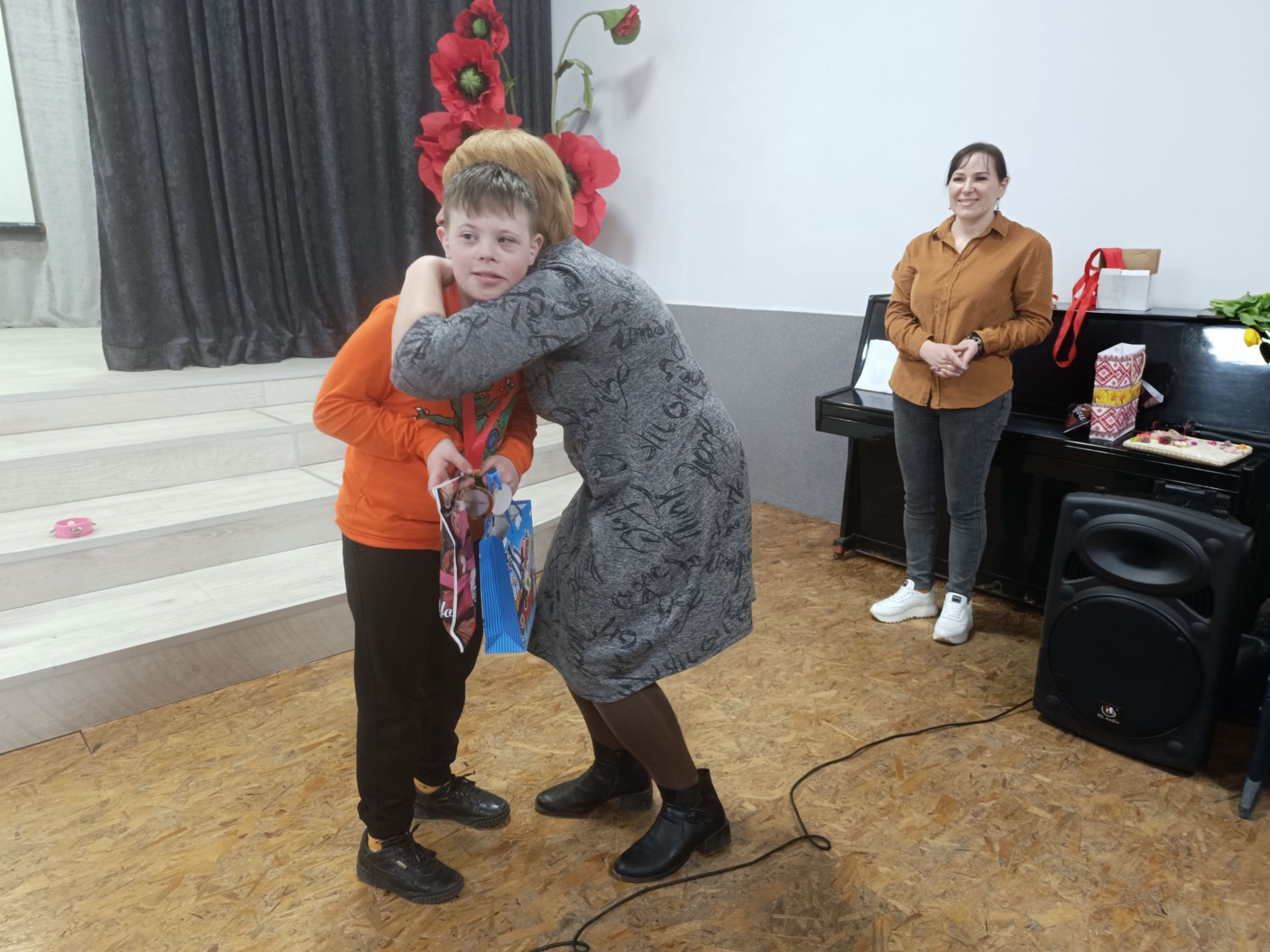 На творчому вечорі виступали не тільки дорослі. Своїми талантами поділилися також діти, що мають інвалідність. Мирослава Жуківська та Вероніка Озернова заспівали «Два веселих гусі» і грали на дитячих музичних інструментах. А потім Олексій Мулявка затанцював із хореографом Надією Бортюк вальс. Танець викликав у всіх присутніх захват. Під враженнями залишилася і сама хореограф.