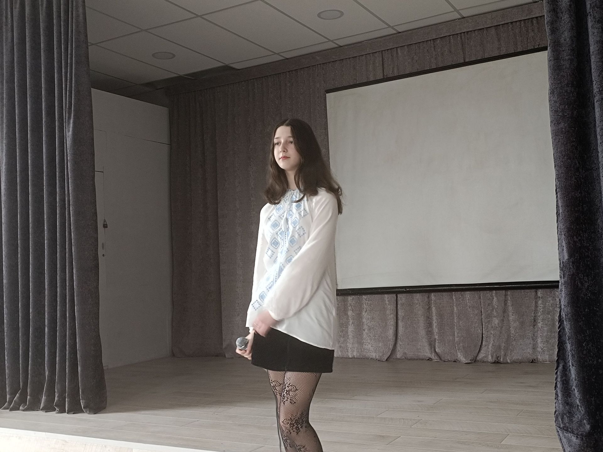 — Анно, розкажіть, чим ви любите займатися? — звертається до дівчини ведуча Марина.