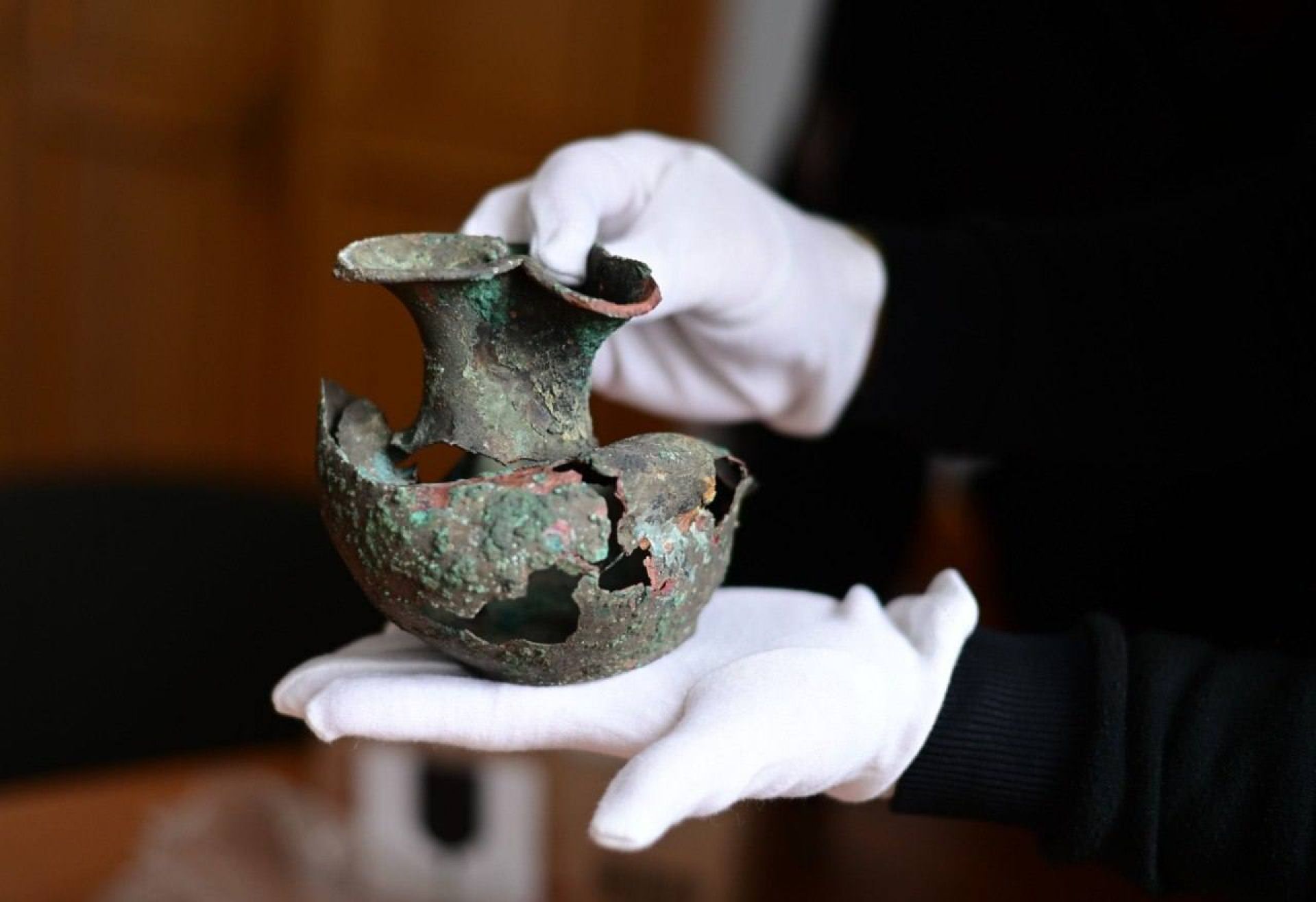 - Тут з’явився автентичний артефакт — давньоримський бронзовий глек-ойнохоя, який виявив на території Вінниччини педагог із Козятина Юрій Коломієць, який уже понад десять років займається арехеологічними дослідженнями.