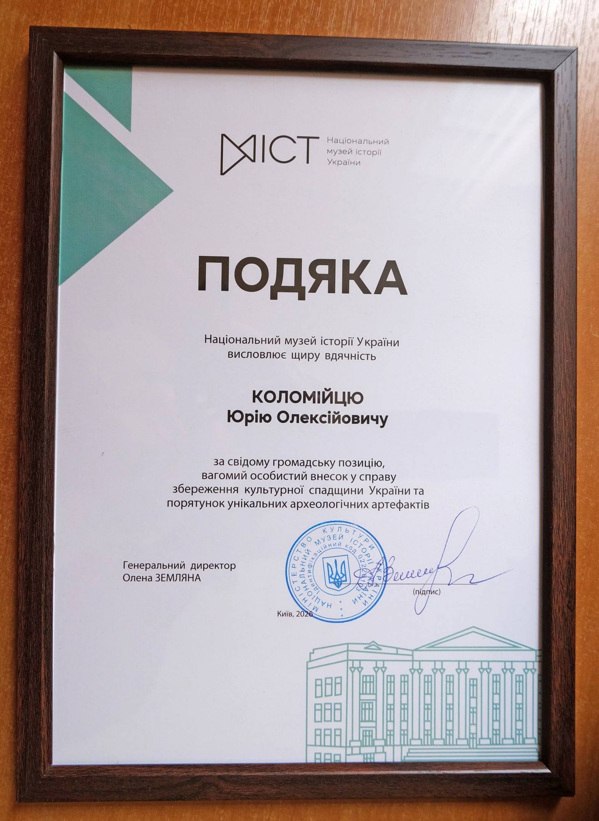 Як зазначають у музеї, Юрій Коломієць активно працює над тим, аби врятувати історичні знахідки від нелегального обігу. Він знаходить так званих «копачів» і переконує їх передавати артефакти до музейних фондів. За цей час завдяки його зусиллям до музею потрапили десятки рідкісних і навіть унікальних предметів