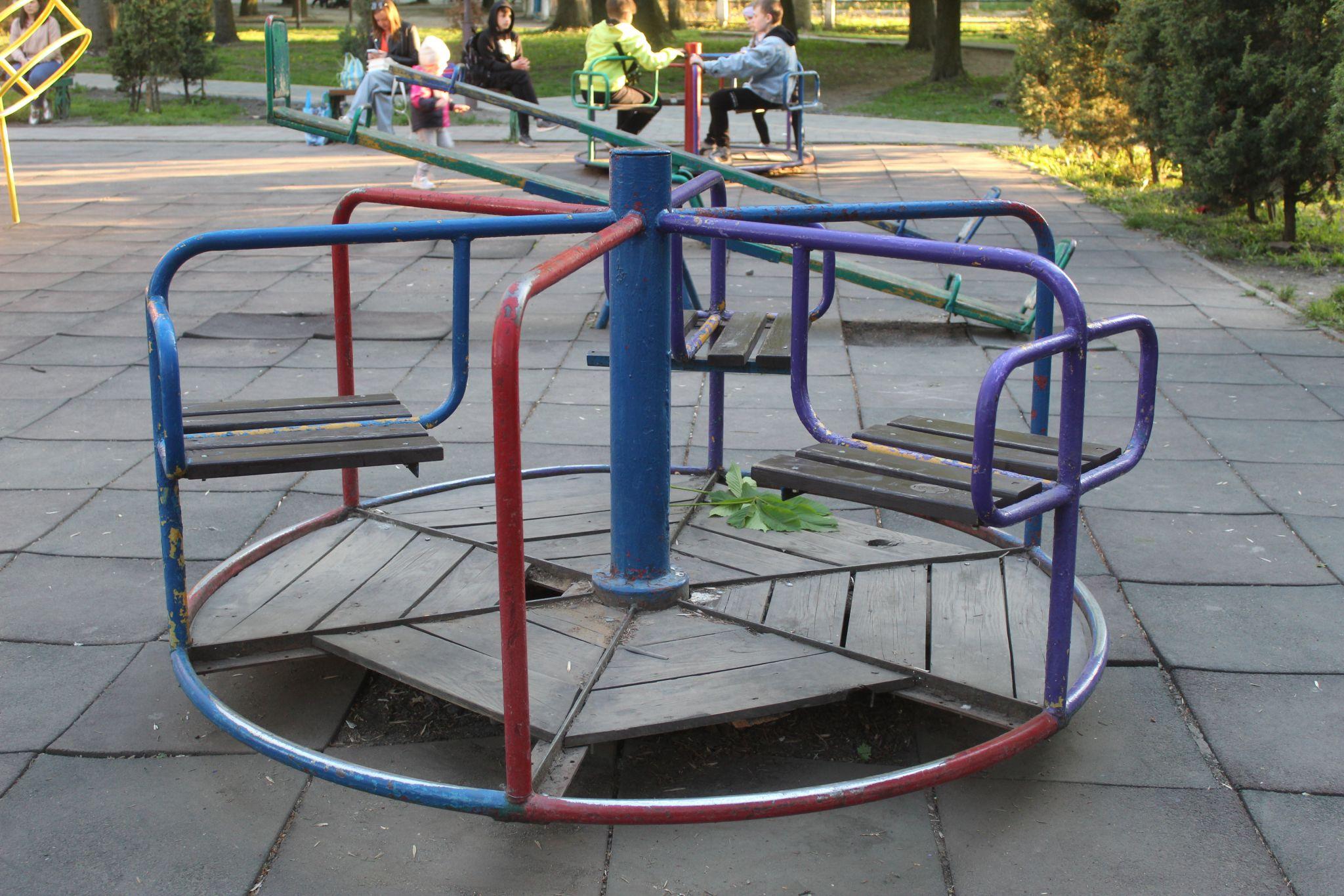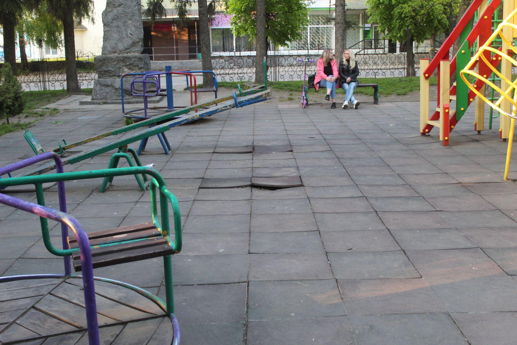 — Майданчик недавно ремонтували, невже не було видно, що на каруселі немає суцільного настилу? — питає мама чотирирічної Тані.