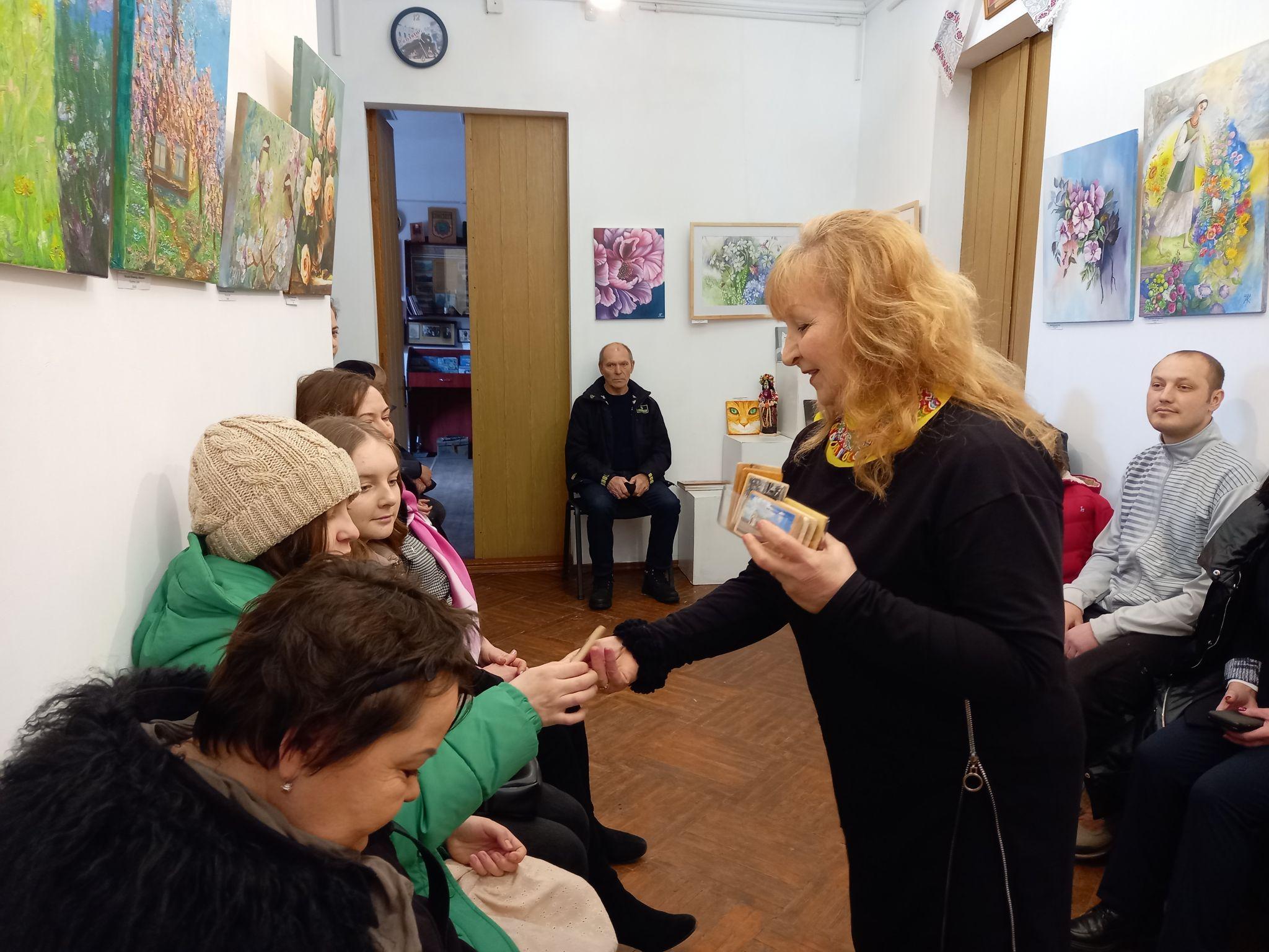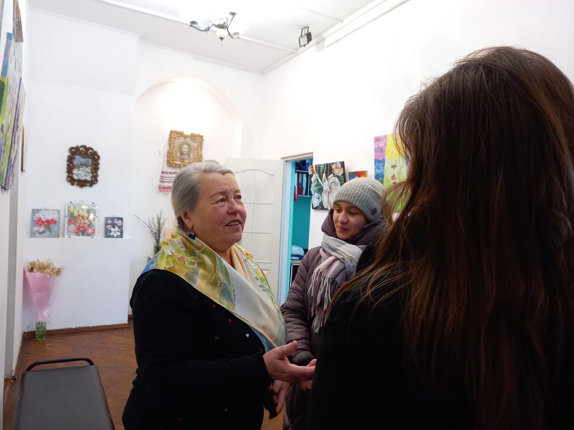 Наукова співробітниця музею Наталія Баштова коротко розповіла про кожного художника, який долучився до виставки. Серед митців, чиї полотна представили у Музеї — Наталія Степанюк, викладачка Дитячої музичної школи. На захід художниця завітала не сама, а разом зі своїми ученицями Маргаритою та Анастасією. І це не просто так, адже одну з робіт експозиції виконала саме Маргарита.