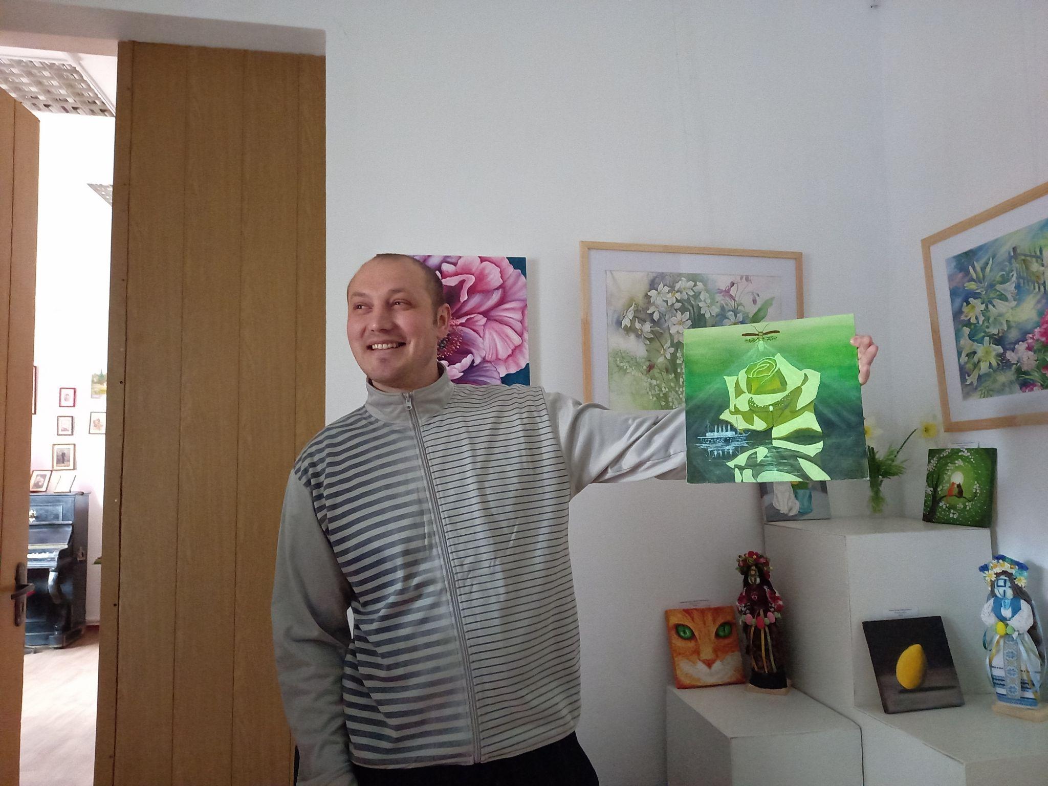 На завершення один із художників, Ігор показав роботу своєї подруги, яка не увійшла до експозиції. Картину намалювала сімейна лікарка Ірина Олексюк. Дівчина щойно почала опановувати живопис. Це її друга робота. У центрі композиції — троянда у сяйві світлячка. Ця картина не проста, а із родзинкою: якщо дивитися на неї у темряві, квітка сяє неоновим світлом. Цей ефект створили за допомогою спеціального порошку, яким покрили готове зображення.